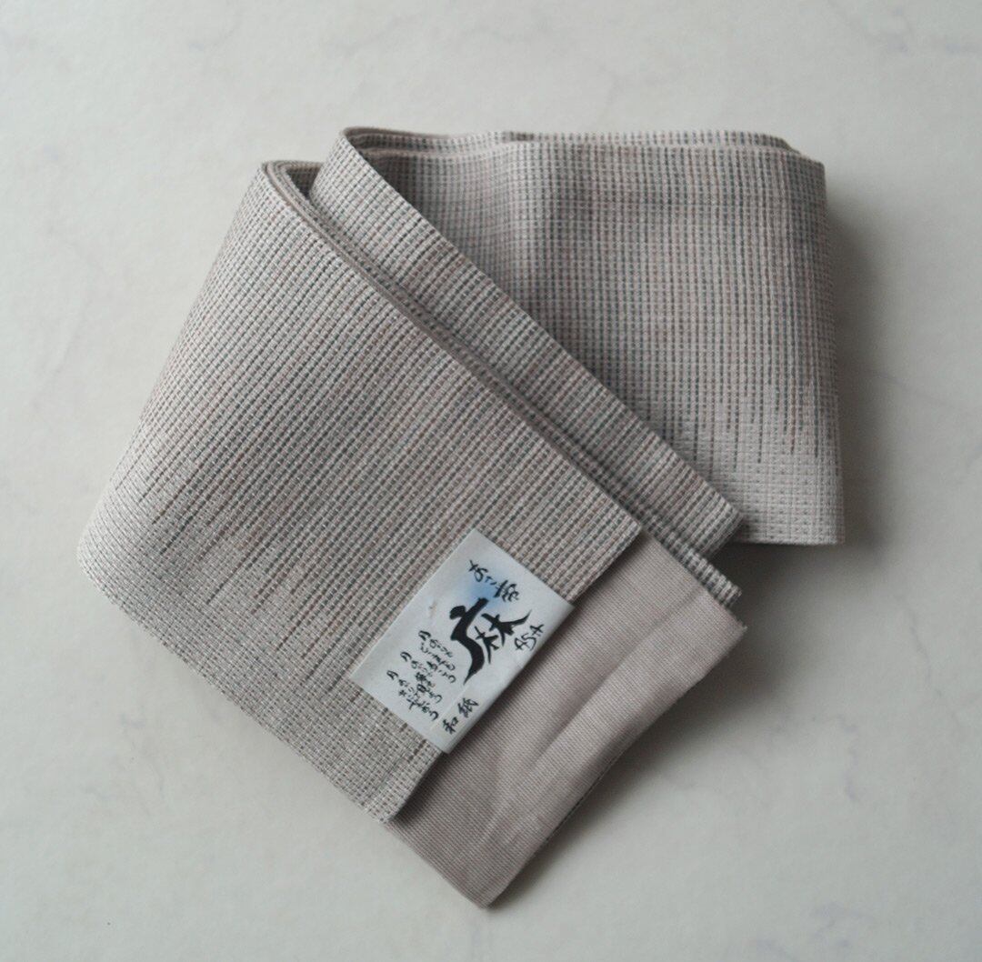 リバーシブル仕様の麻の半幅帯、