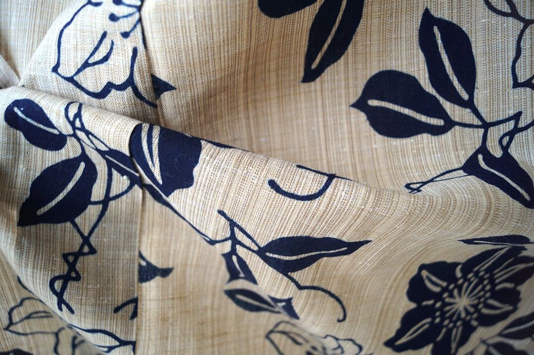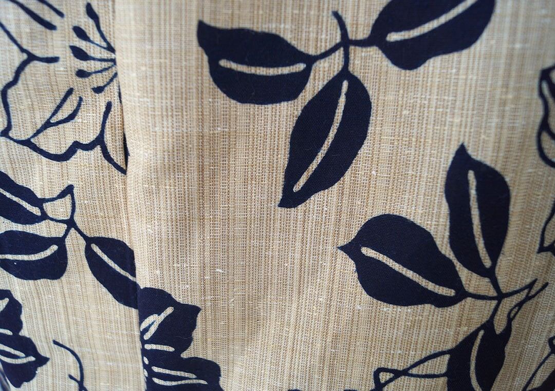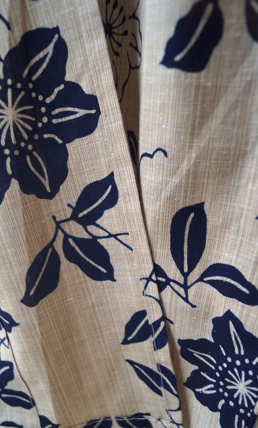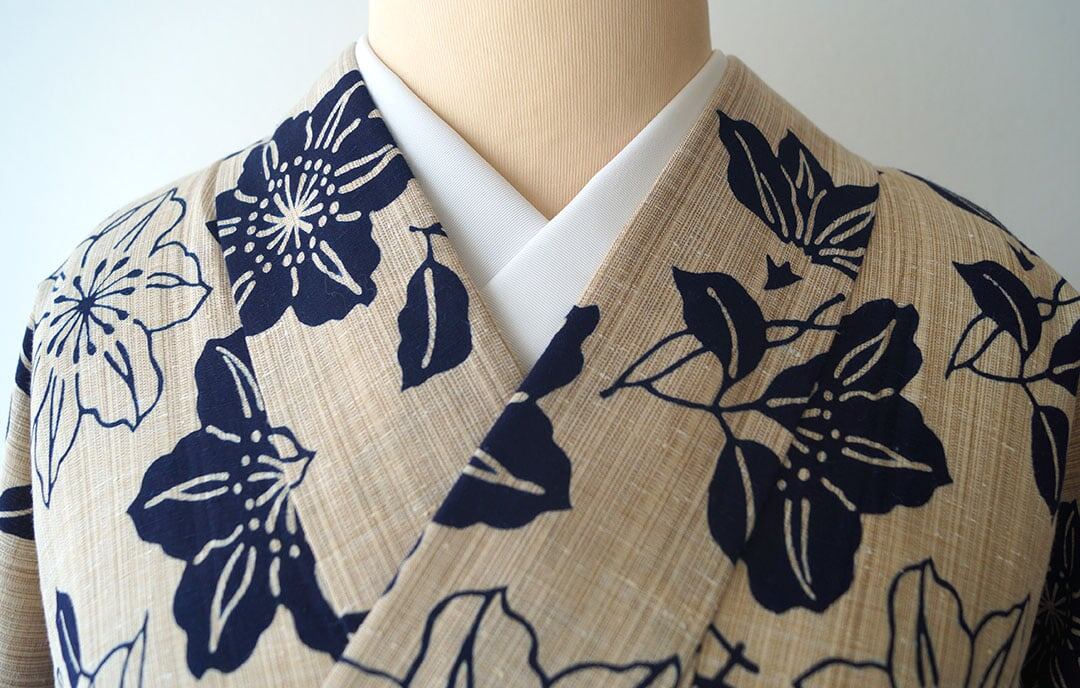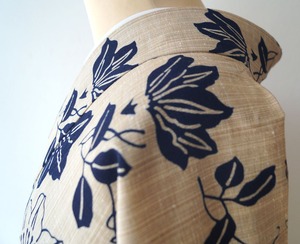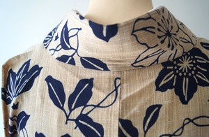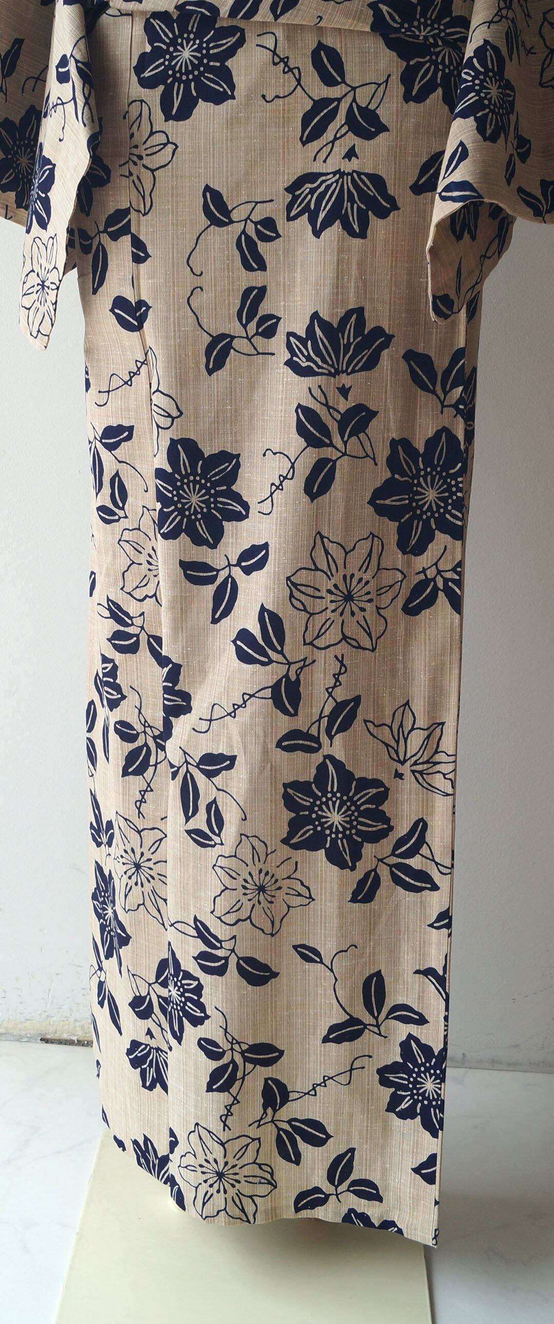 砥の粉色の地色にクレマチス柄の浴衣です。