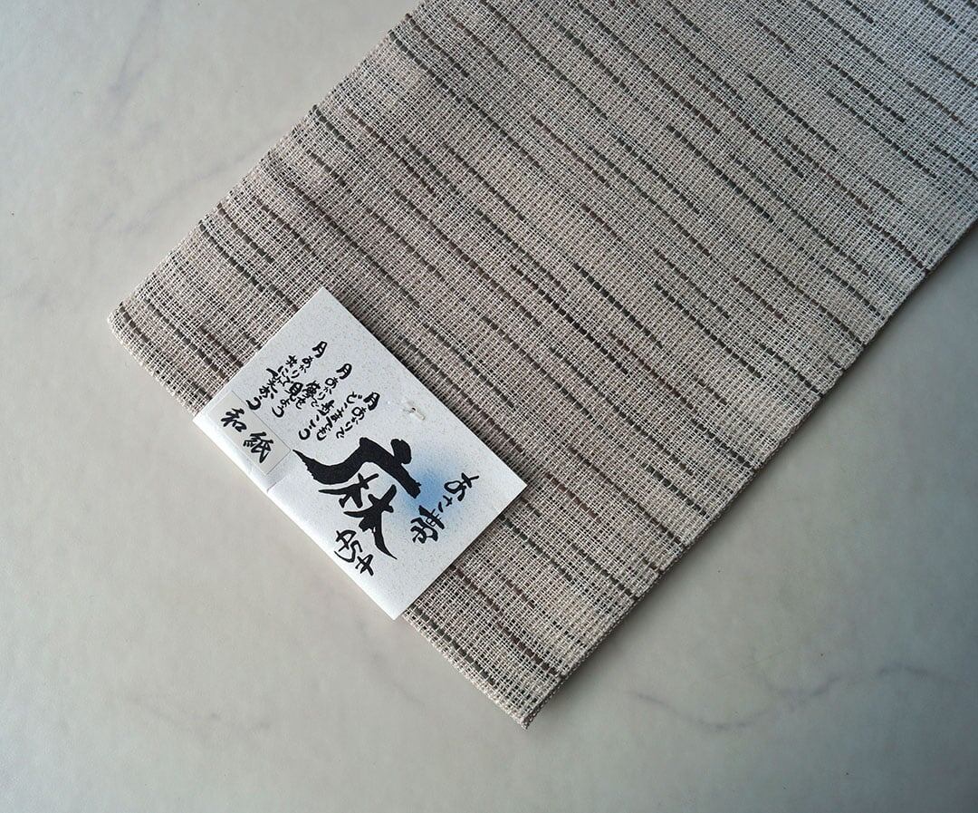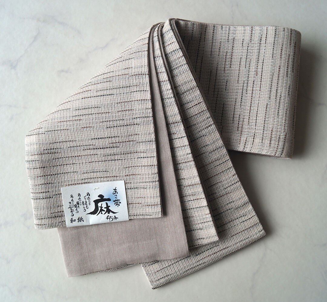 リバーシブル仕様の麻の半幅帯、