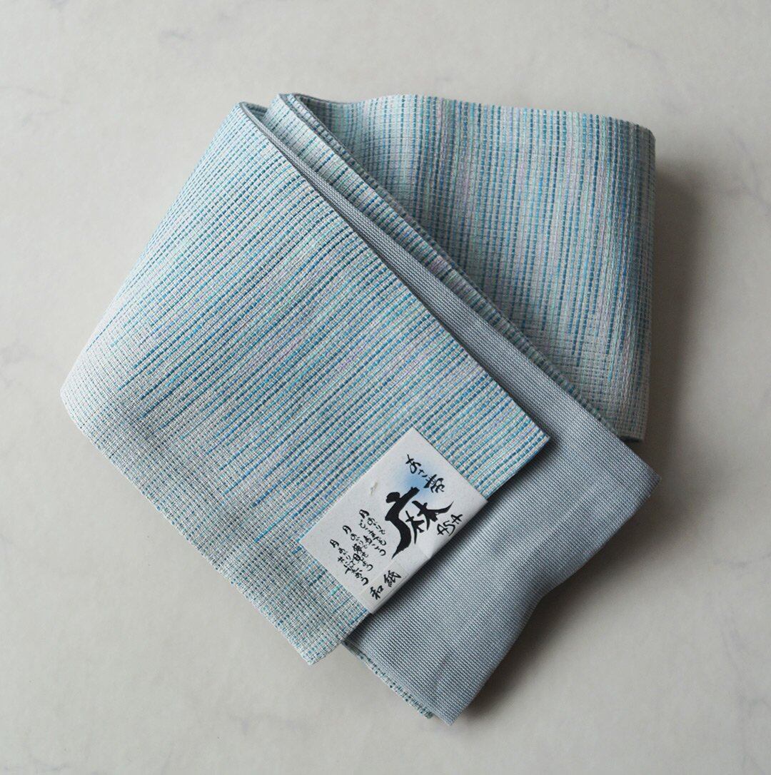 リバーシブル仕様の麻の半幅帯、