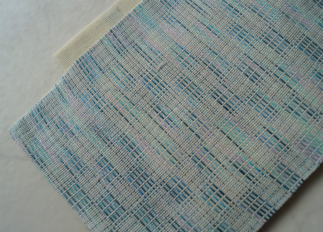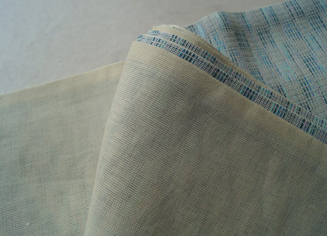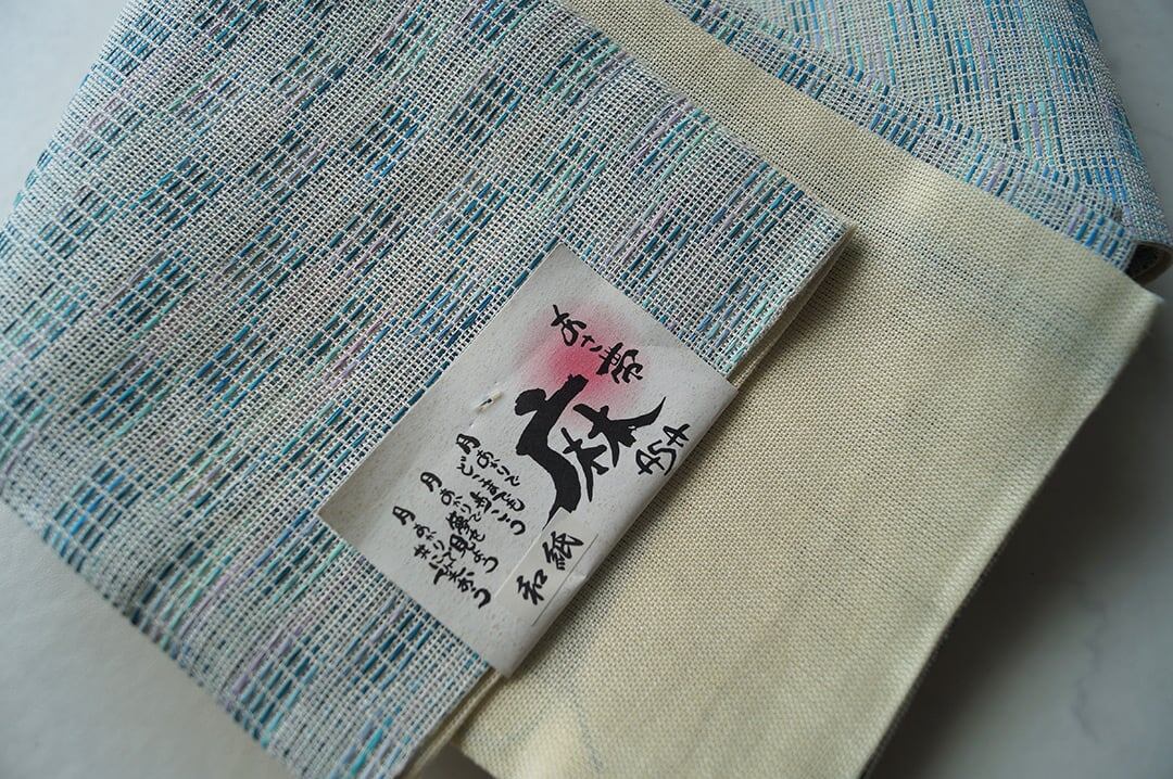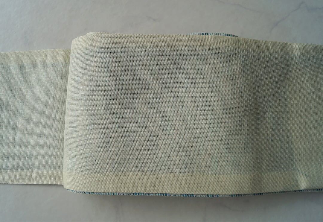 【半幅帯】青パステル系 格子市松柄 麻半幅帯 No.240821㉕