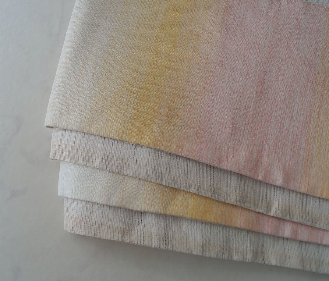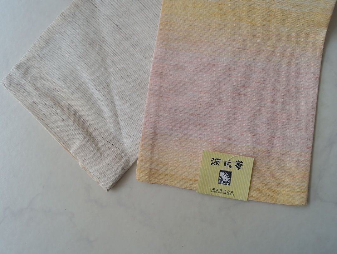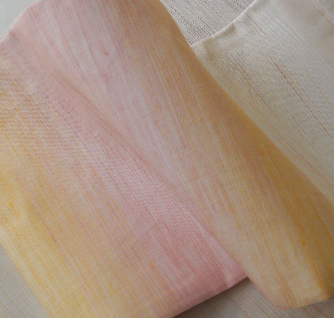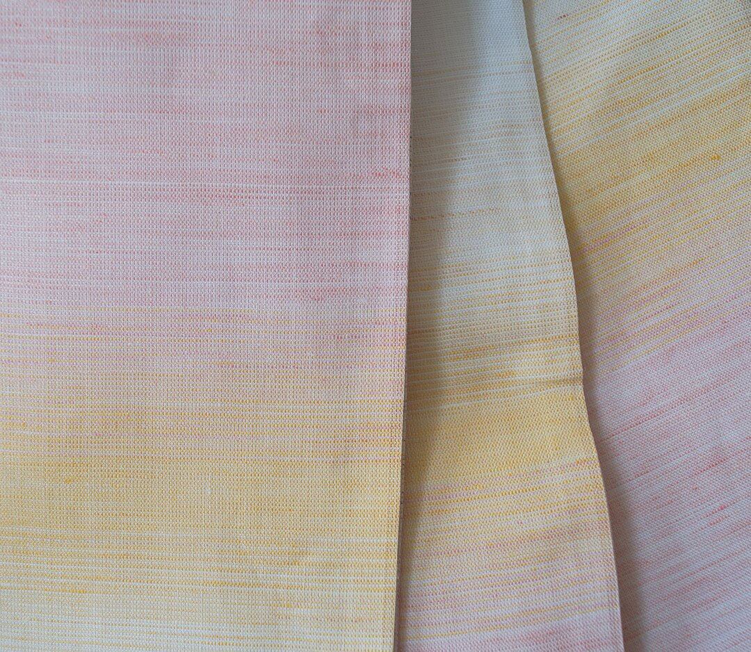 淡い黄色、淡い赤色系、生成り色系のお色が