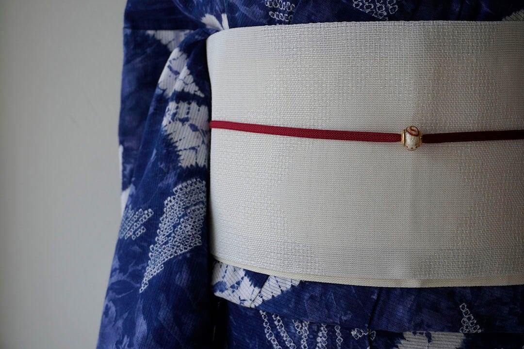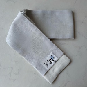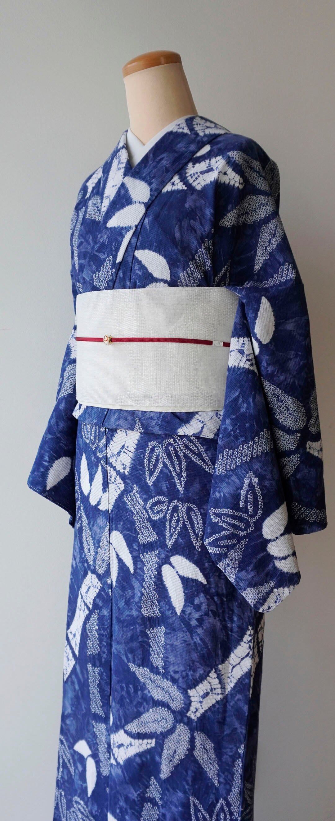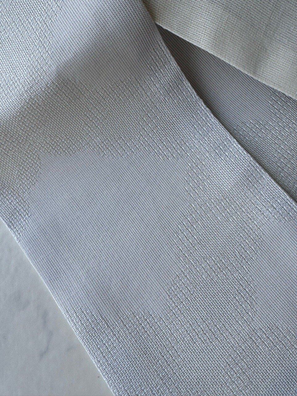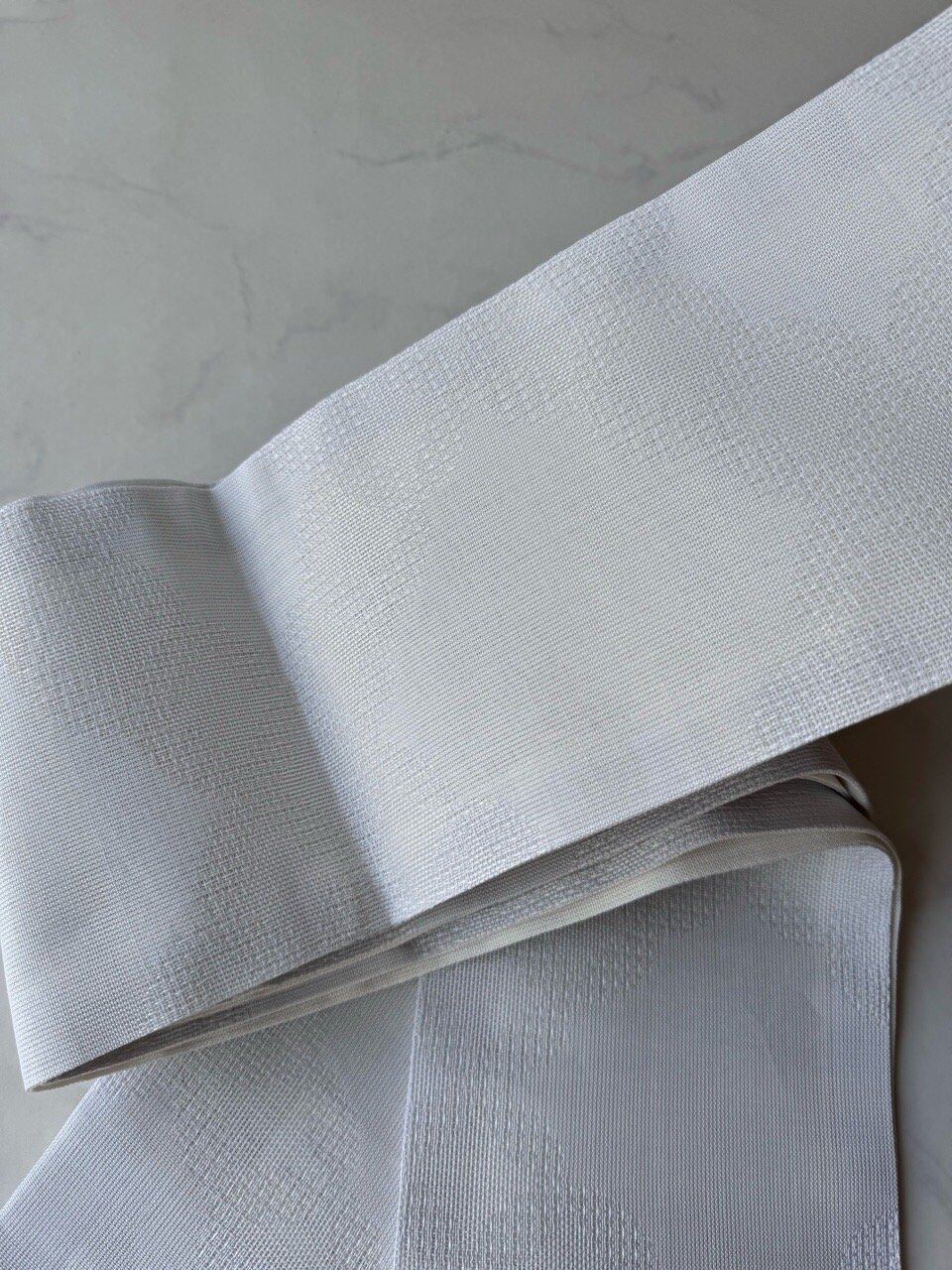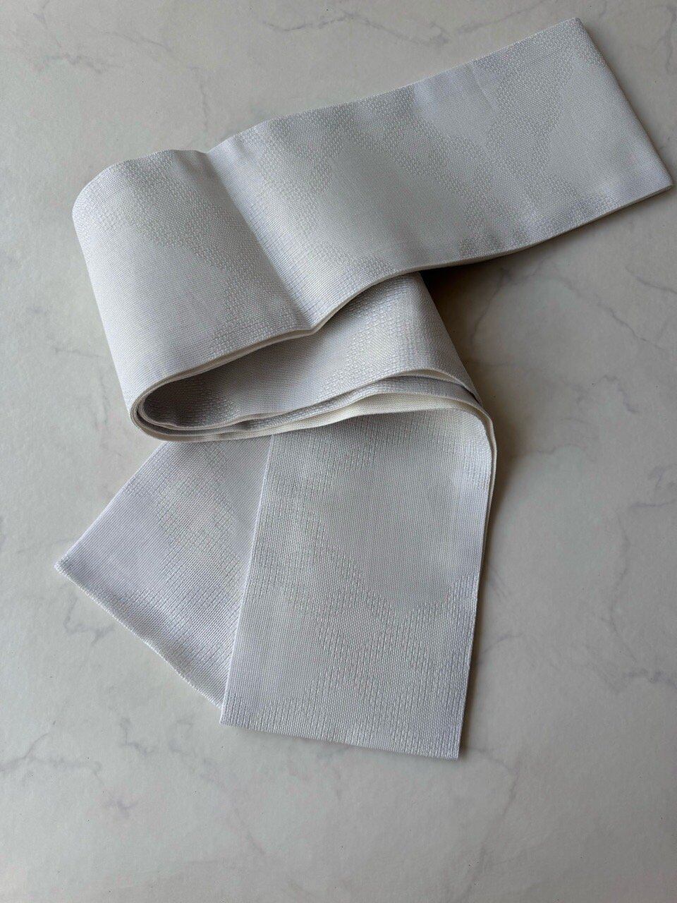 【半幅帯】藍白×白 七宝繋ぎ織り柄 麻半幅帯 240725⑤