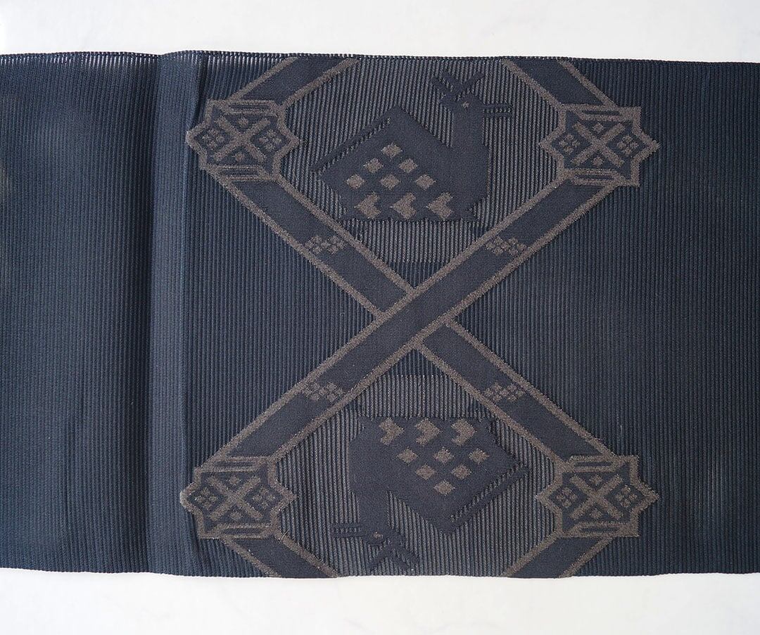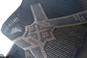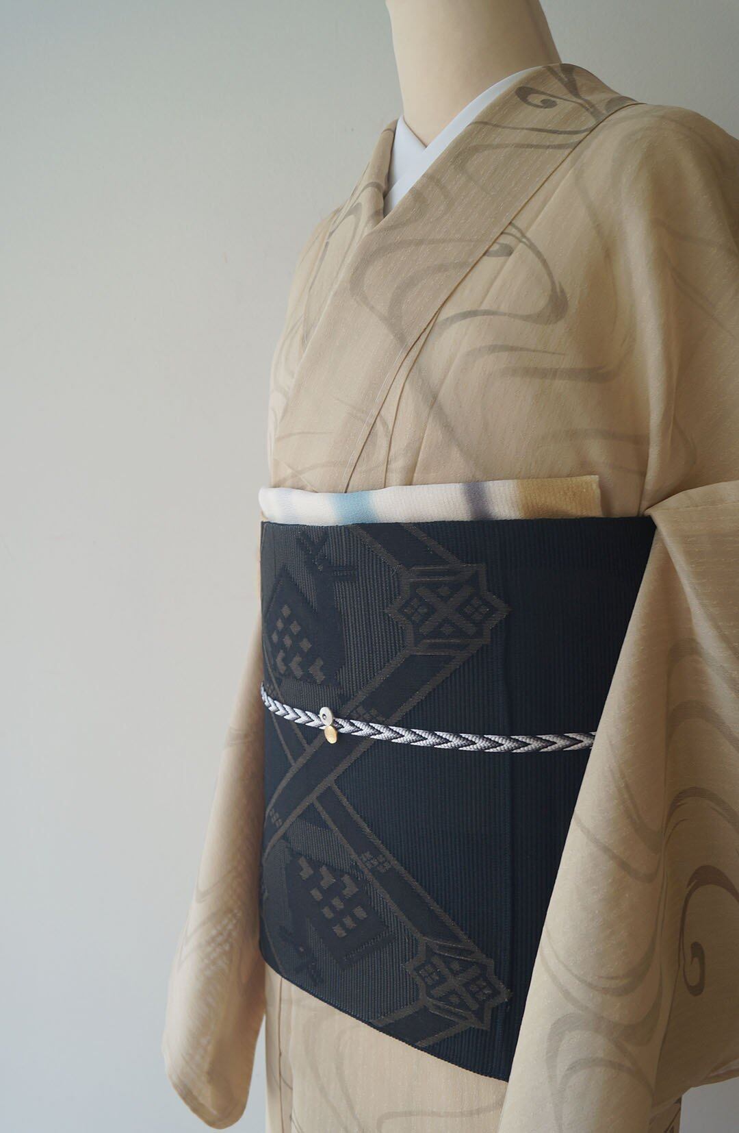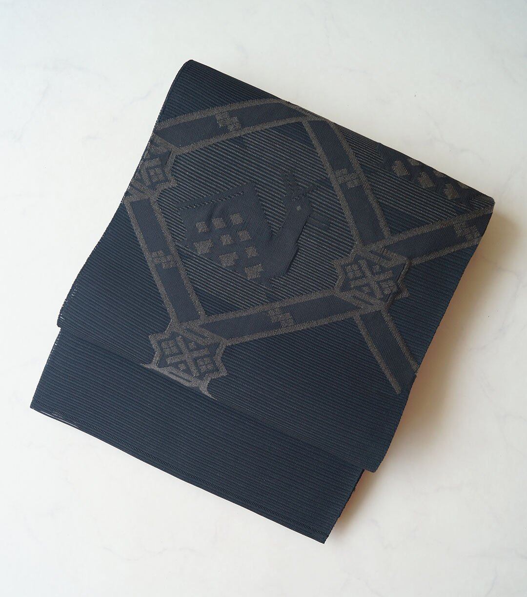 【夏ふくろ帯】黒色地 有栖川文 絽綴れふくろ帯