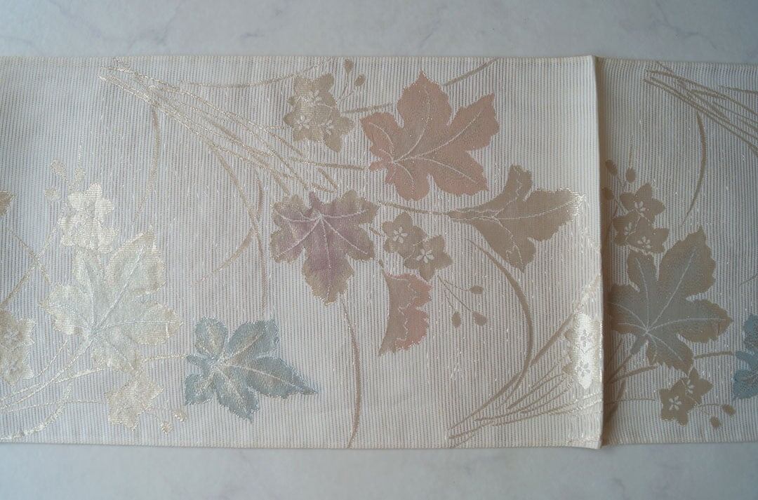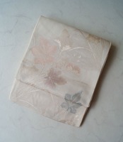 練色の地に秋草の文様の紗ふくろ帯です。