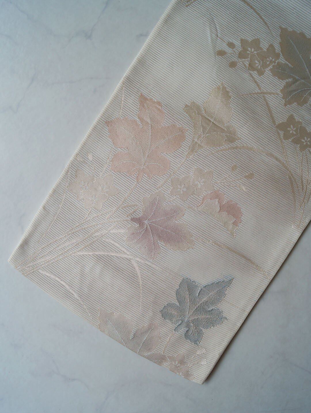 【夏ふくろ帯】練色地 秋草文 紗ふくろ帯