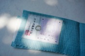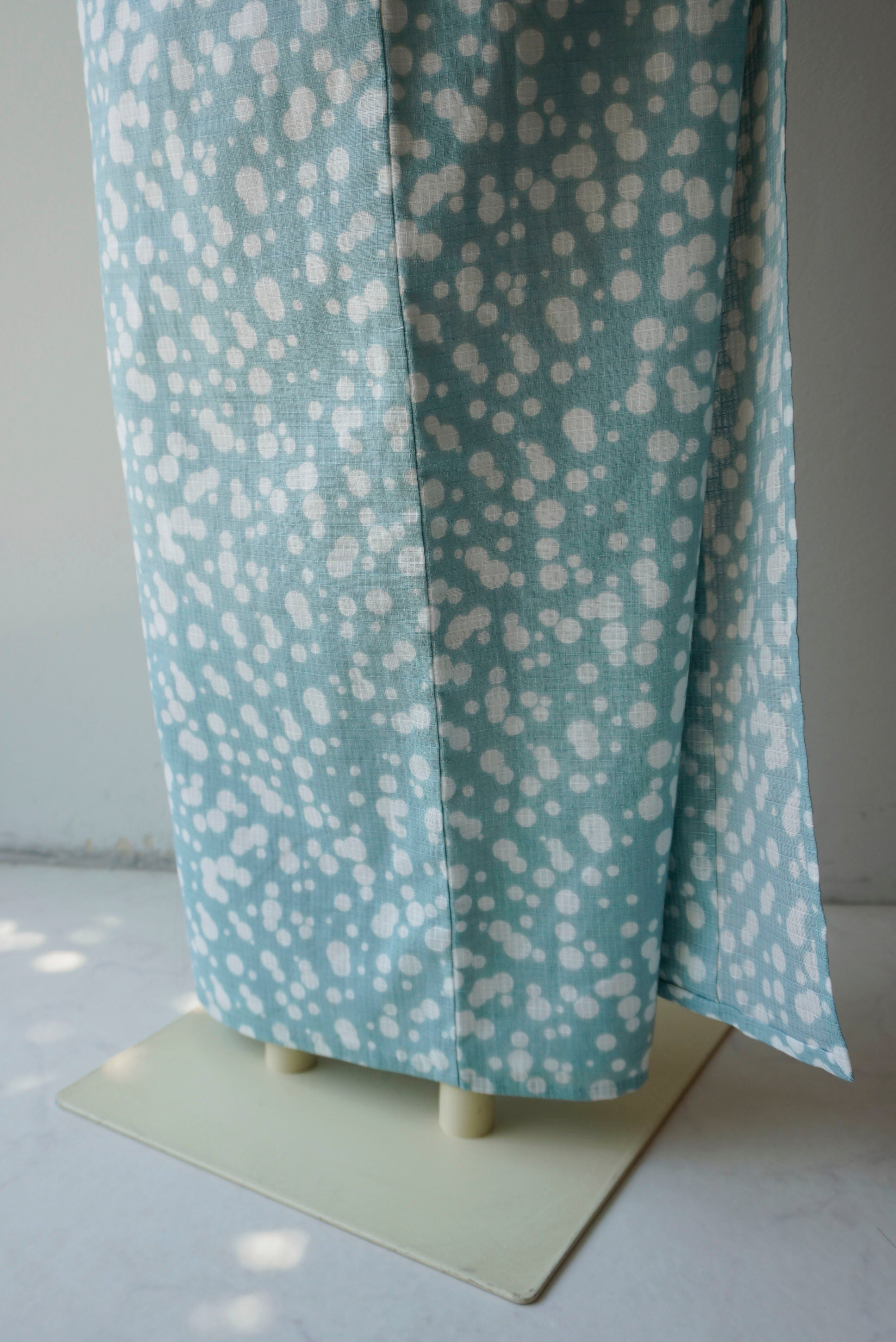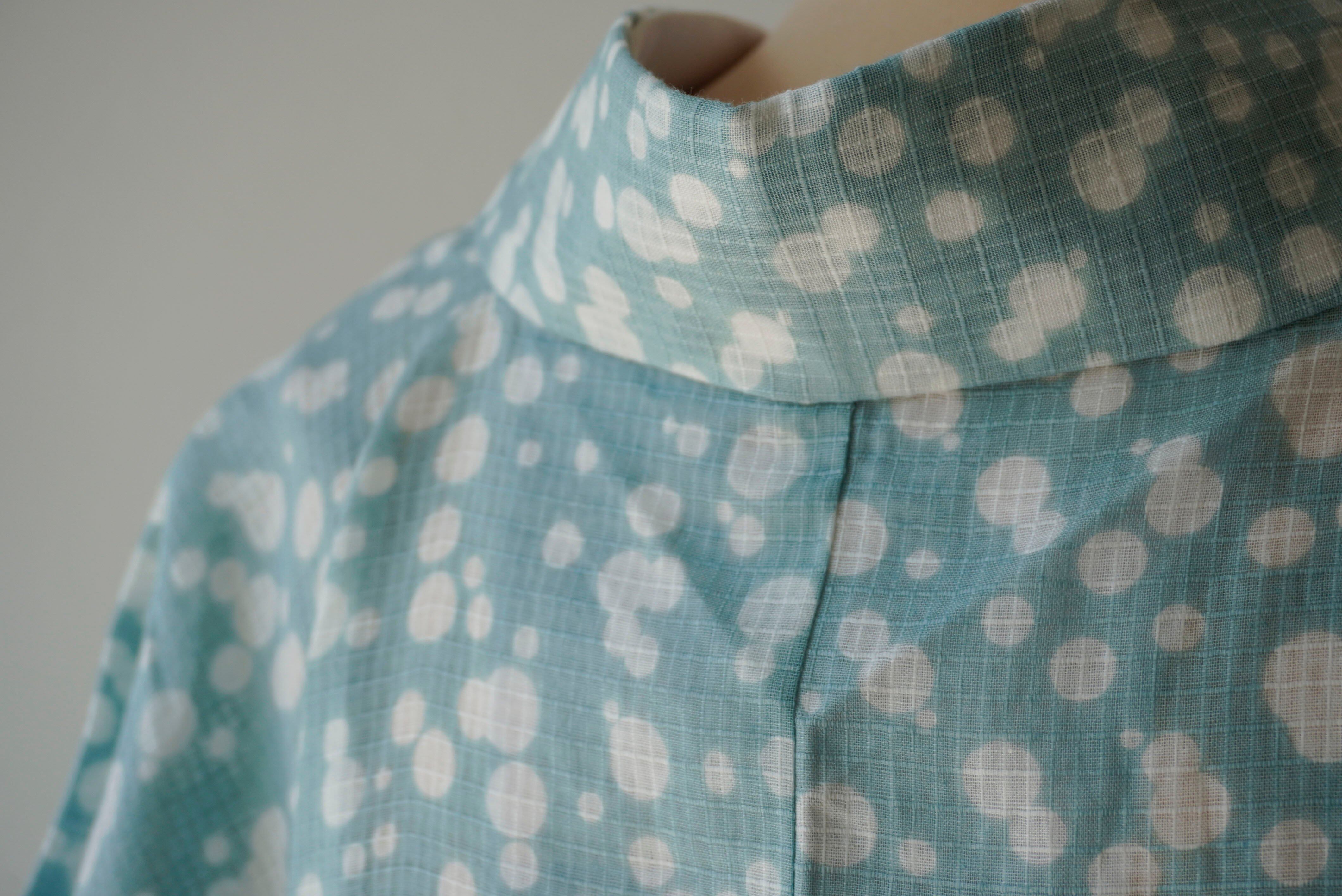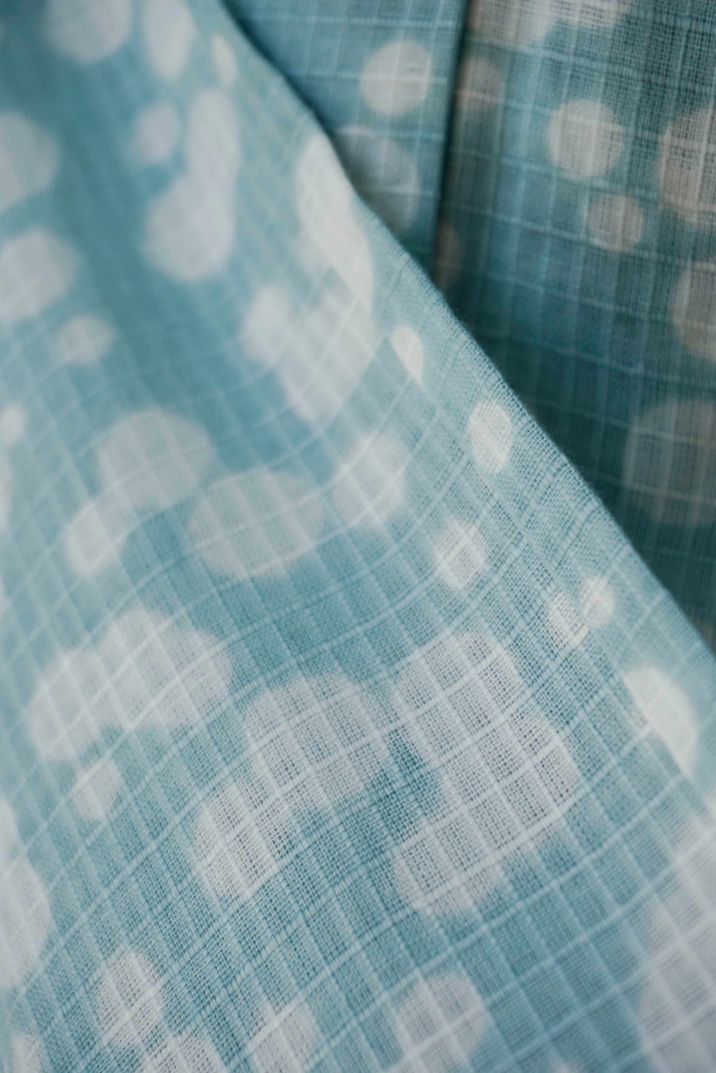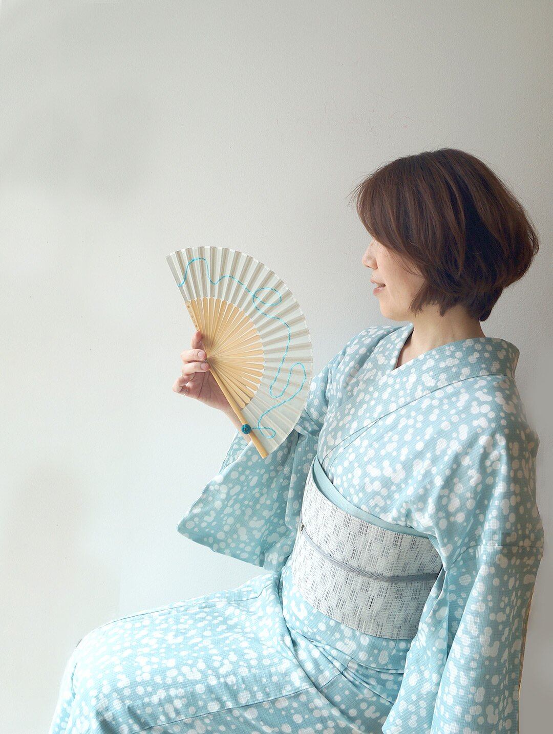 【浴衣】小千谷織物 綿麻紅梅 越後型染浴衣 白群色水玉文
