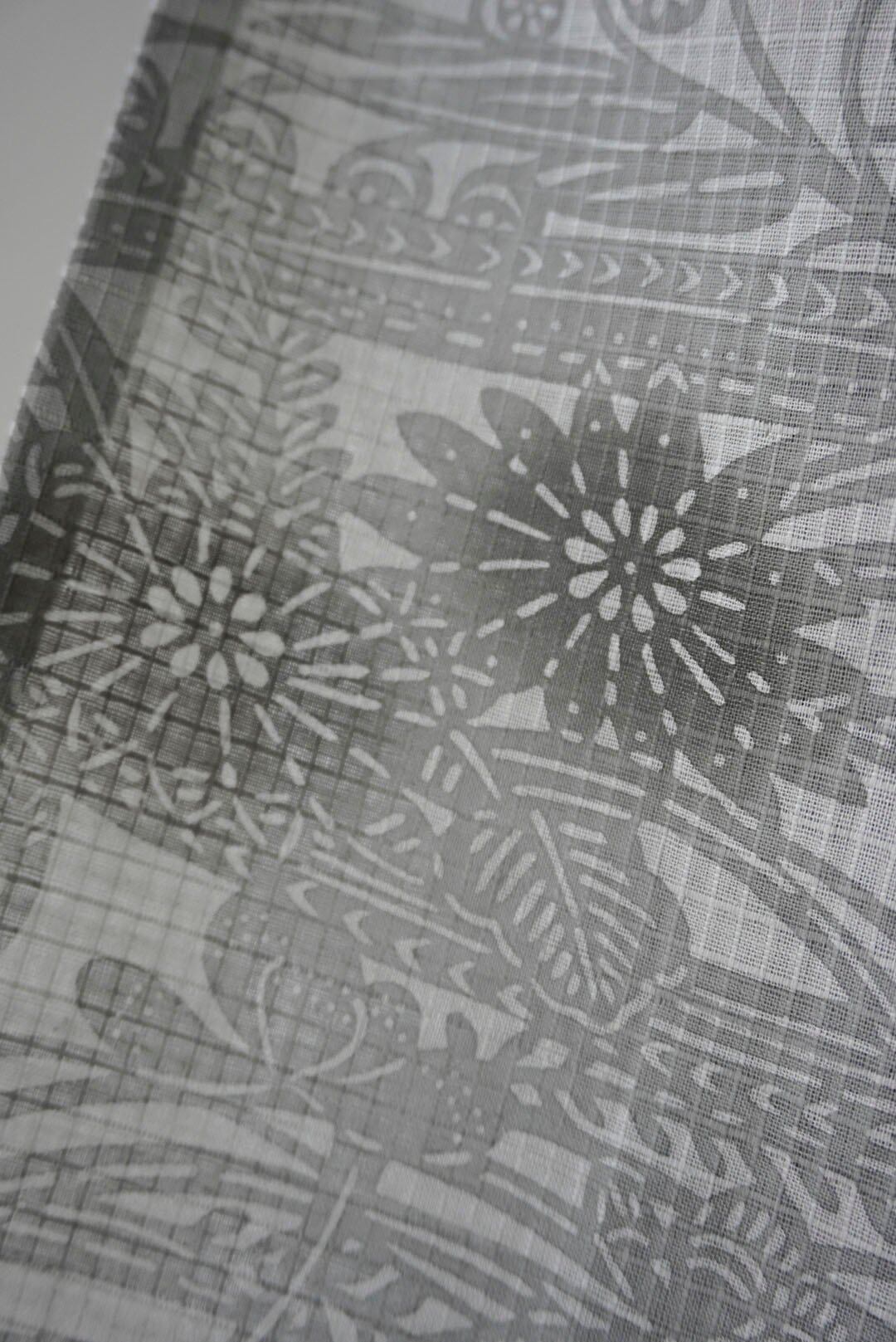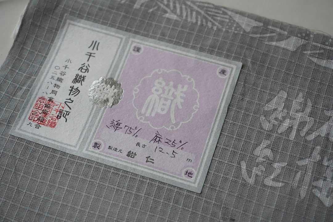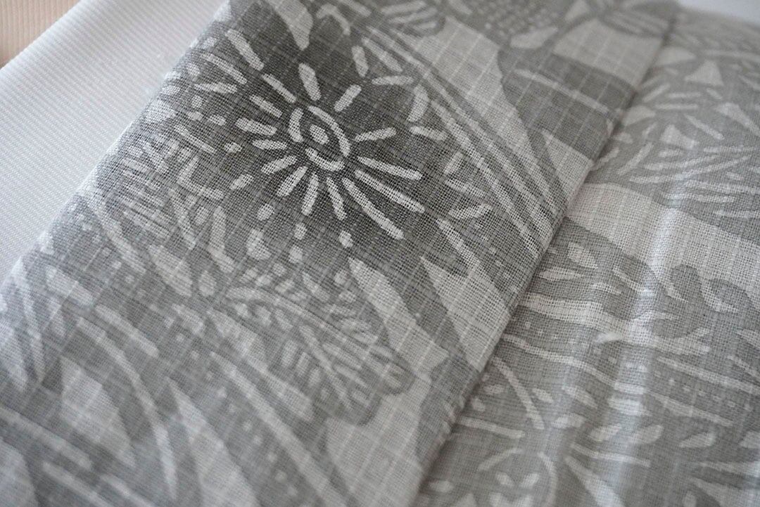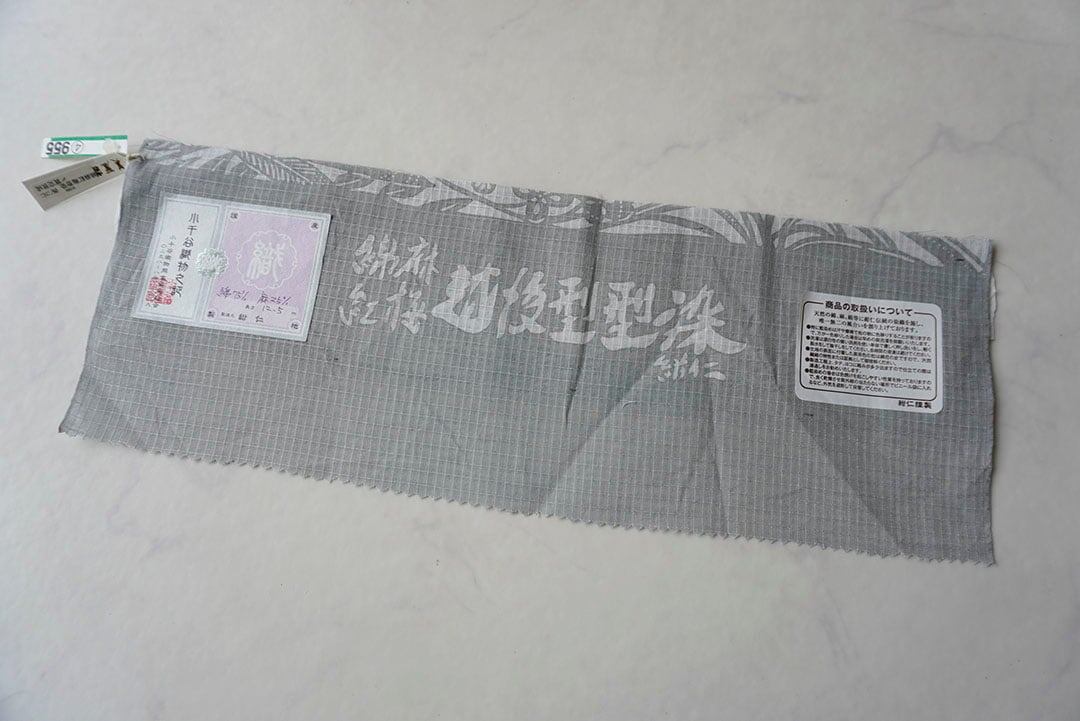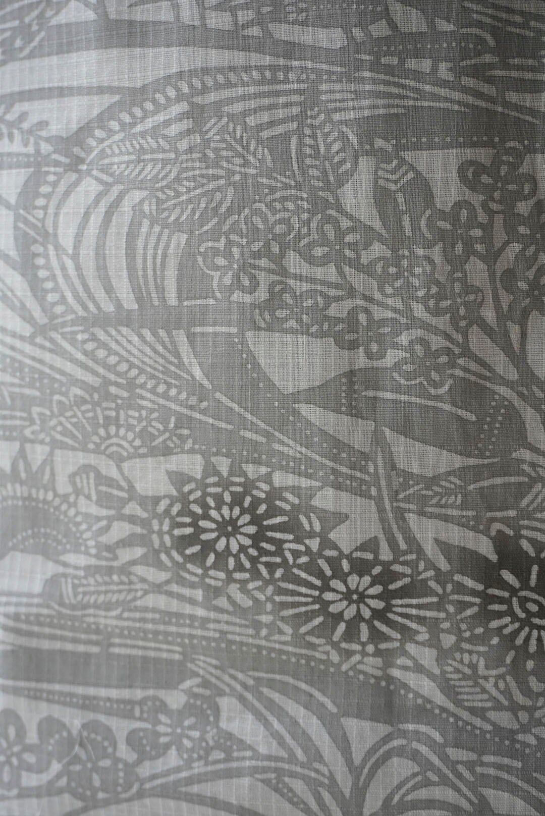 【浴衣】小千谷織物 綿麻紅梅 越後型染浴衣 流水に植物紋