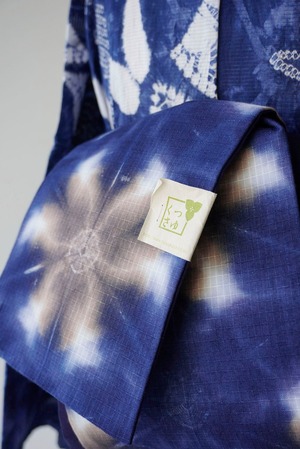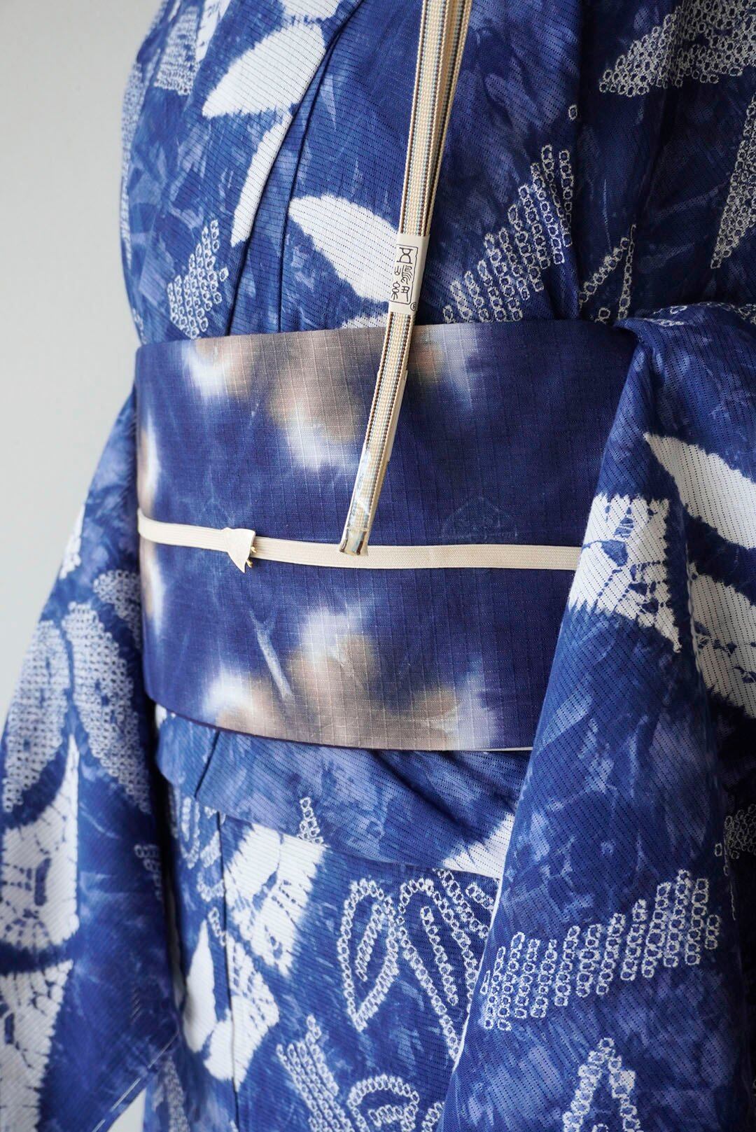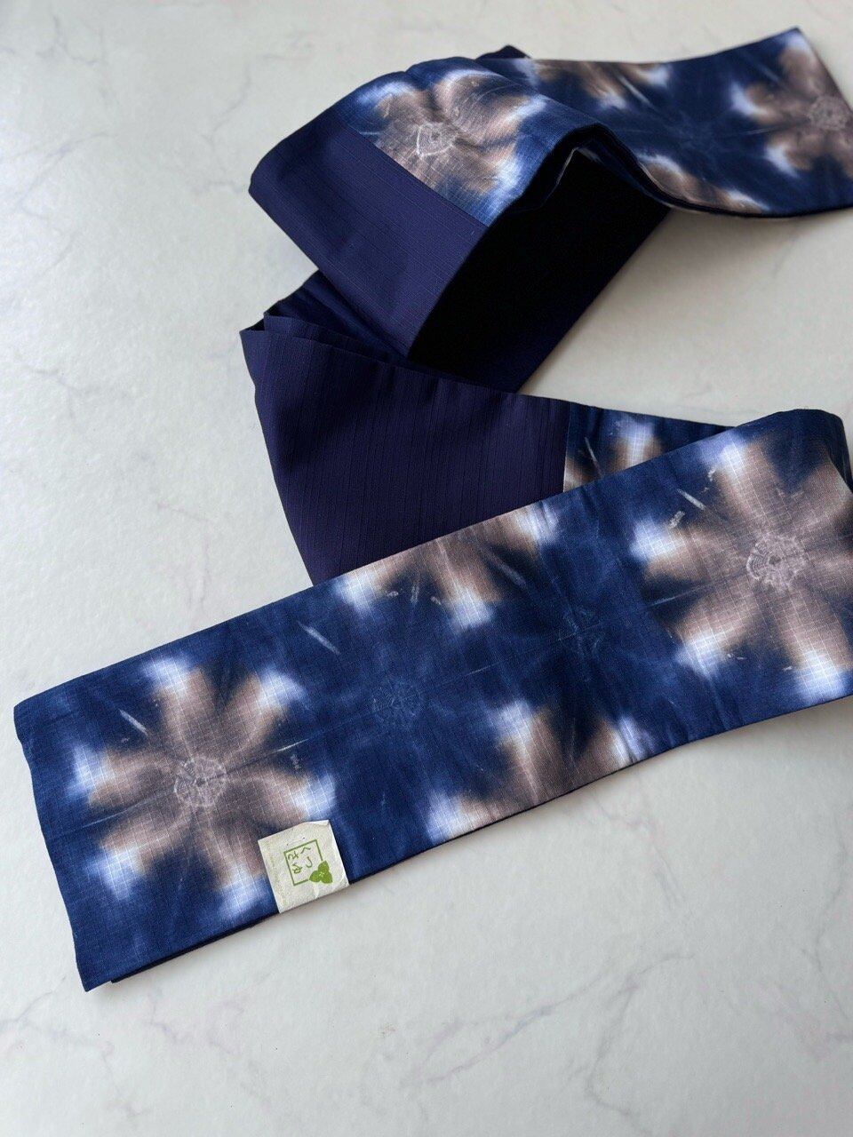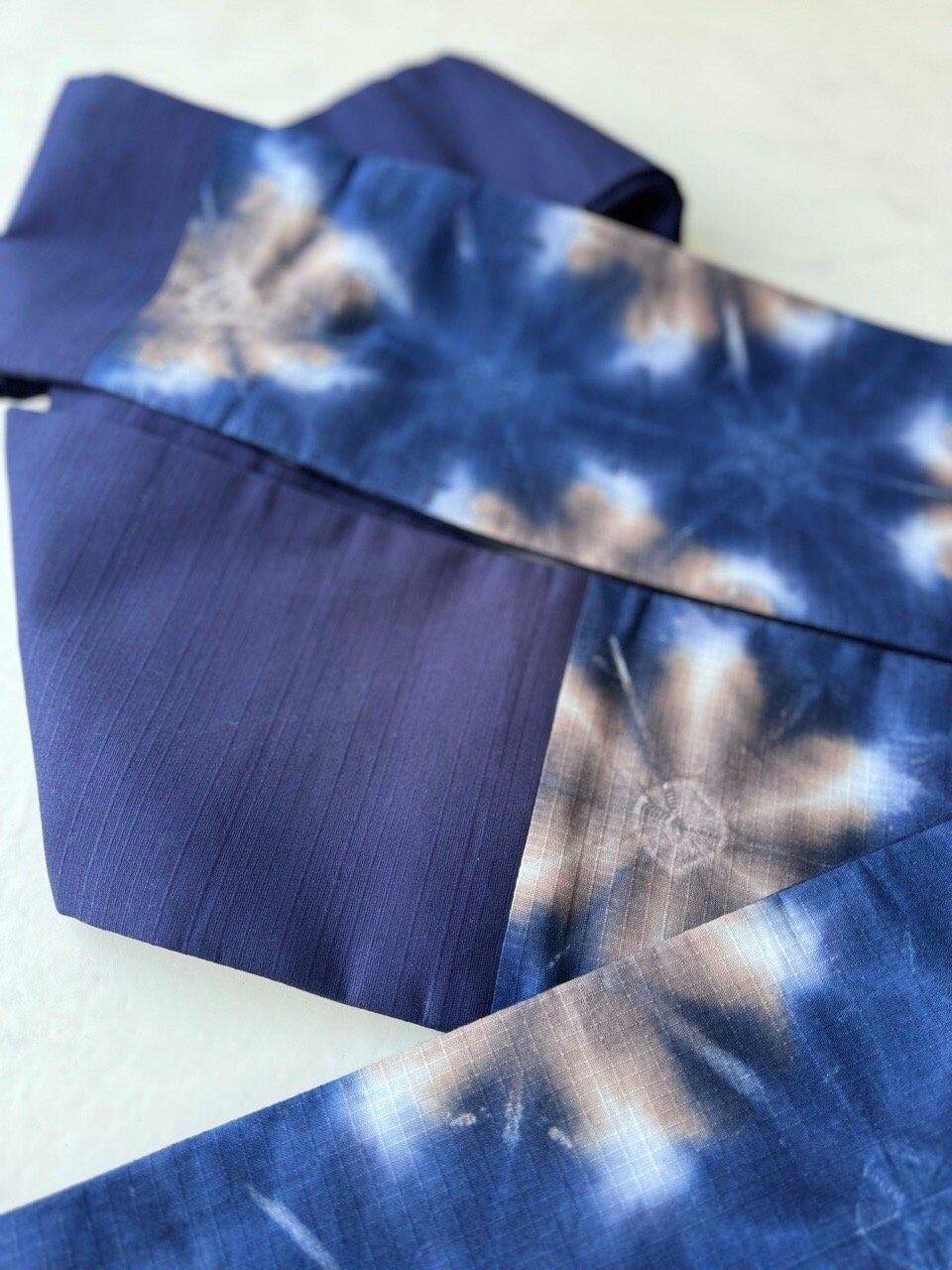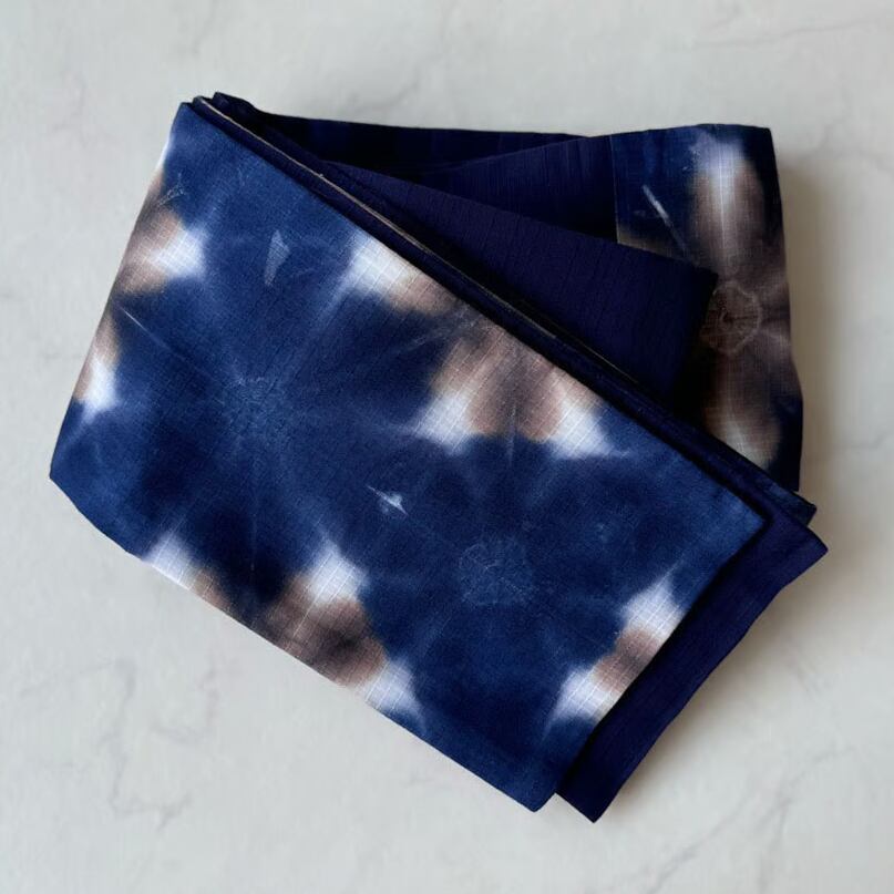 【つゆくさ・半幅帯】濃藍×遠州茶色 雪花絞り半幅帯 No.240725A
