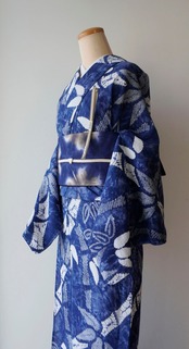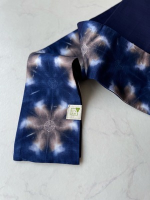 濃い藍色と赤みを帯びた茶色の雪花絞りには