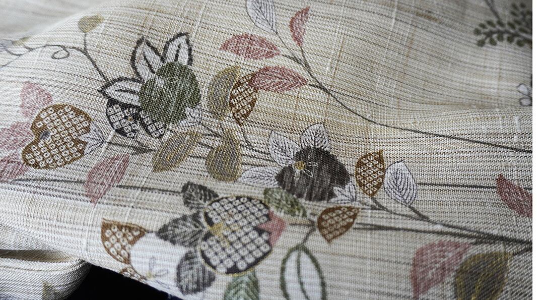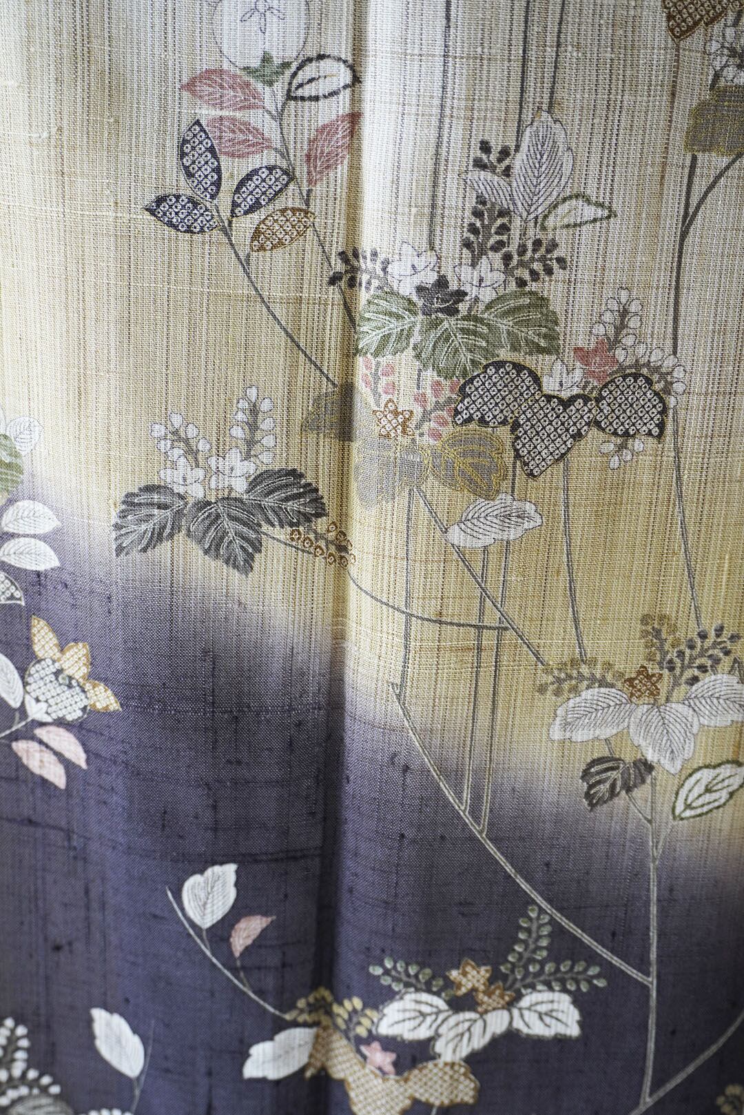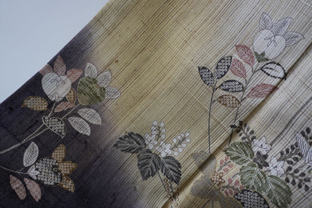 【袷】枯色×深紫色 暈かし 花文 しょうざん 生紬 附下