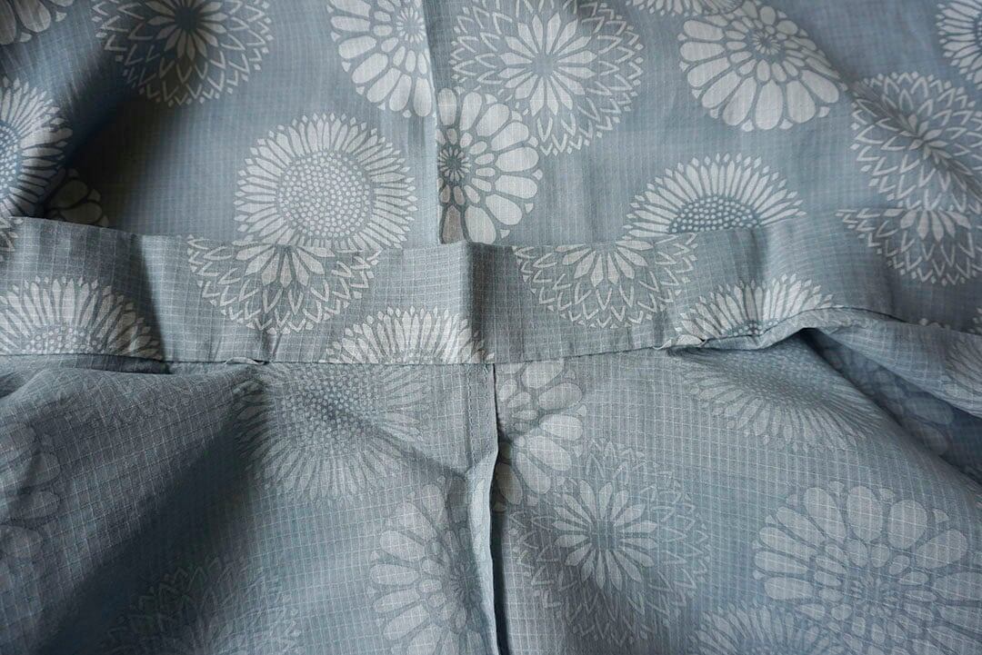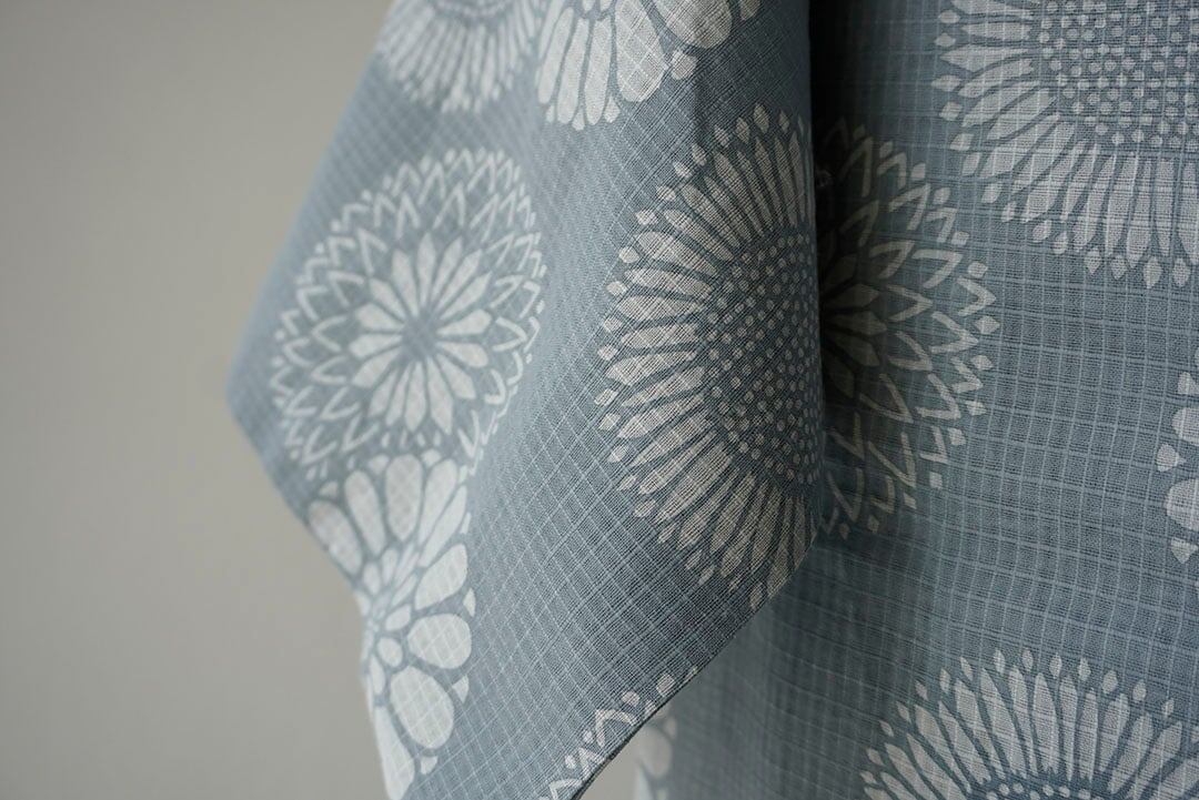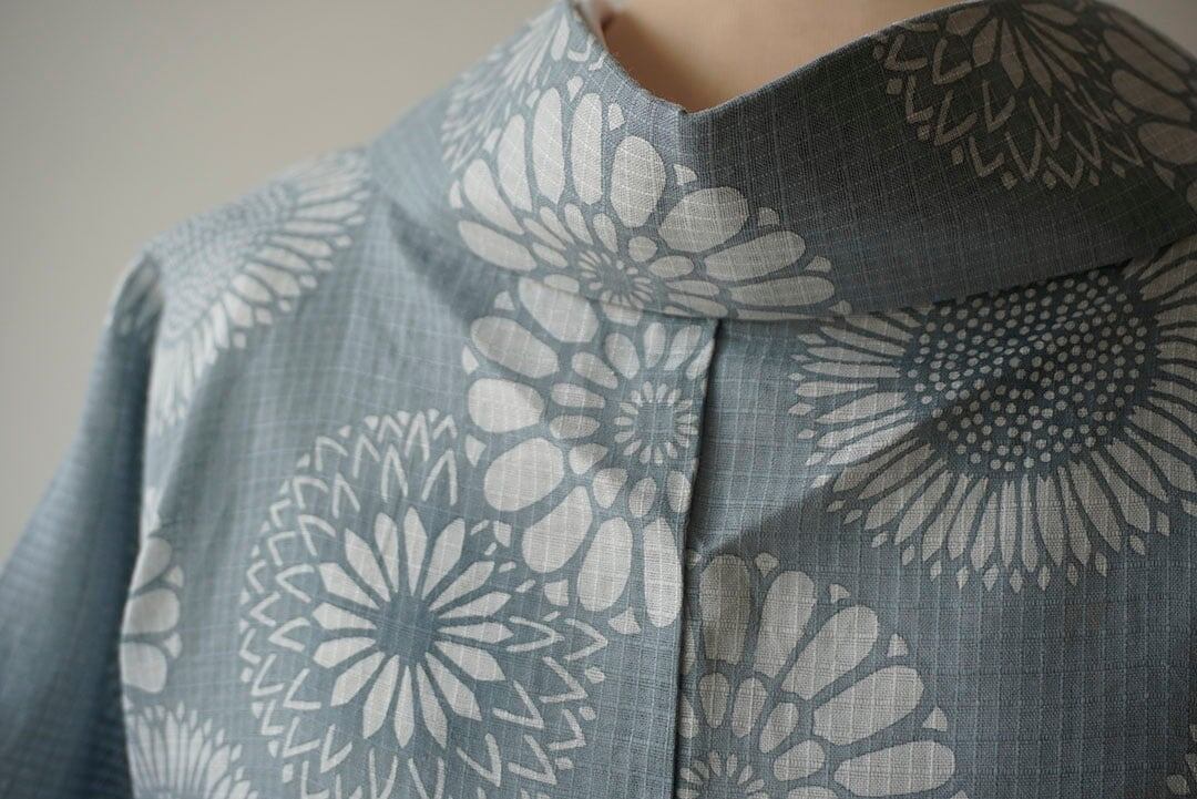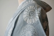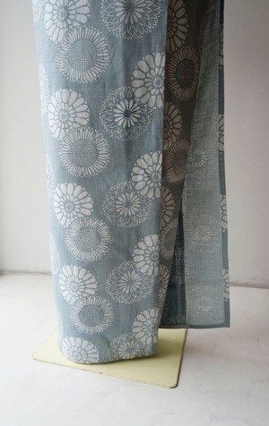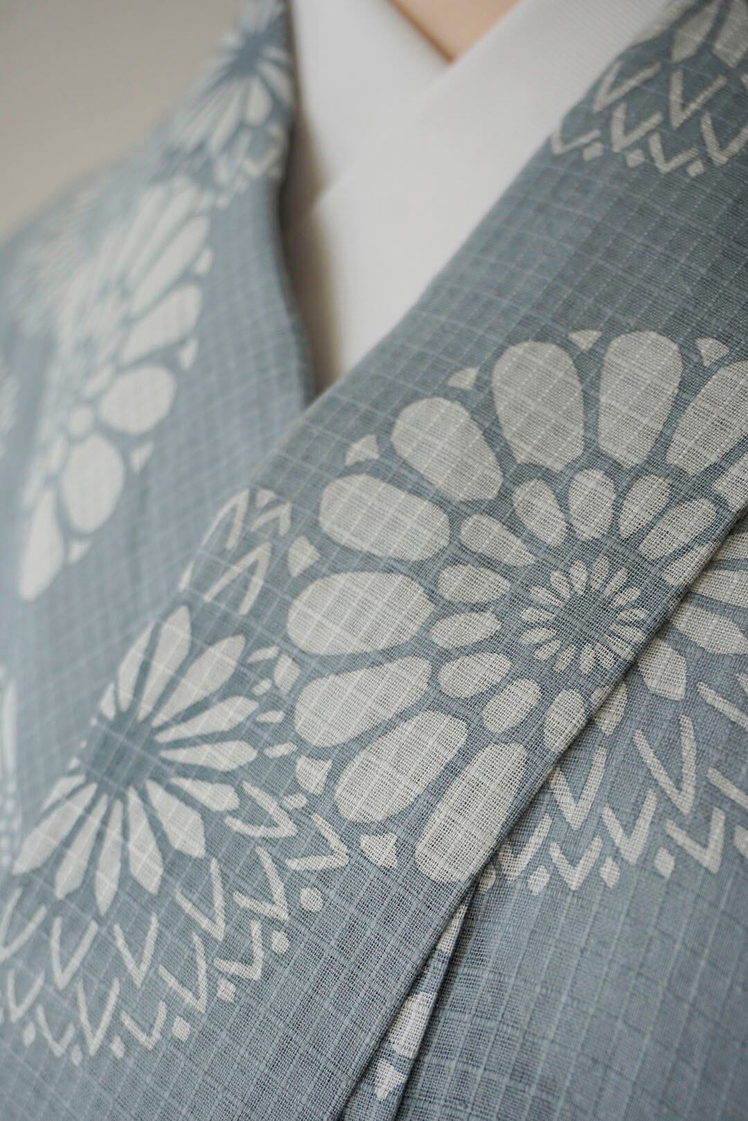 【浴衣】小千谷織物 綿麻紅梅 越後型染浴衣 菊花文