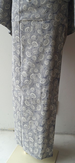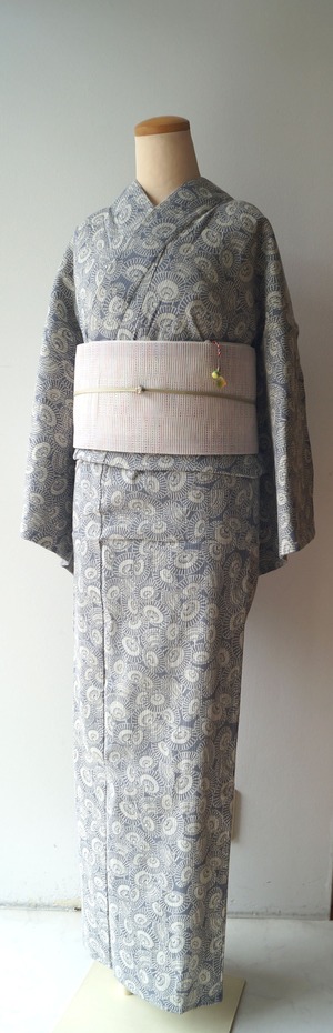 淡い紫鼠色地に番傘文の浴衣です。