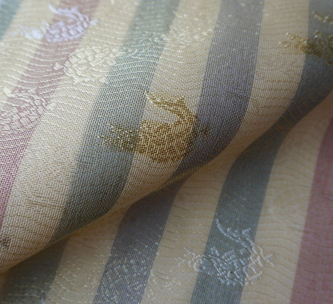 金糸で織り出された荒磯文は、