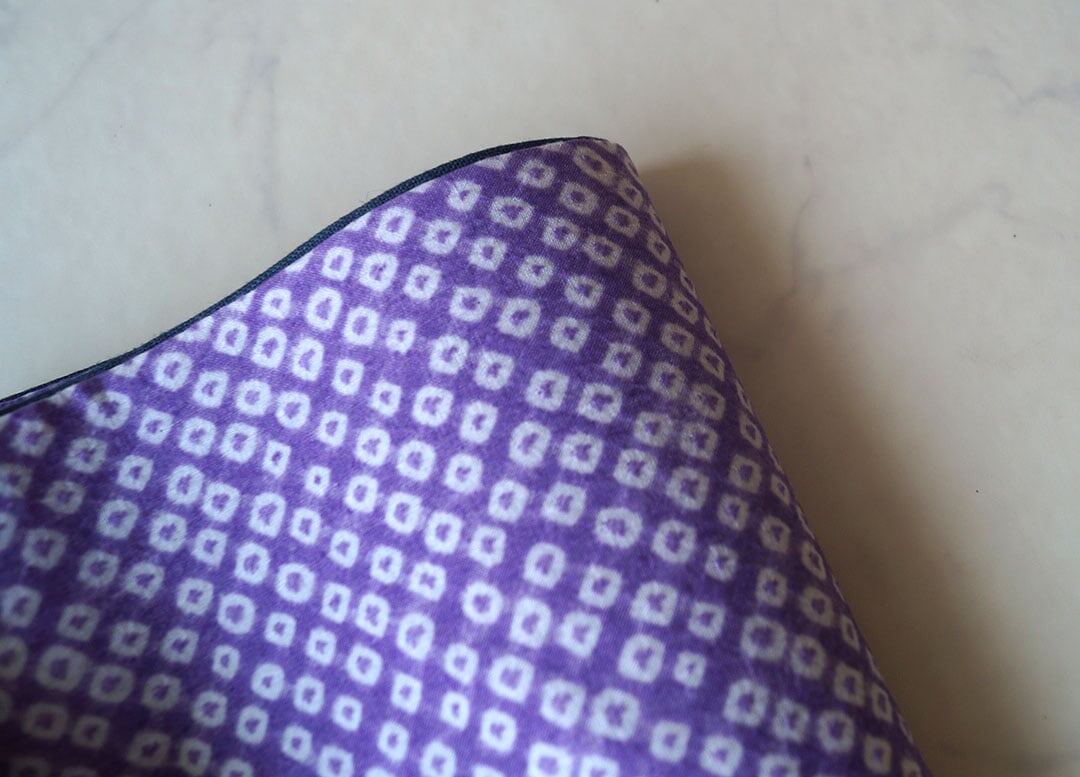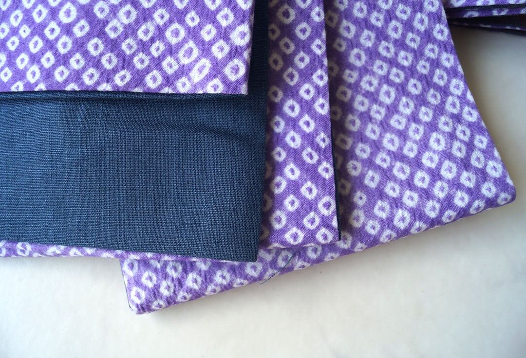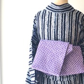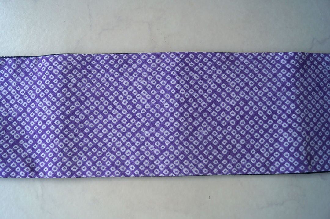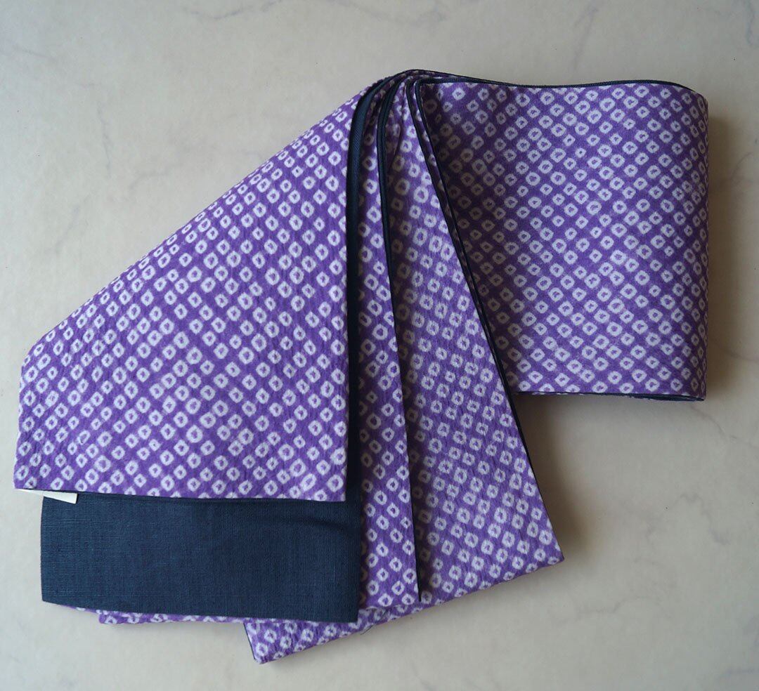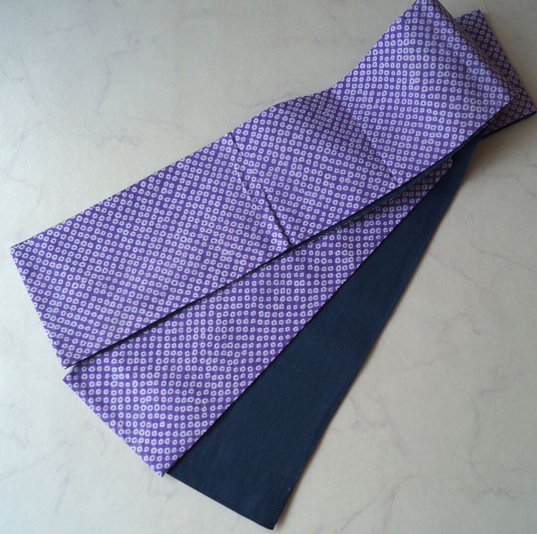 【半幅帯】茄子紺 鹿の子絞り リバーシブル 綿麻半幅帯 240723①