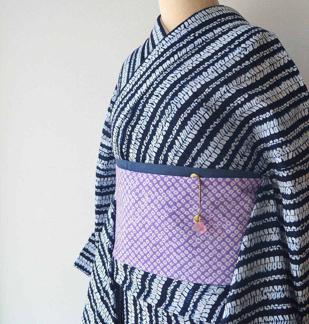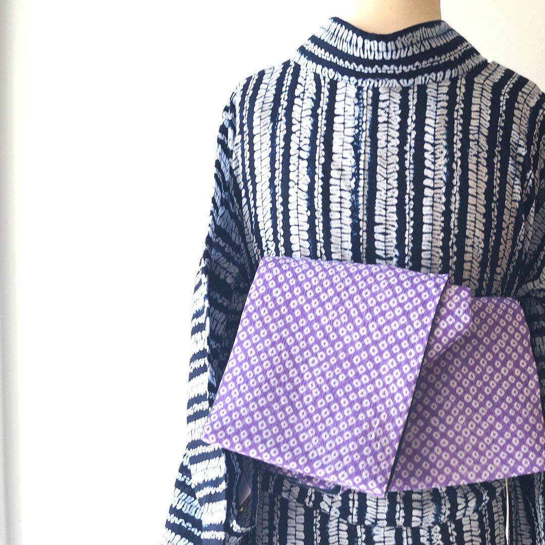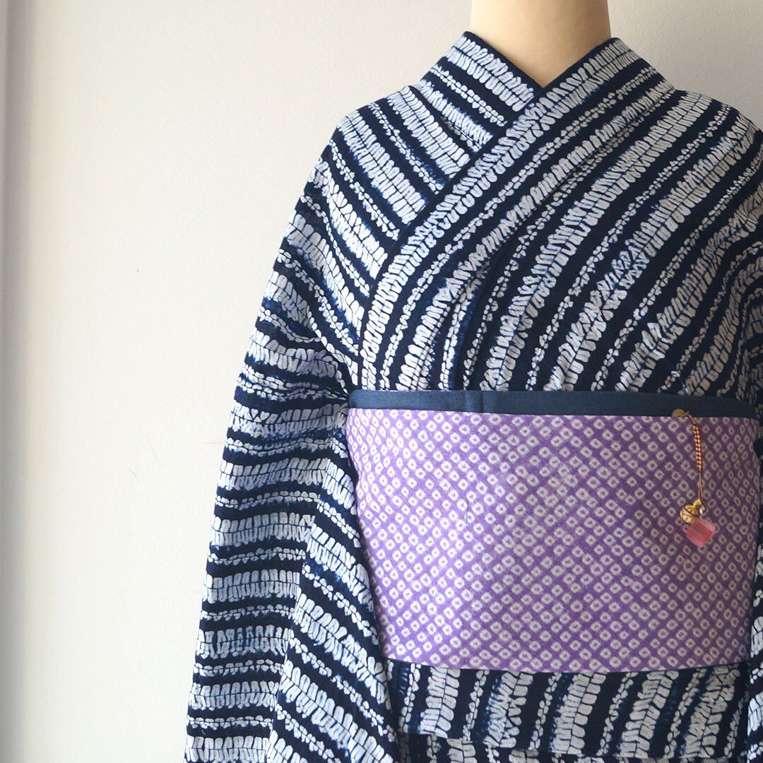 鹿の子絞りと無地の両面使いの半幅帯です。
