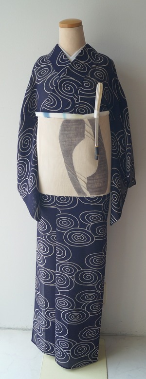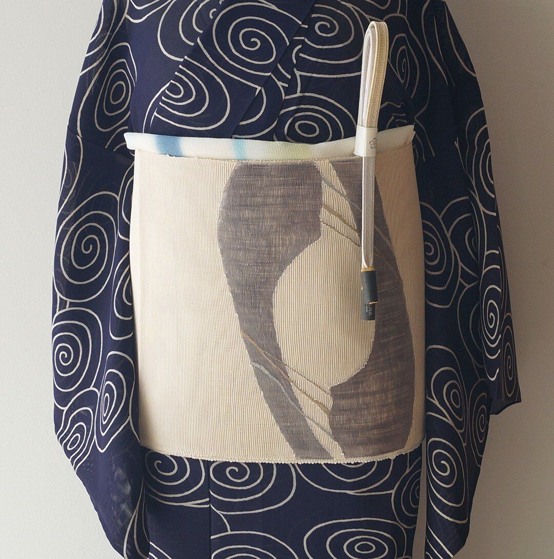 【夏なごや帯】生成色地 抽象文 夏なごや帯