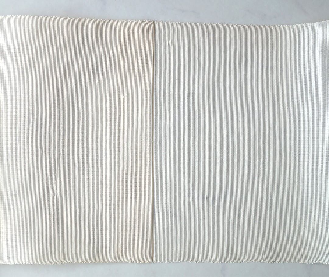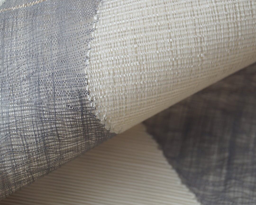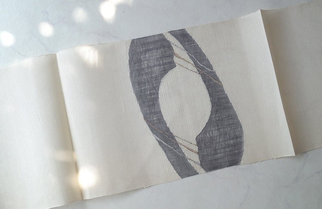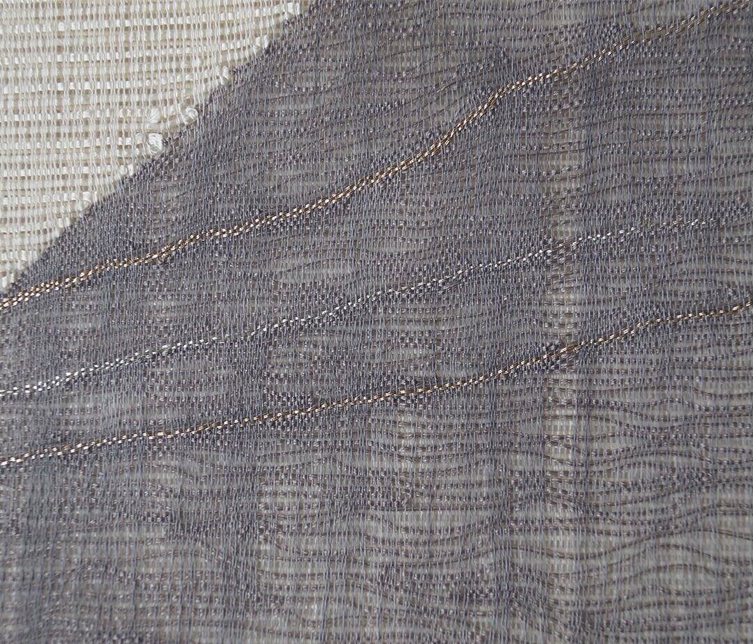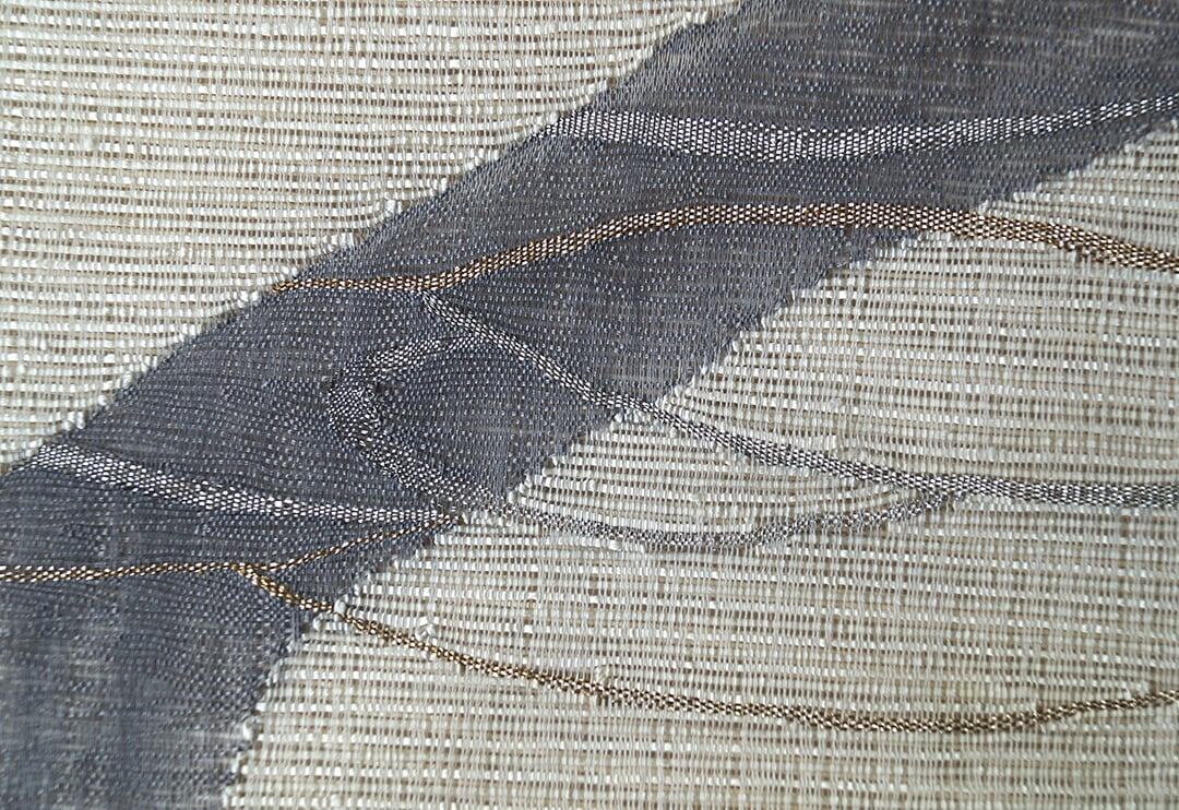 お柄はグレーの糸による櫛織りで、