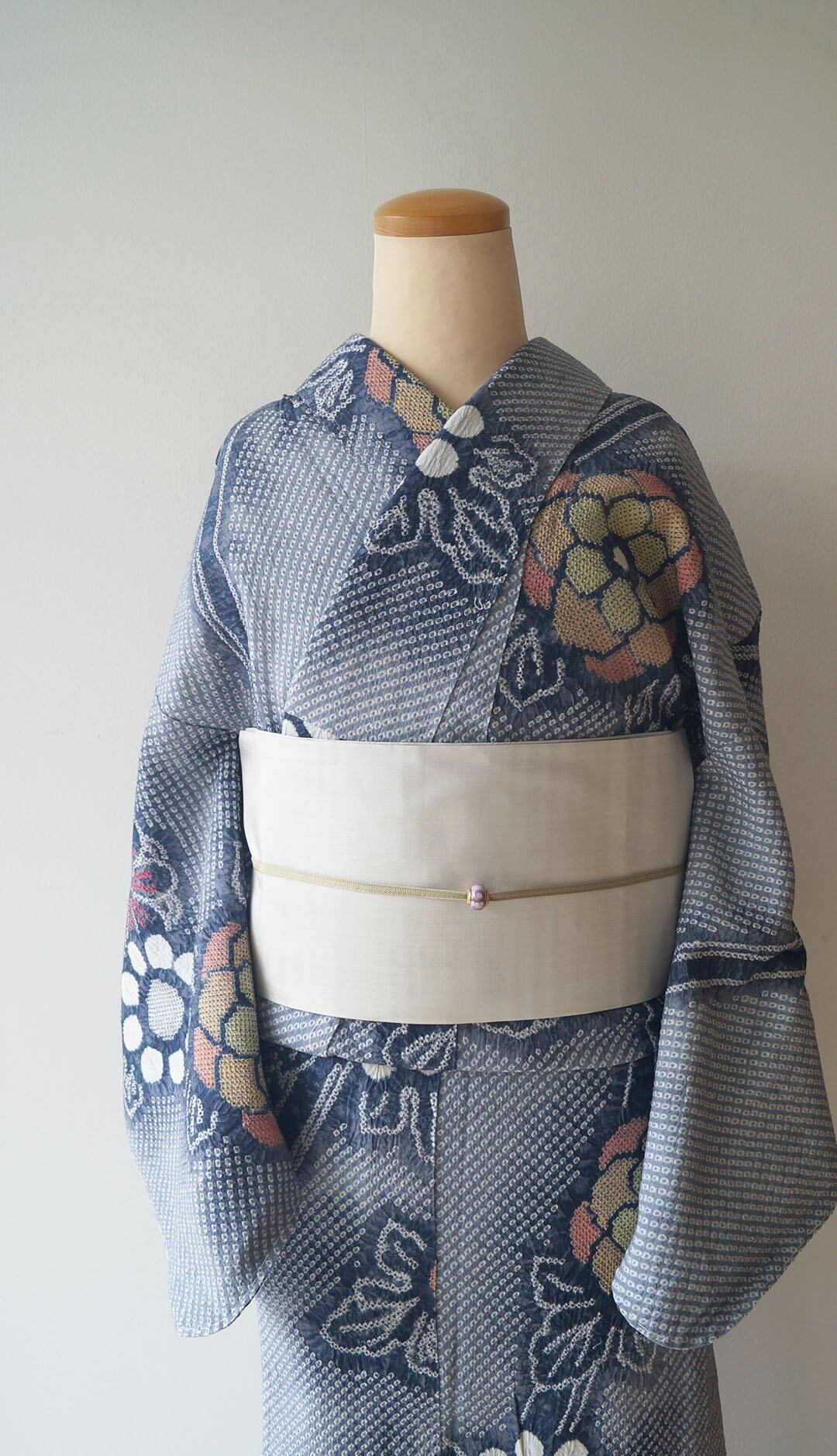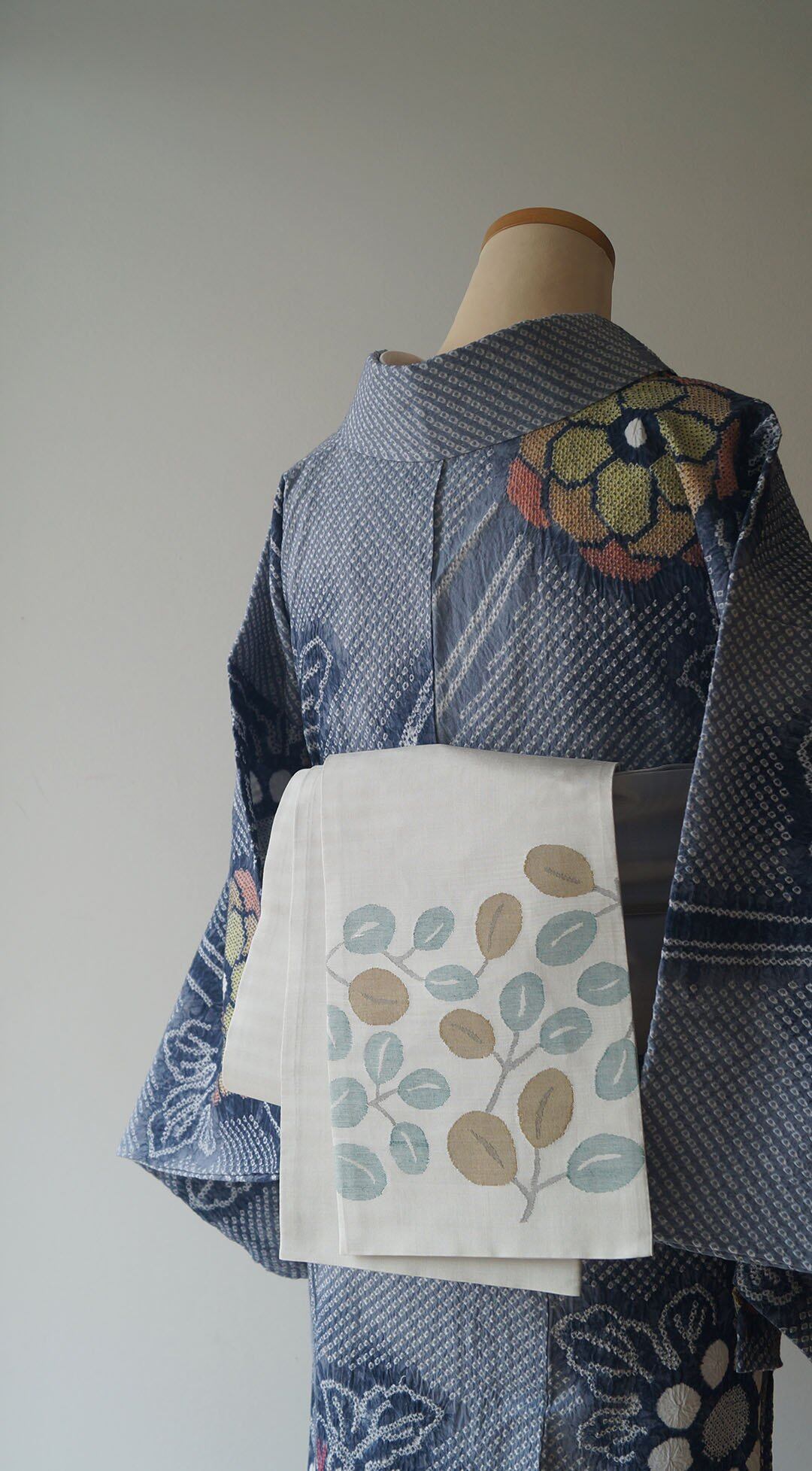 【半幅帯】千草鼠色地 萩文 半幅帯