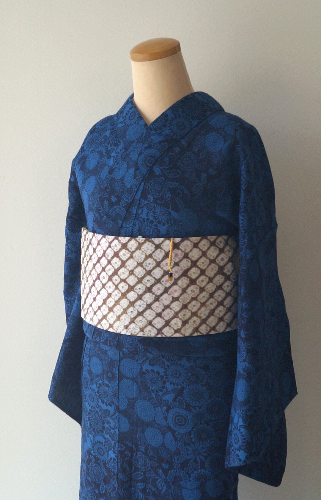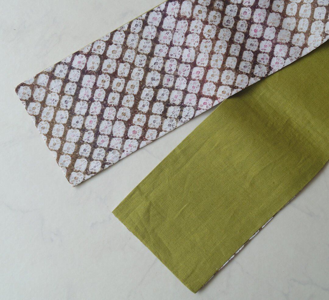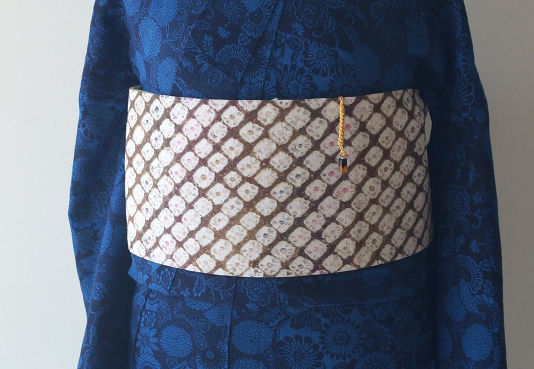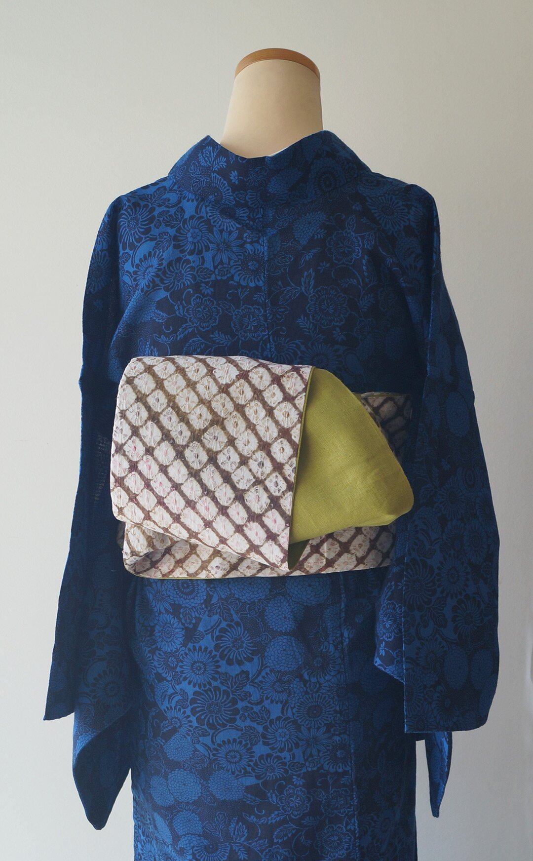 蜘蛛絞りと無地の両面使いの半幅帯です。