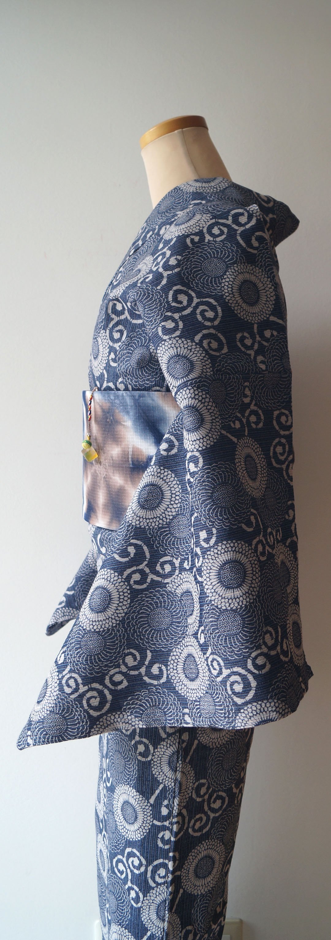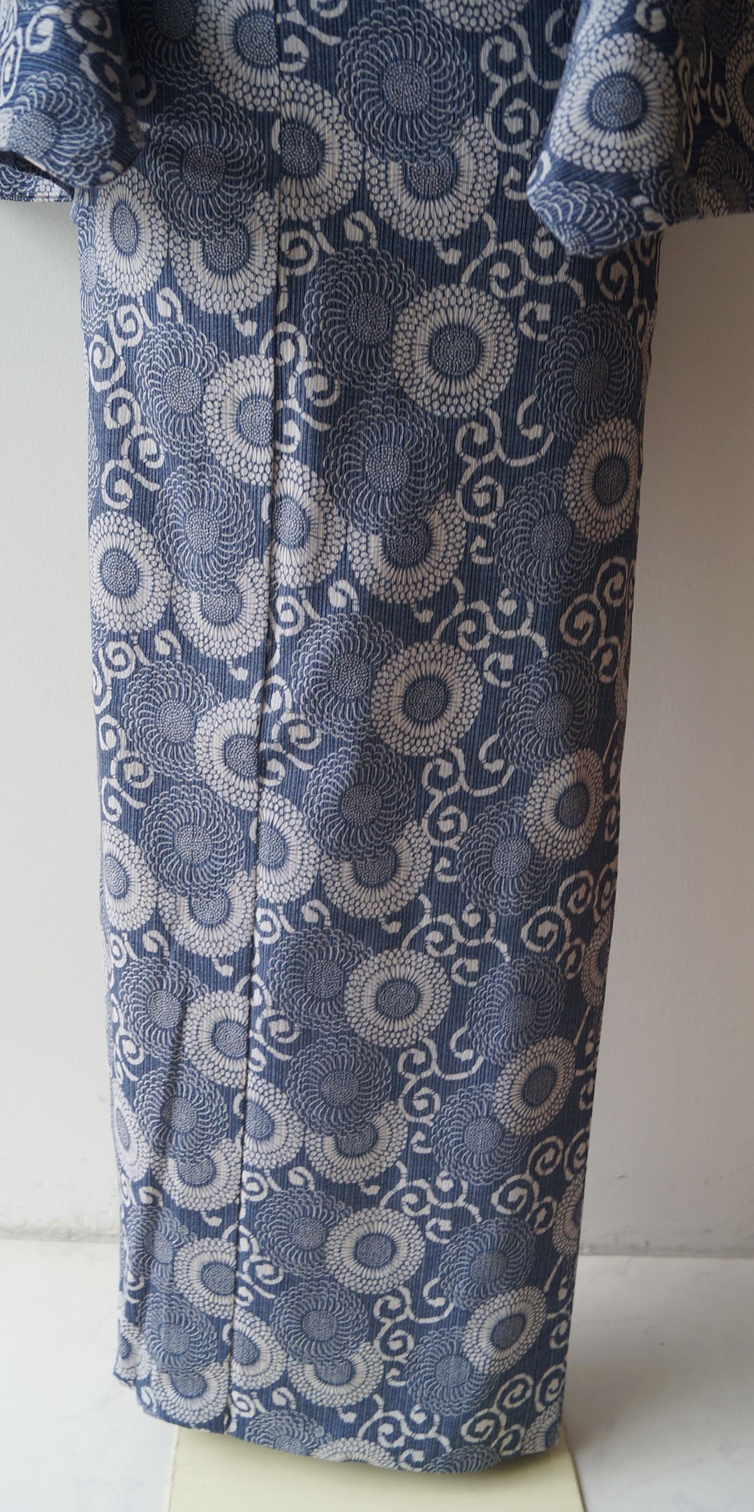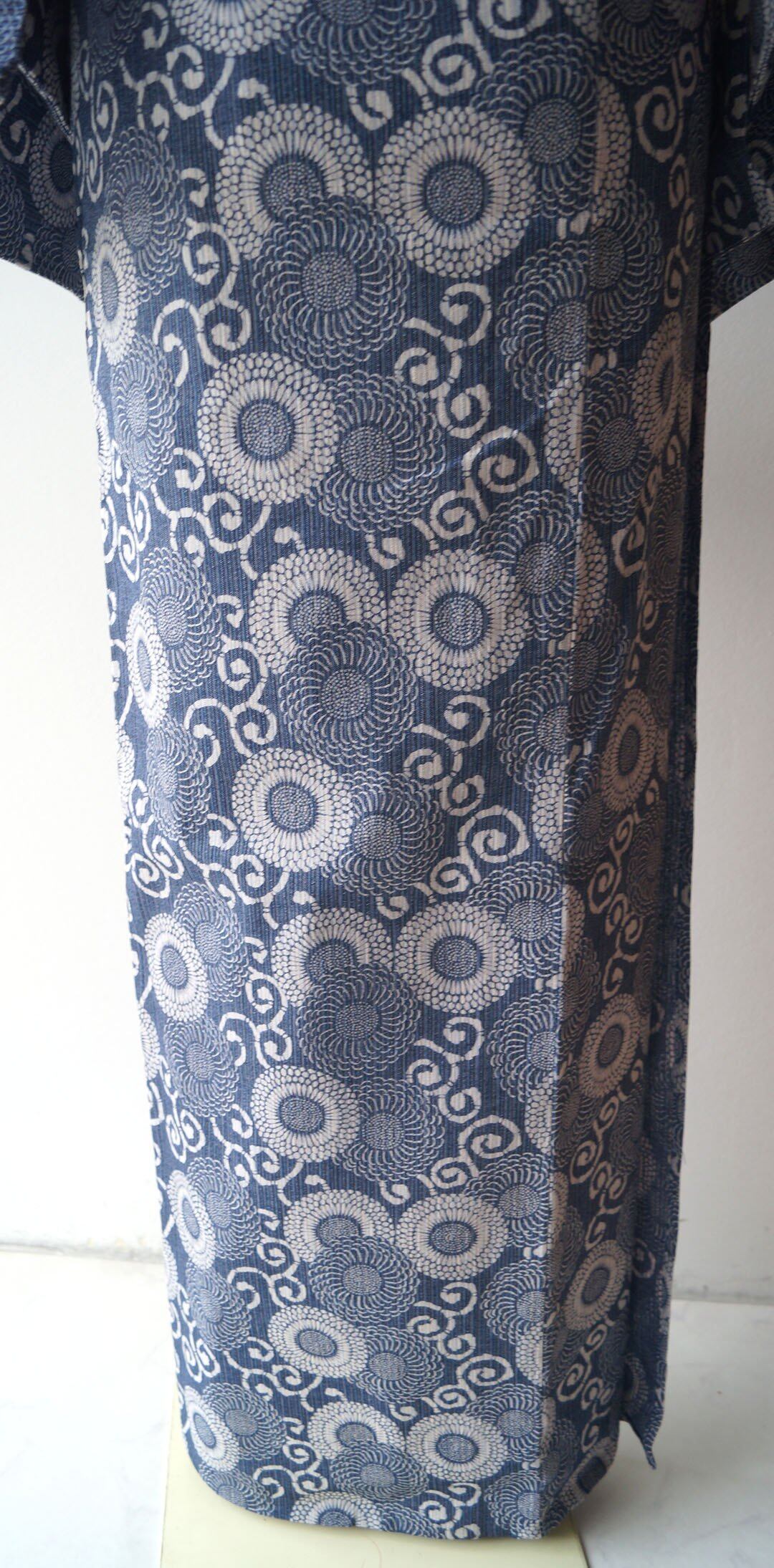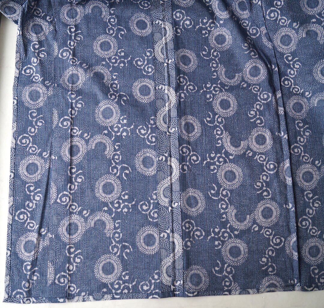 藍色地に花唐草文の浴衣です。