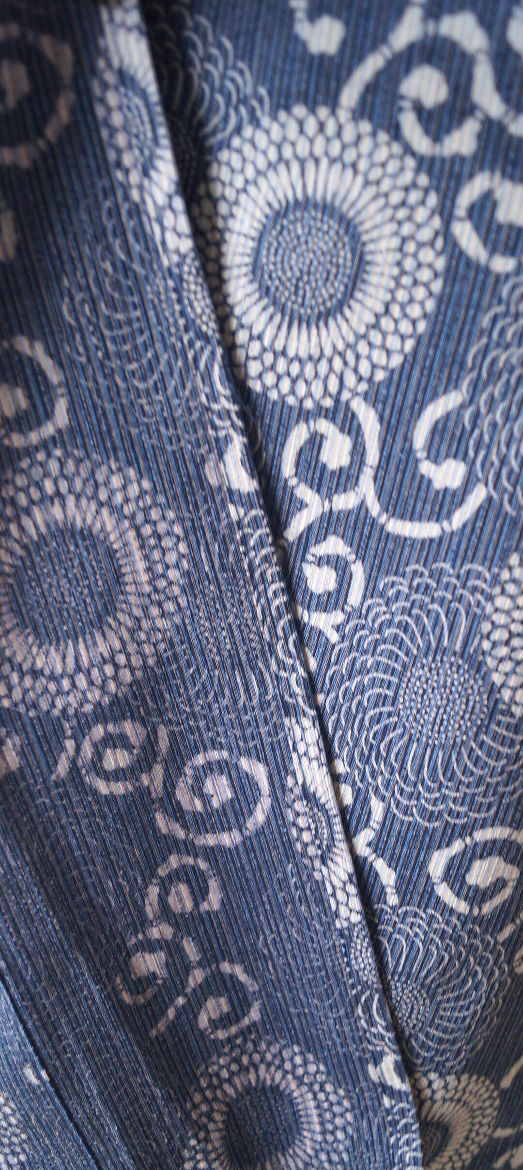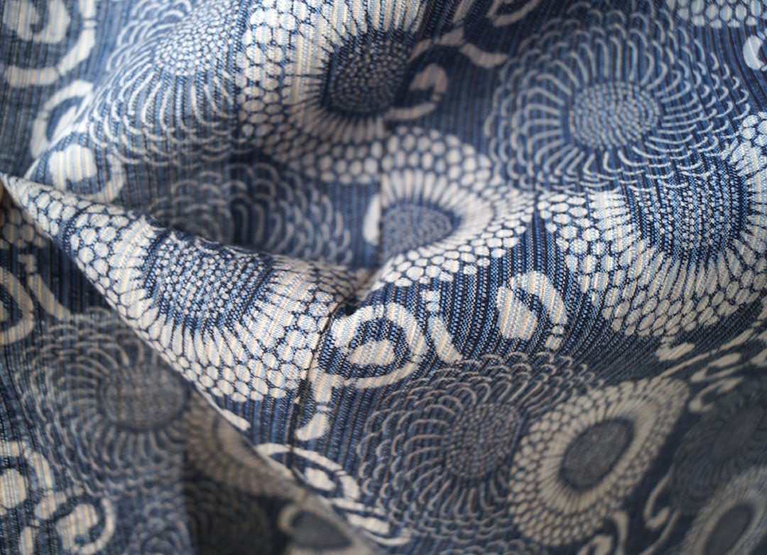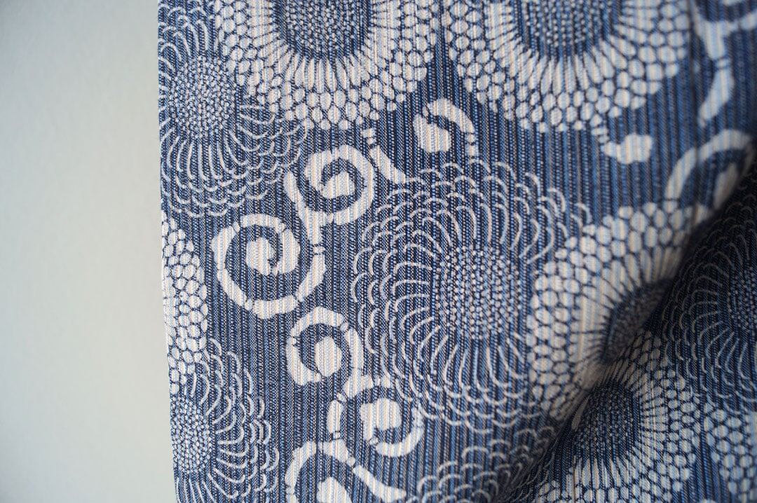 藍色地に文様には生成り色