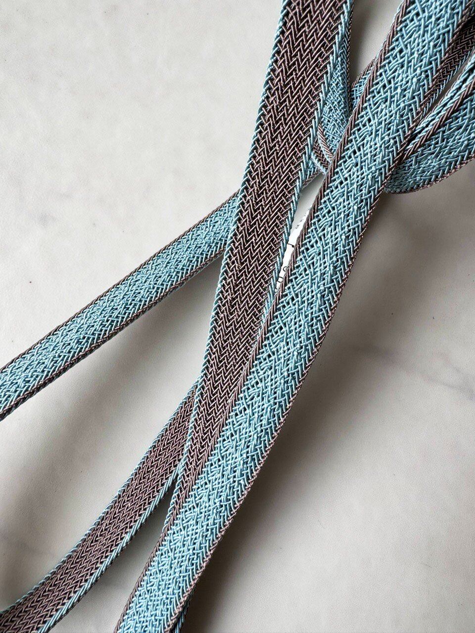 【和小物さくら・帯締め】勿忘草色×黒 綾高麗両面レース リバーシブル帯締め No.S240611⑧