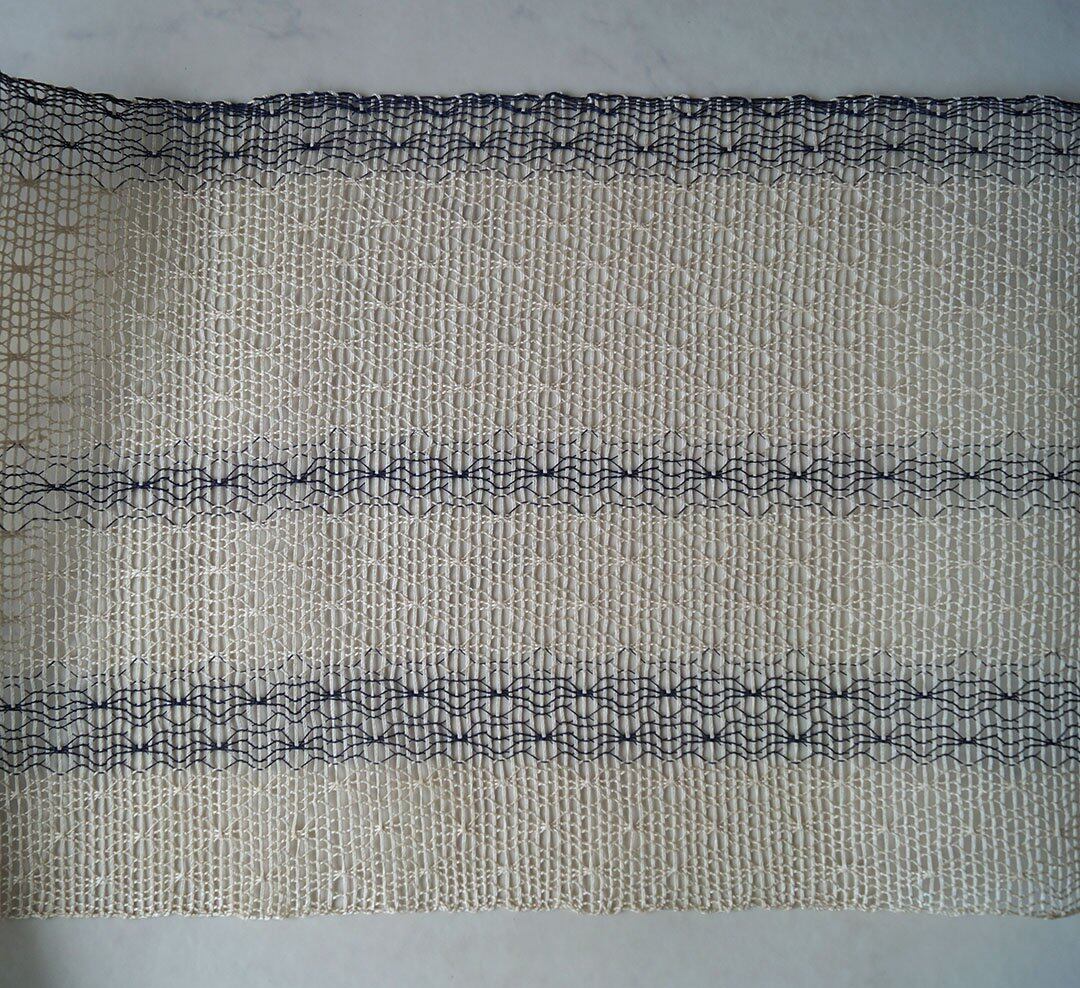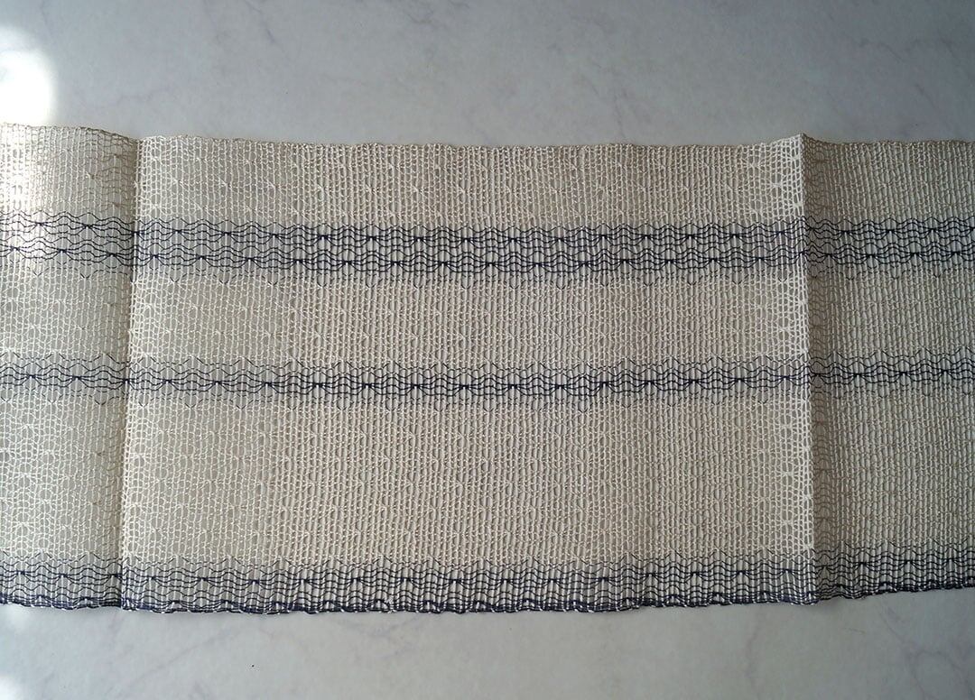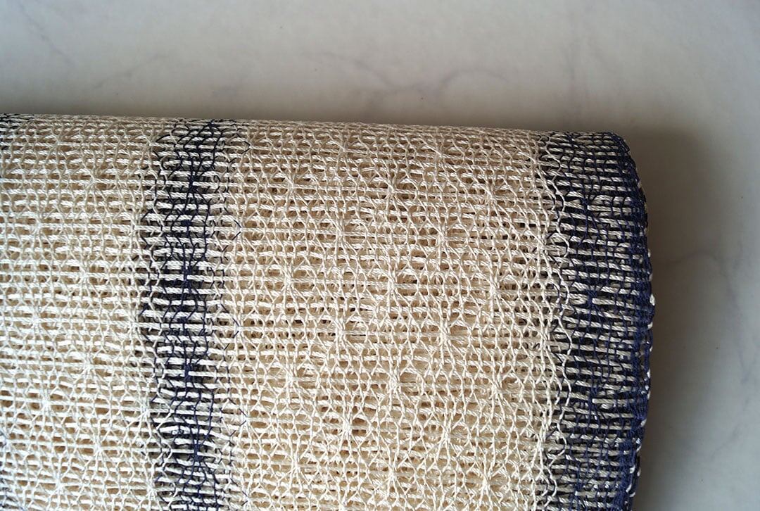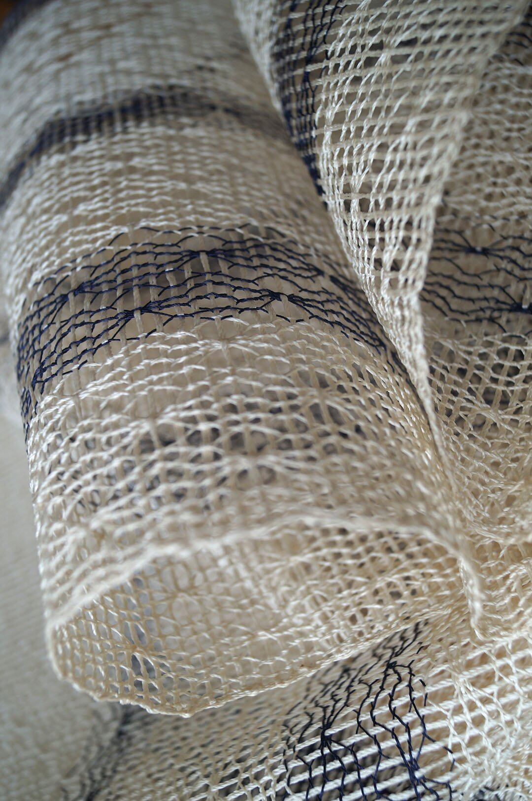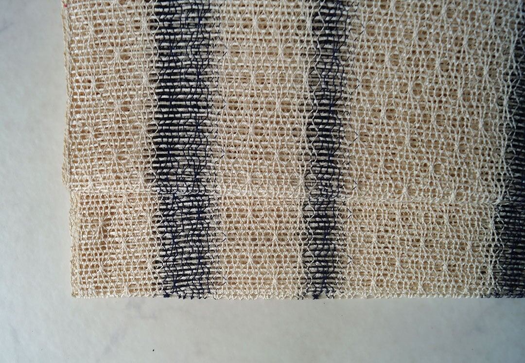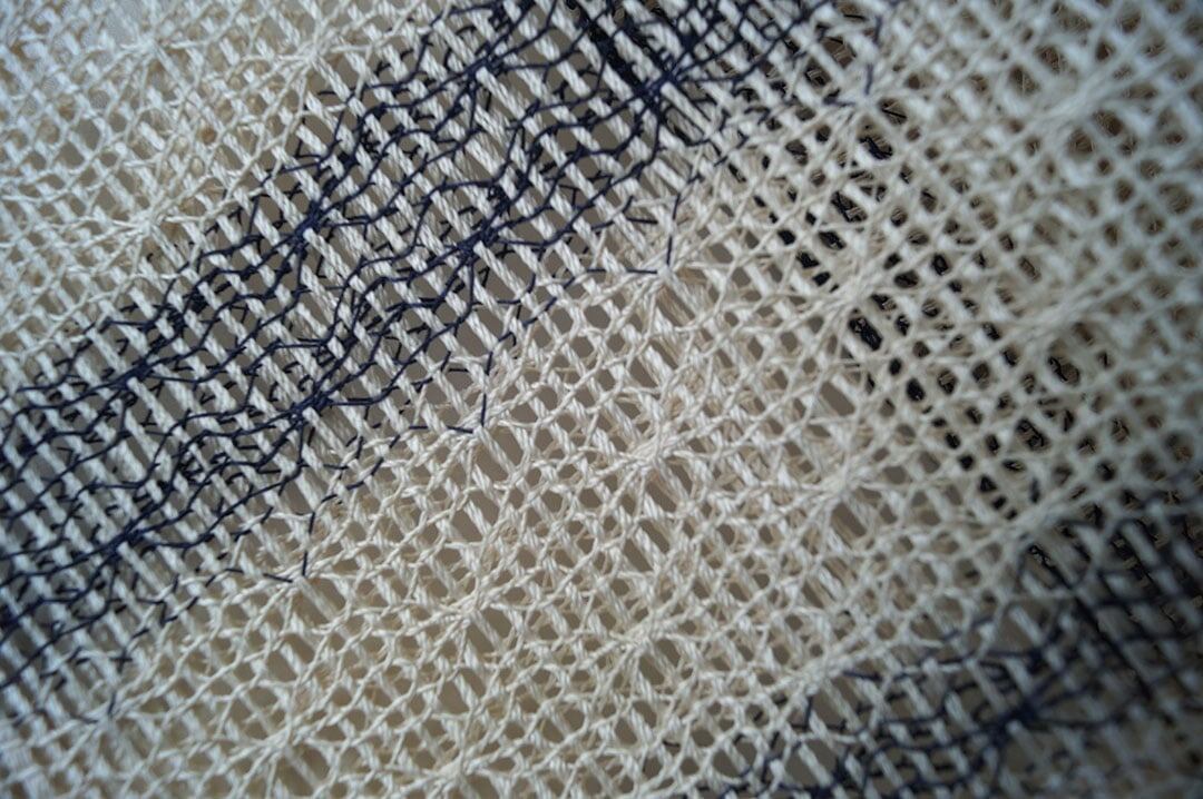 やや細い紺色の縦糸とのコントラストが