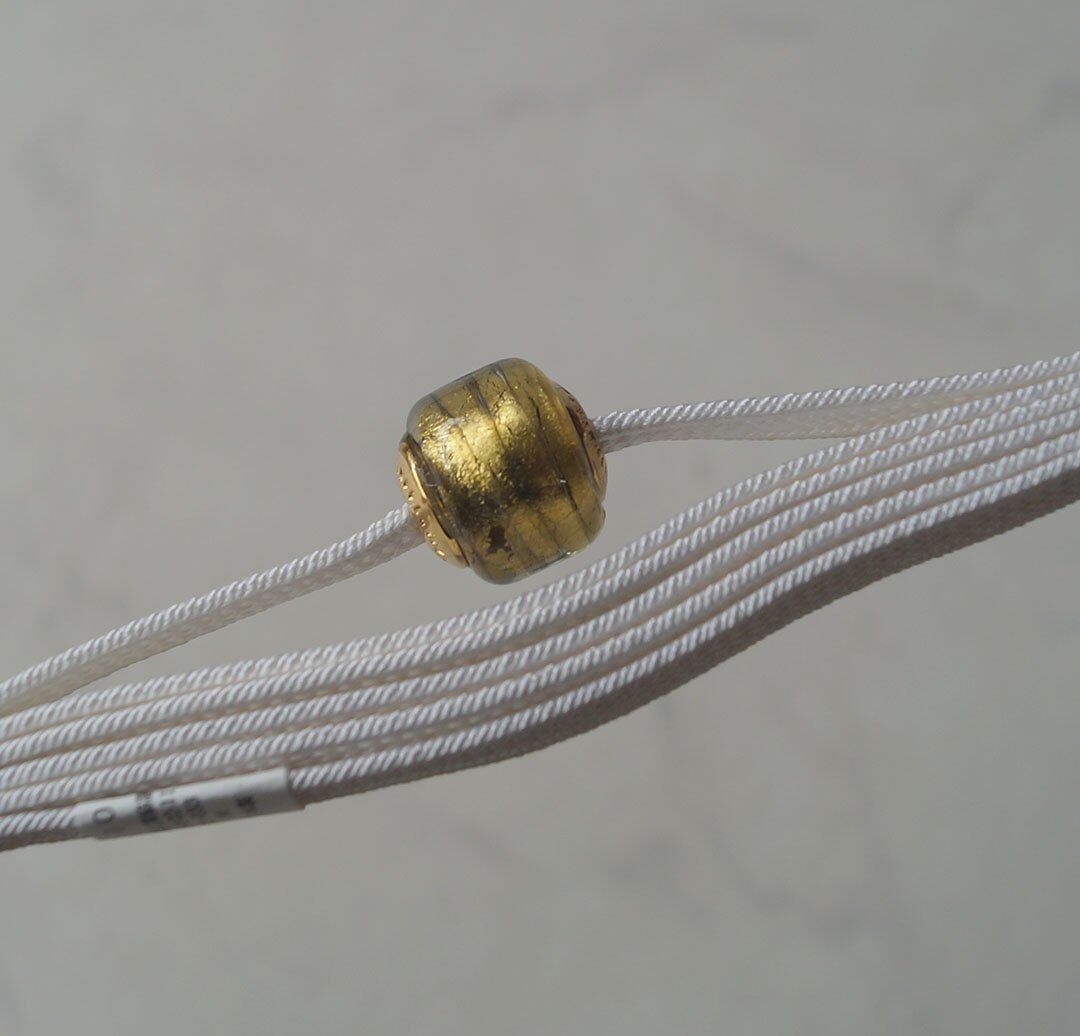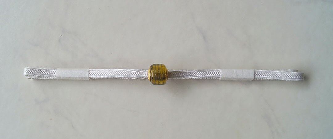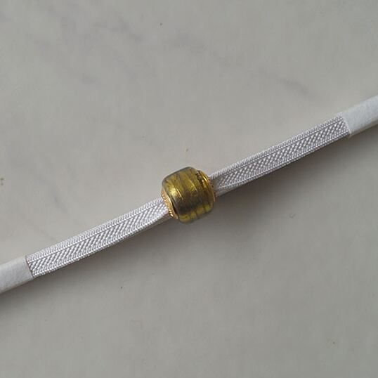 【帯留】ヴェネチアングラス帯留 ブロンズ色 胡粉色の二分紐 No240714①