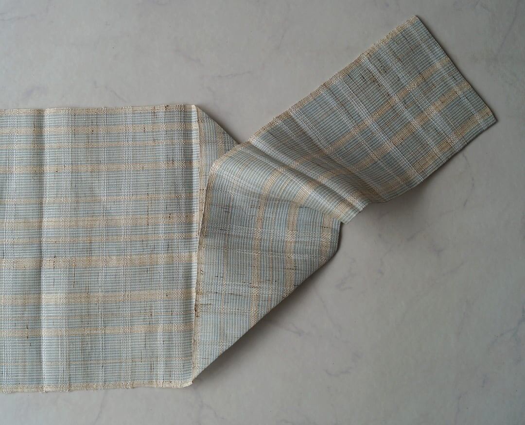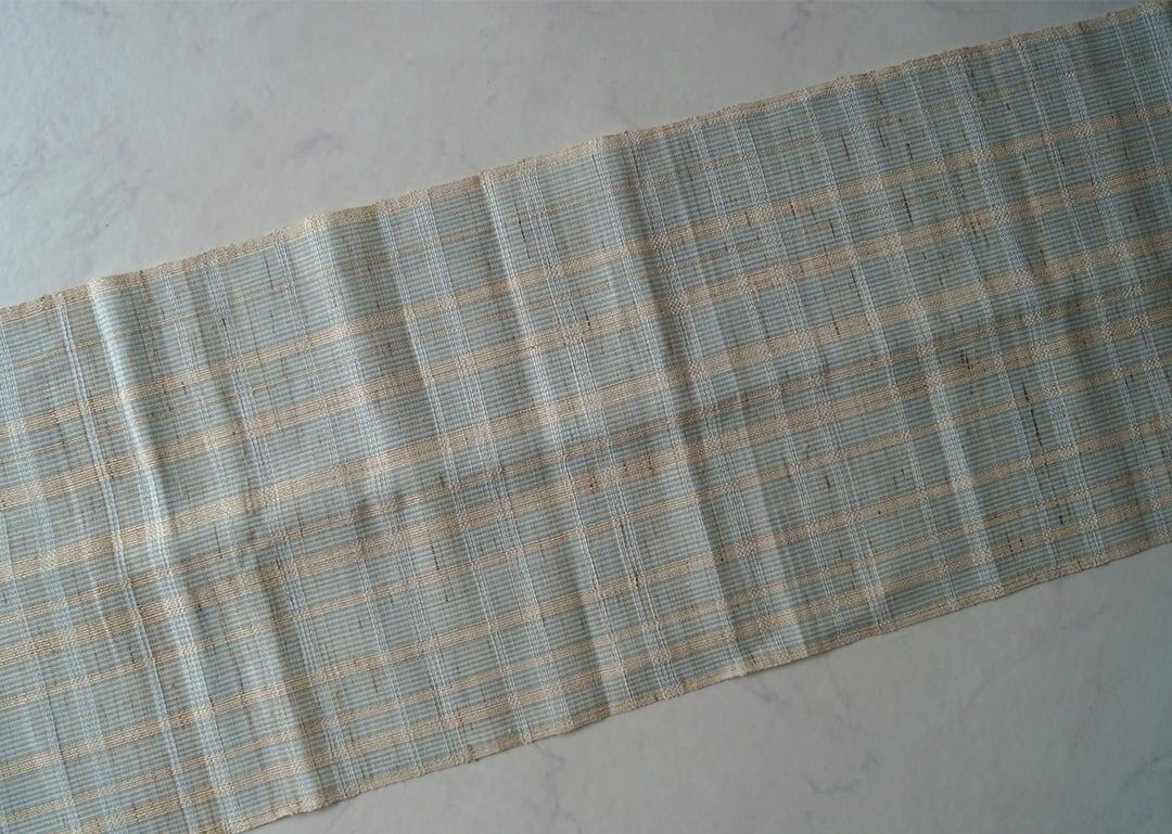 【なごや帯】生成り色×空色 ぜんまい八寸なごや帯