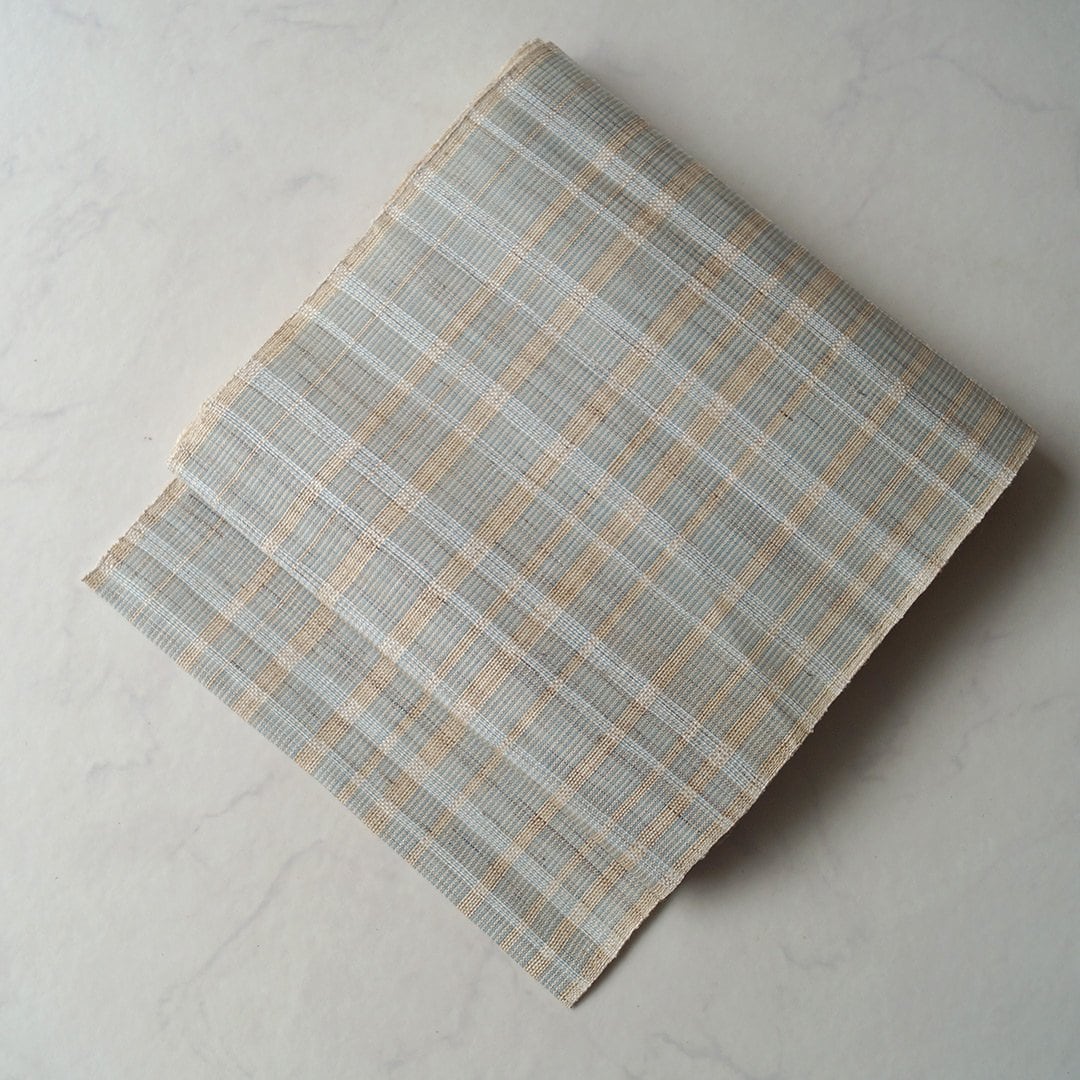 白の横縞が組み合わされた軽やかなお色味の格子文。