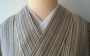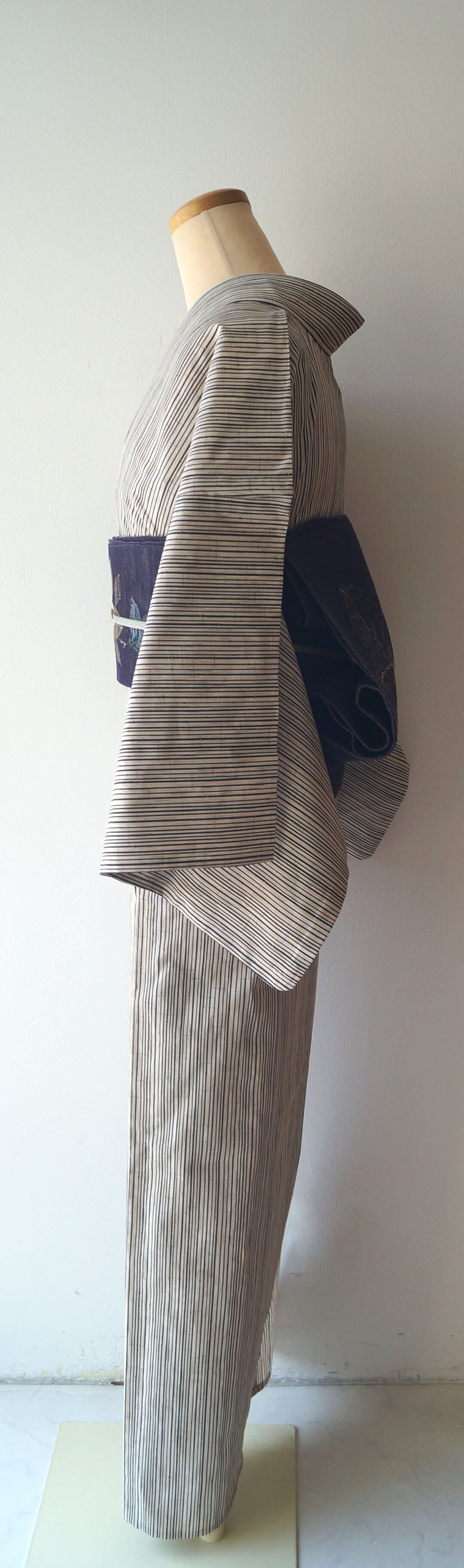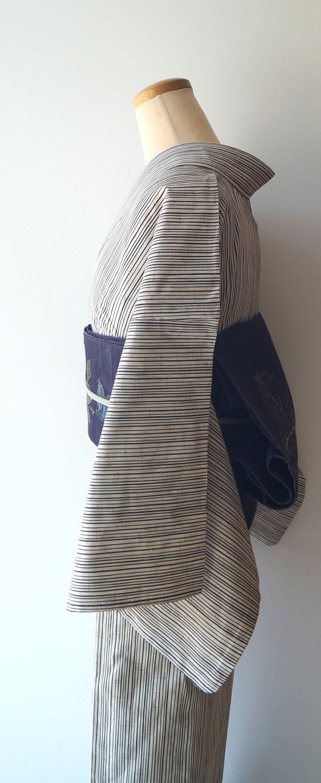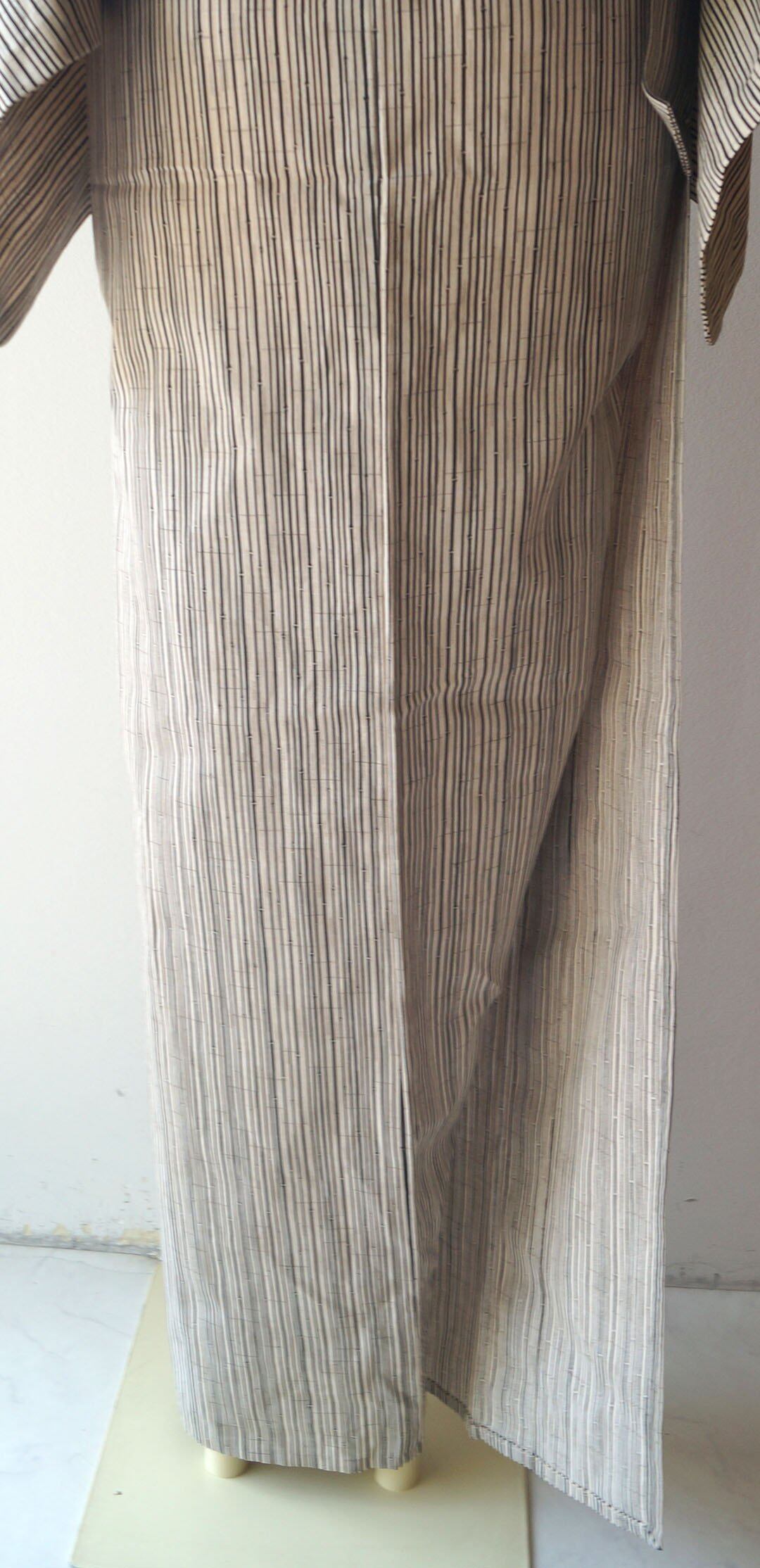 【浴衣】象牙色×蝋色 細竹柄縞文 浴衣_2