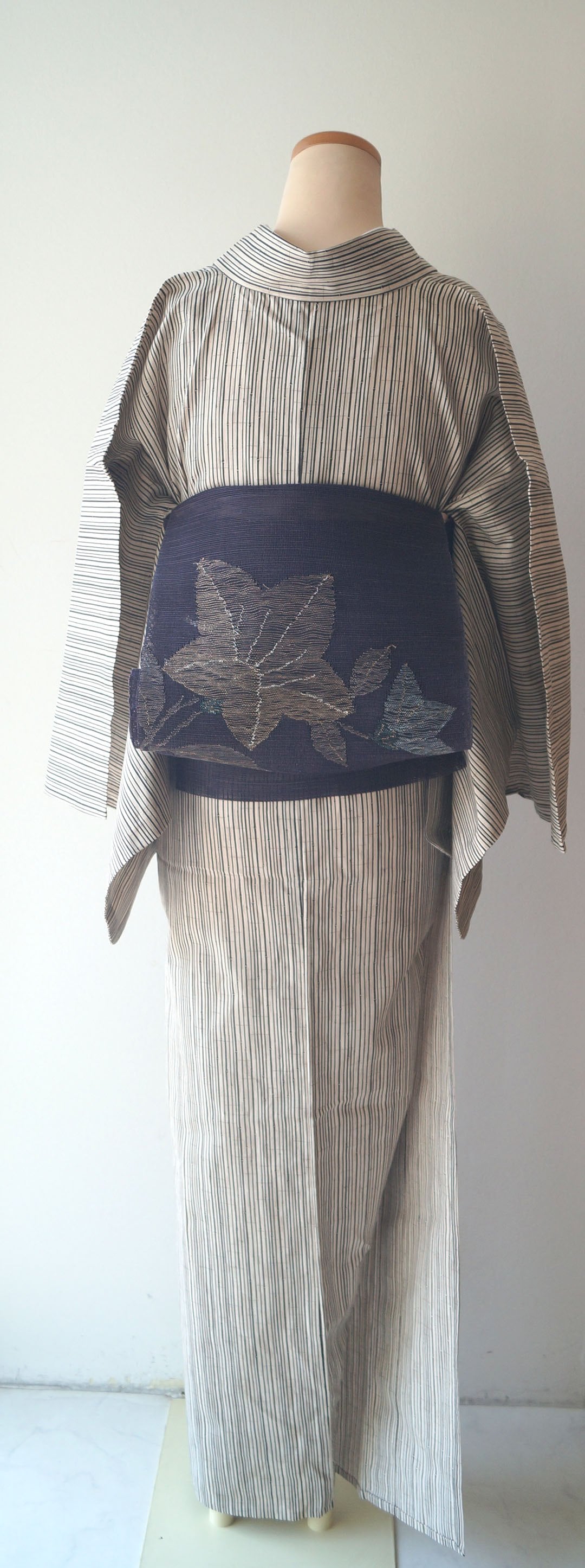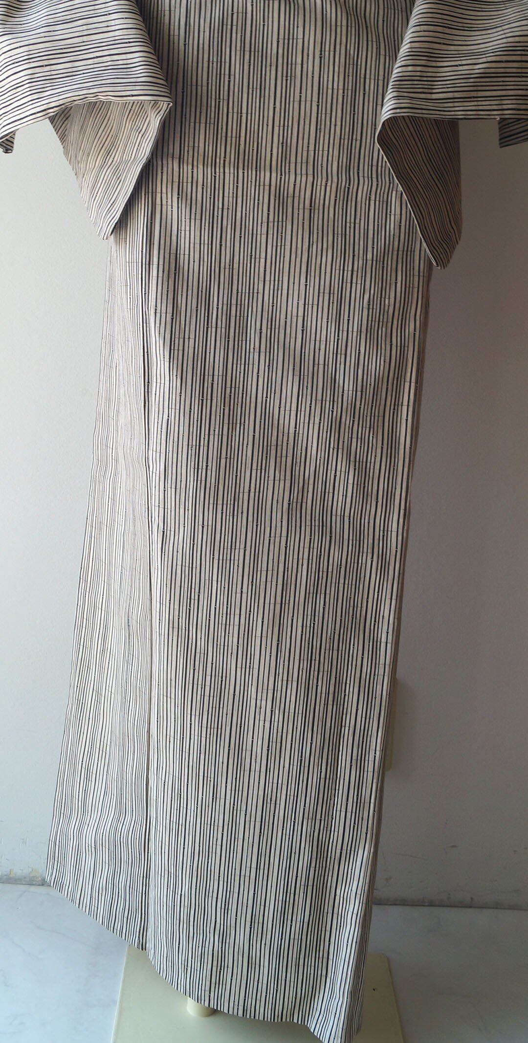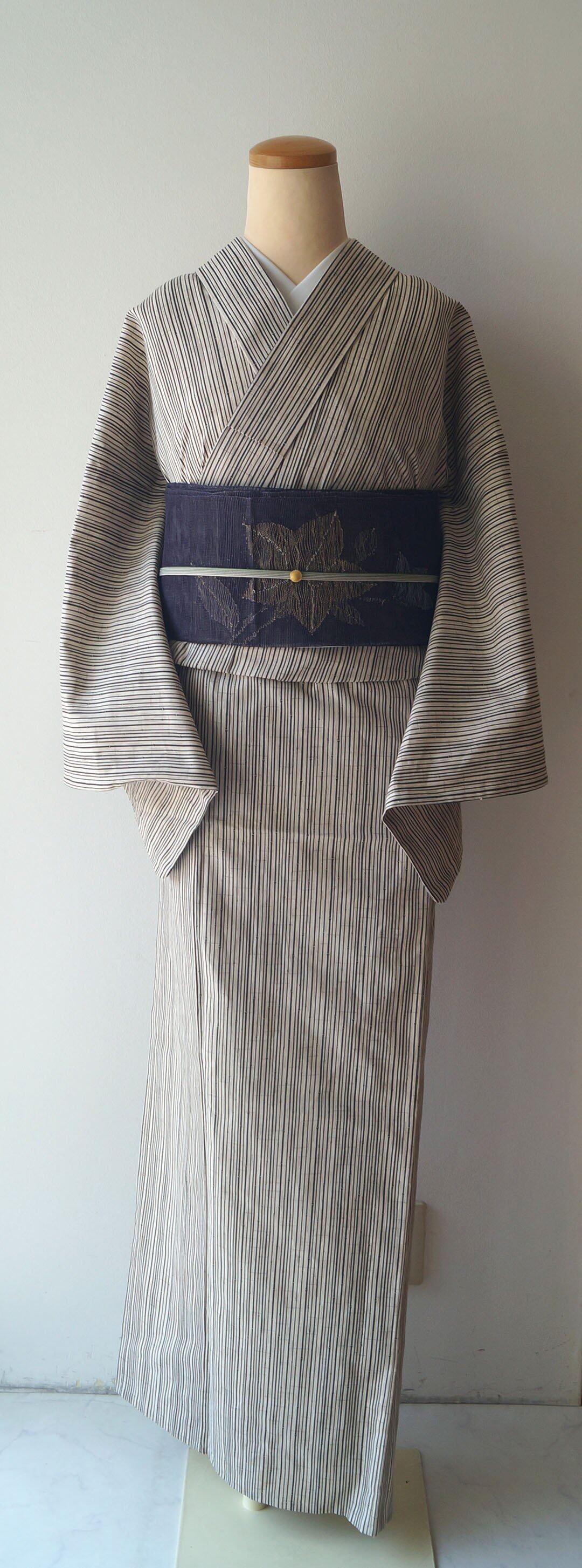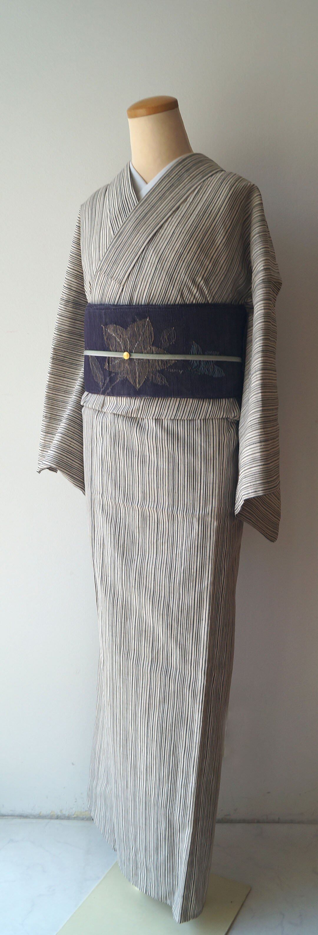 【浴衣】象牙色×蝋色 細竹柄縞文 浴衣_2