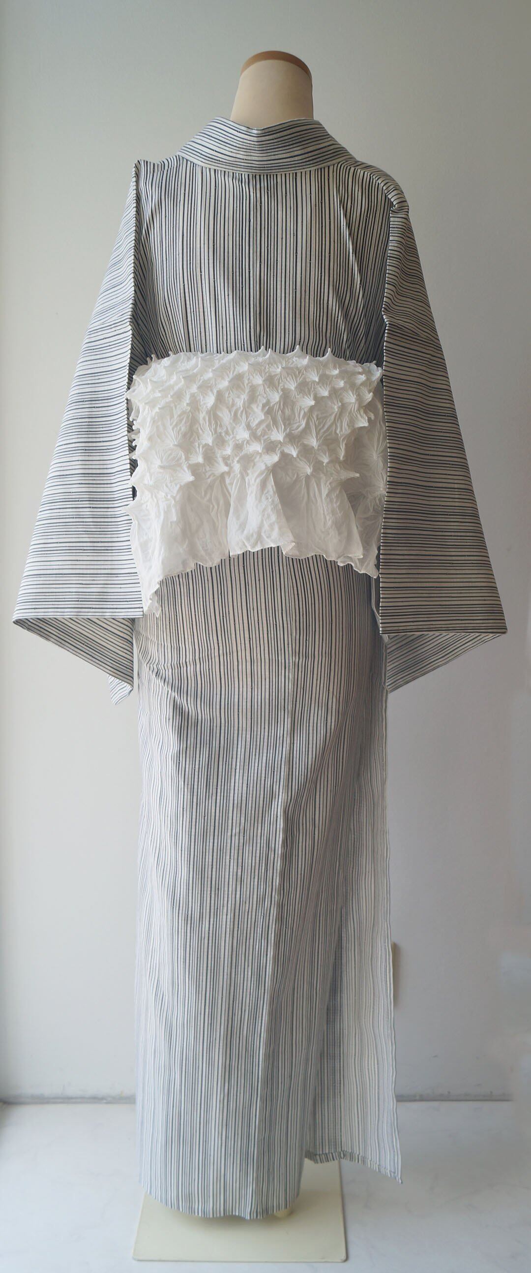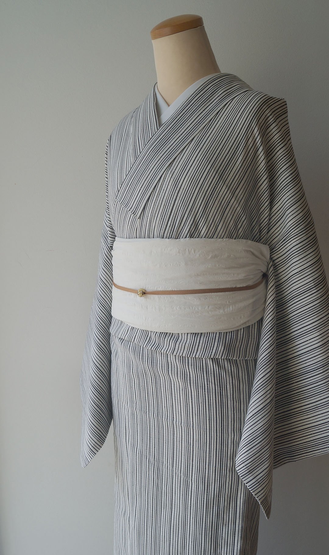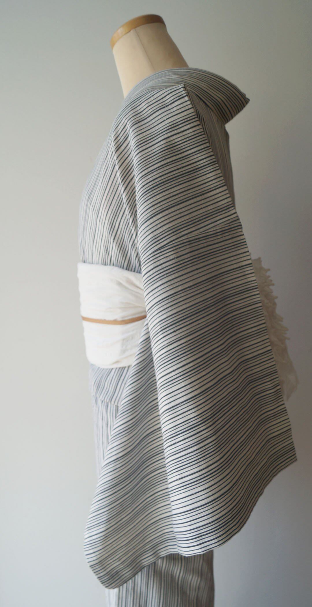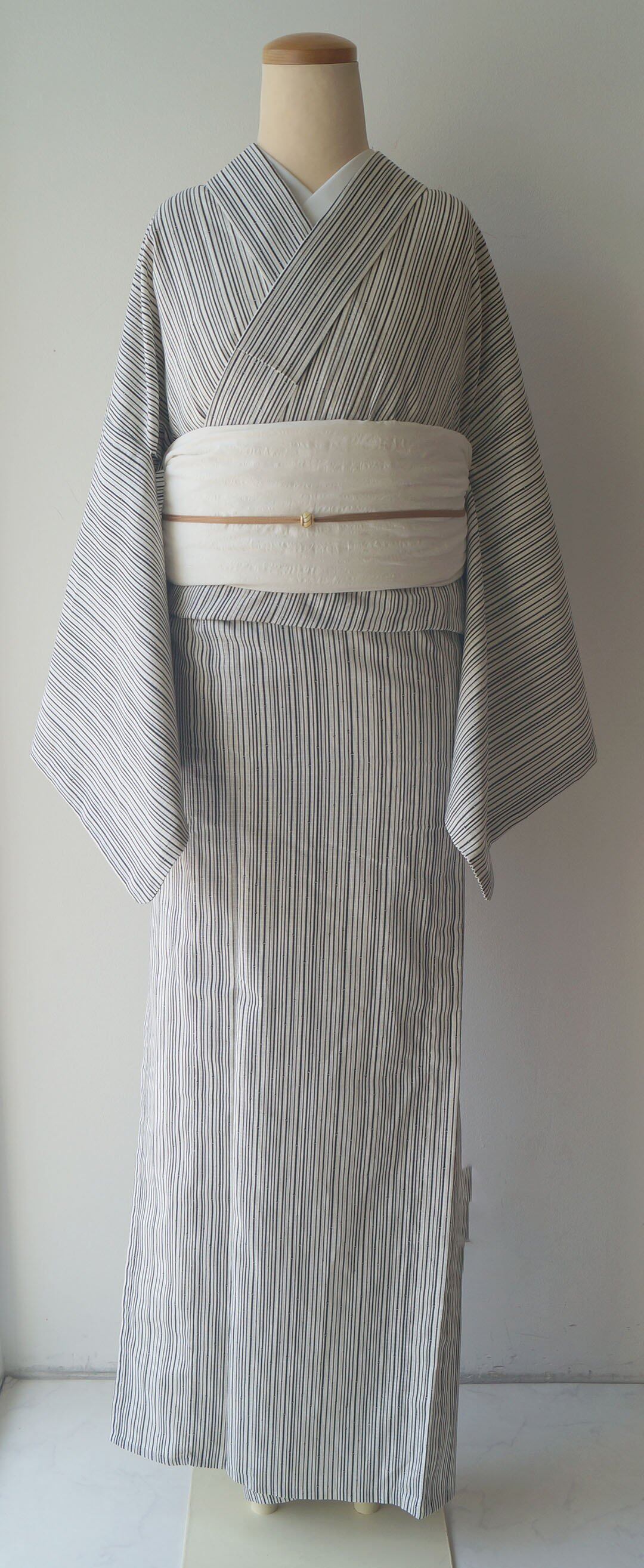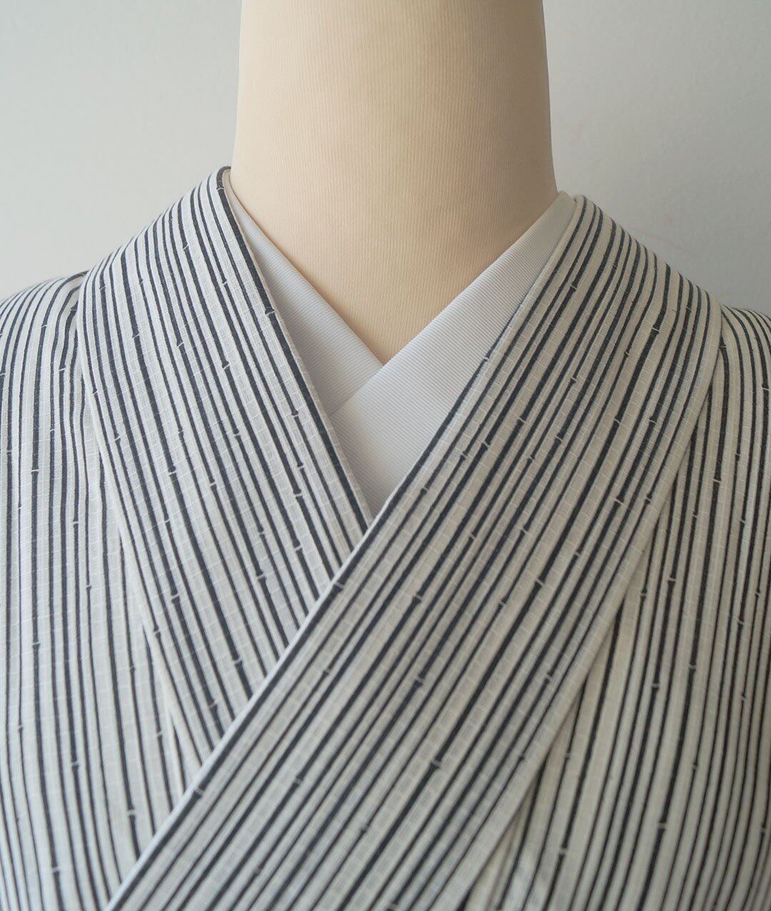 ナチュラルな生成り地に細い竹の縞柄の浴衣です。