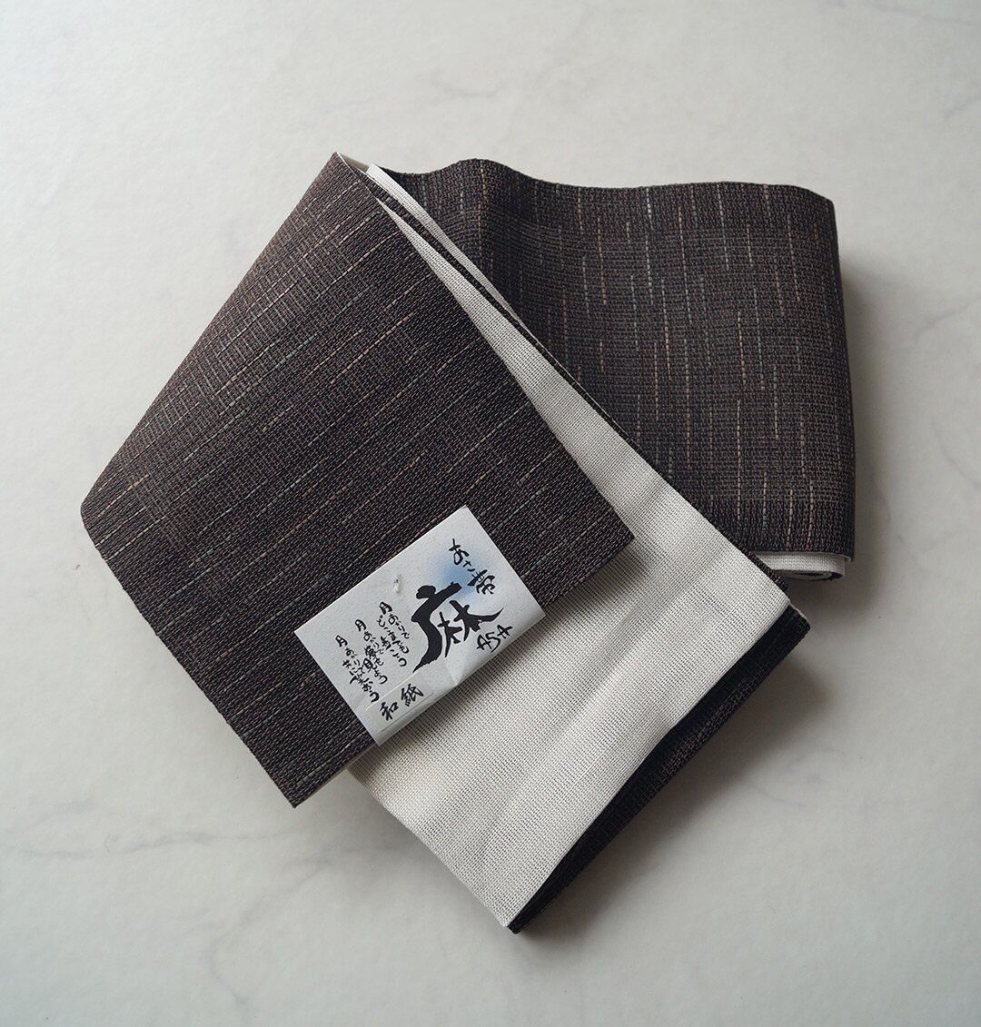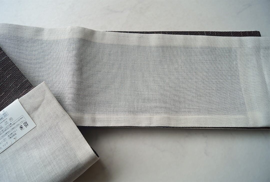 リバーシブル仕様の麻の半幅帯、