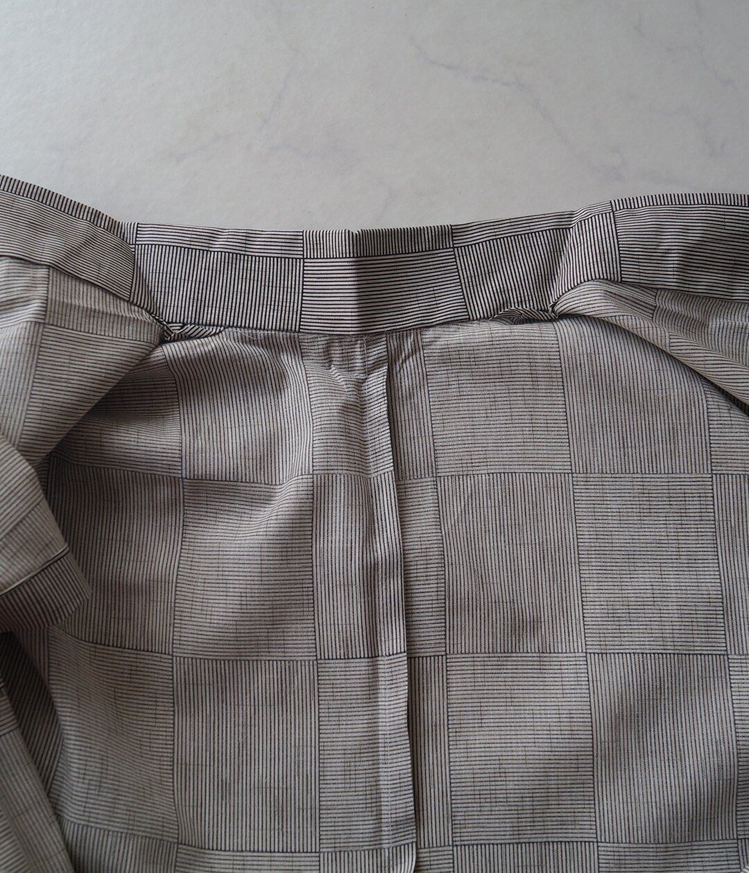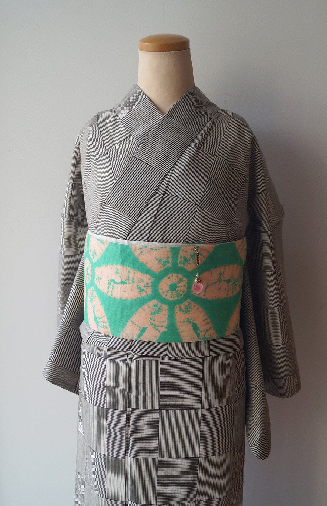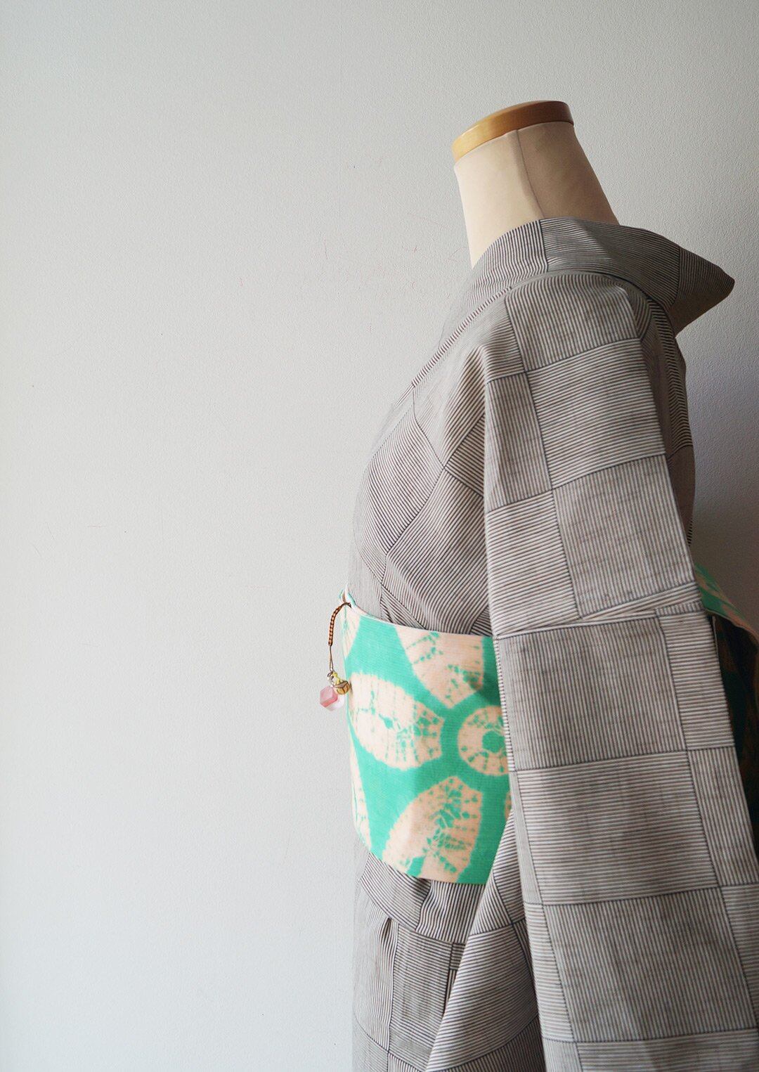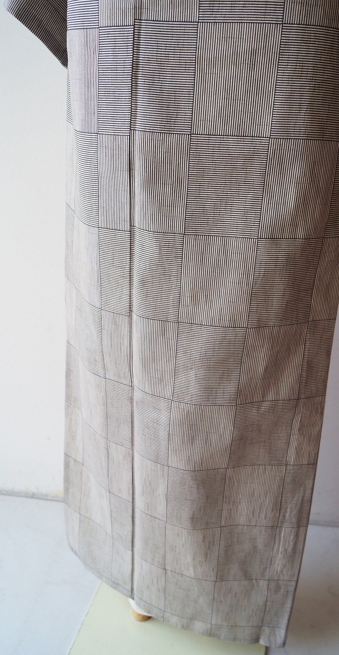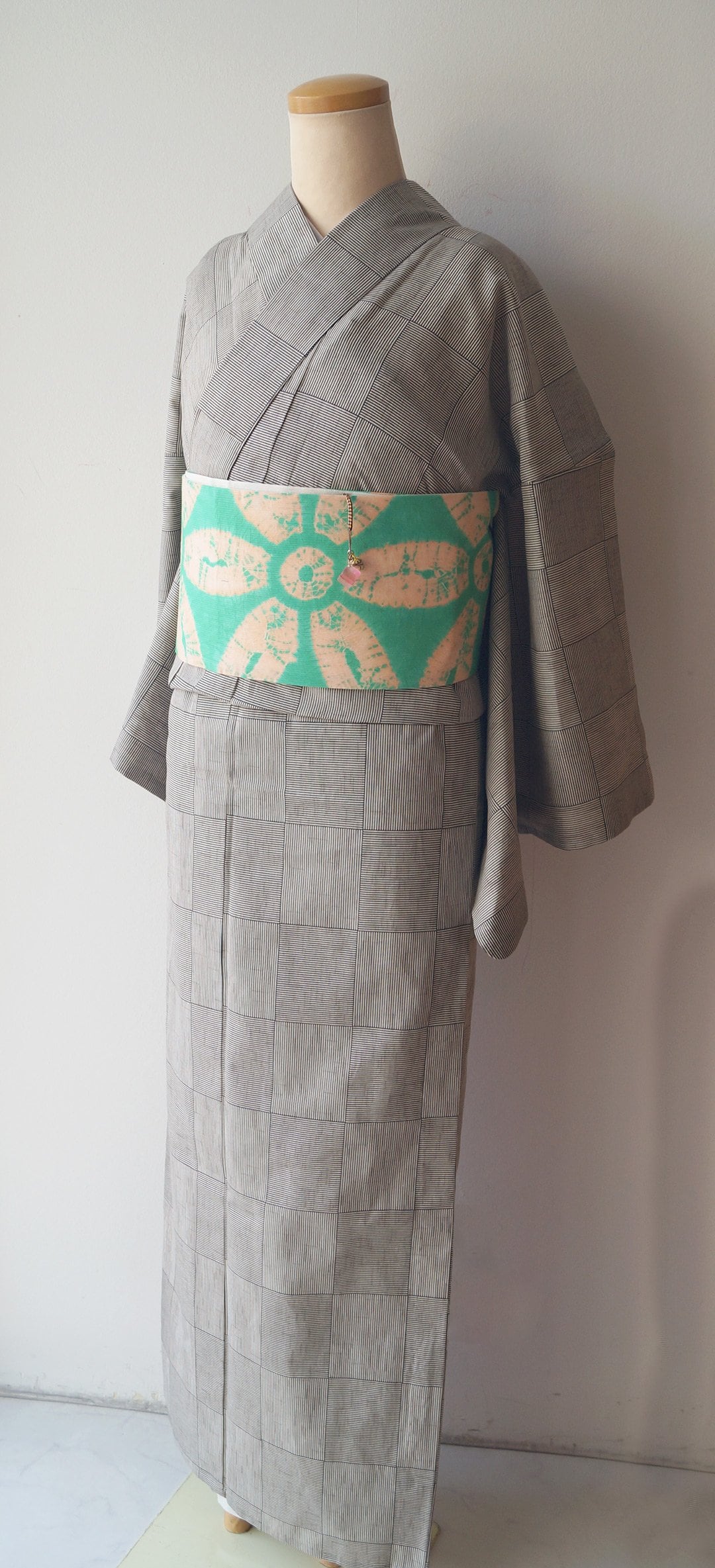 【浴衣】絹鼠色×黒紅色 変わり市松柄 浴衣