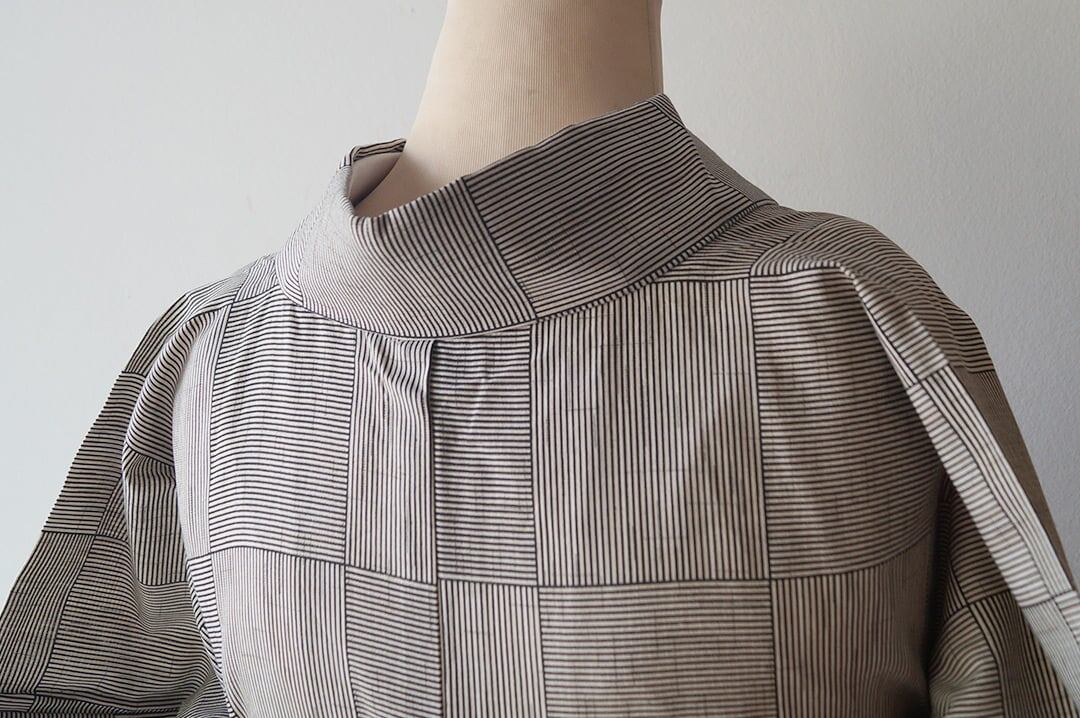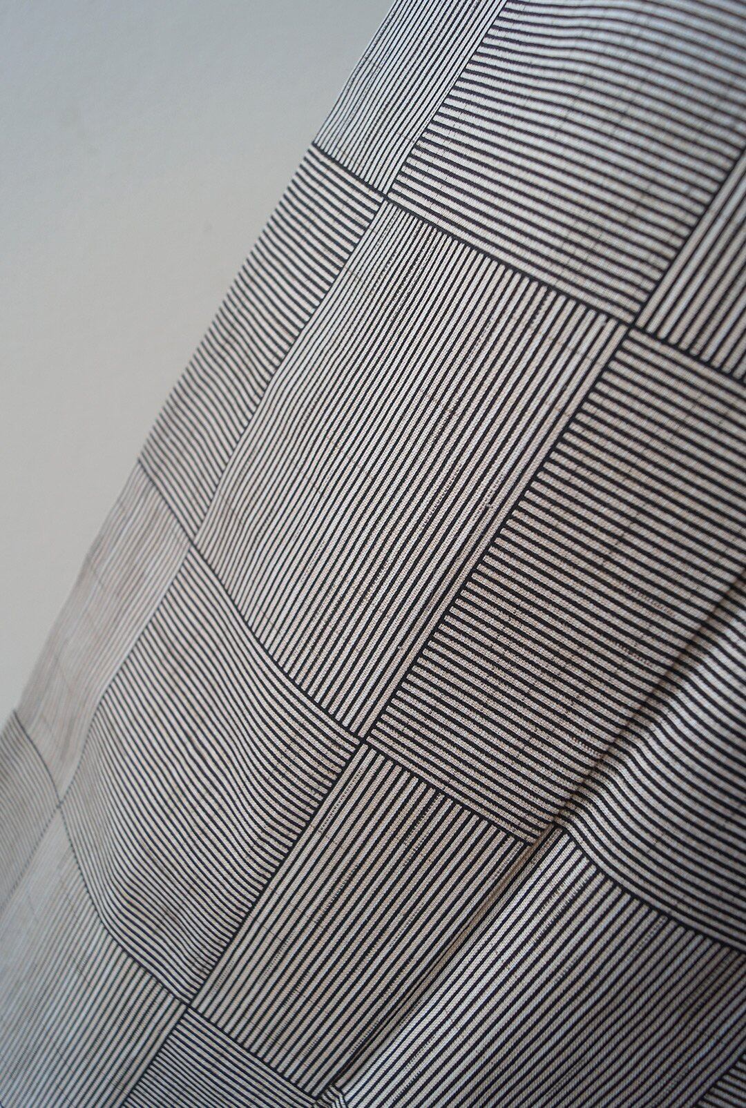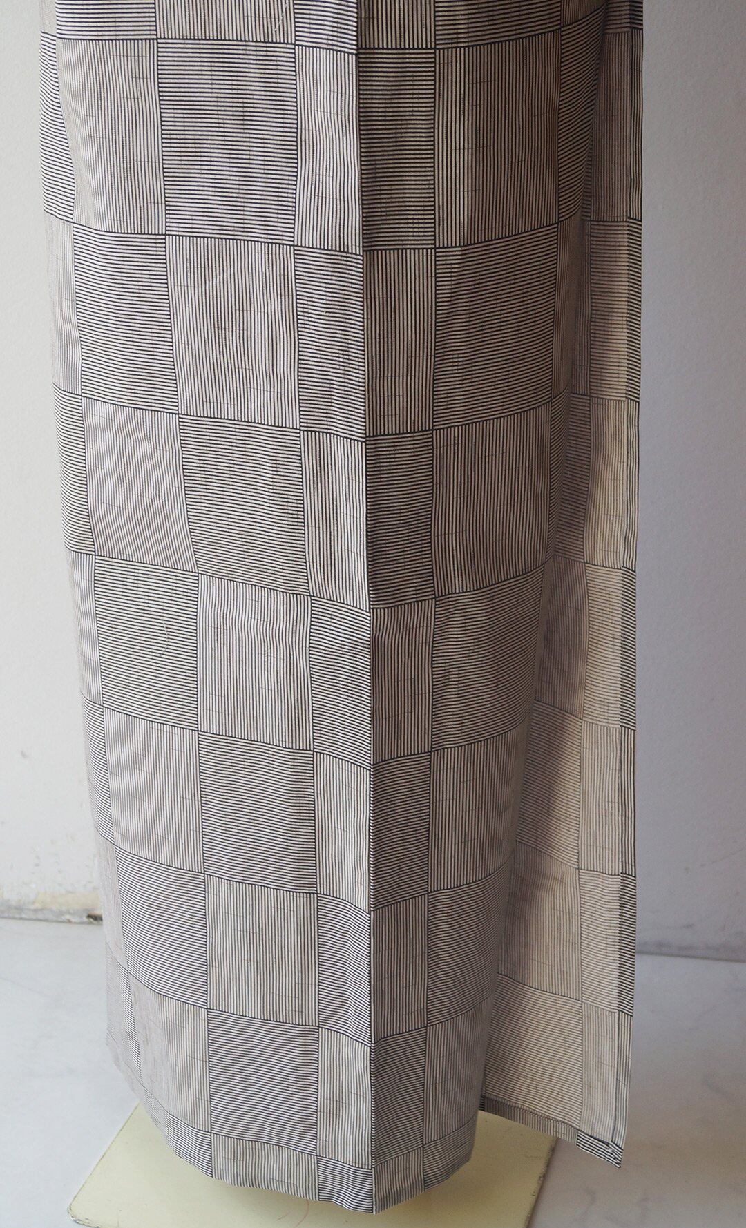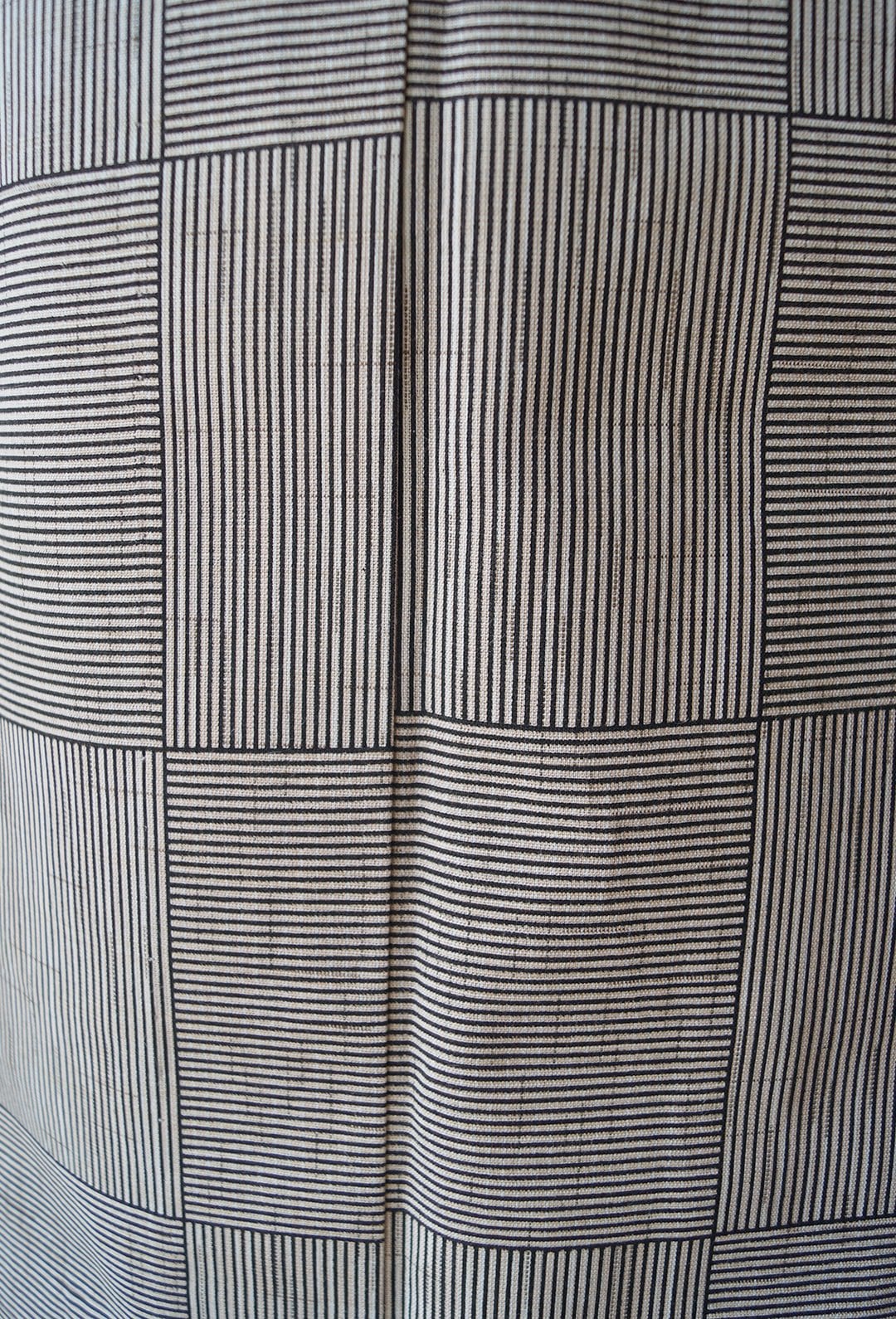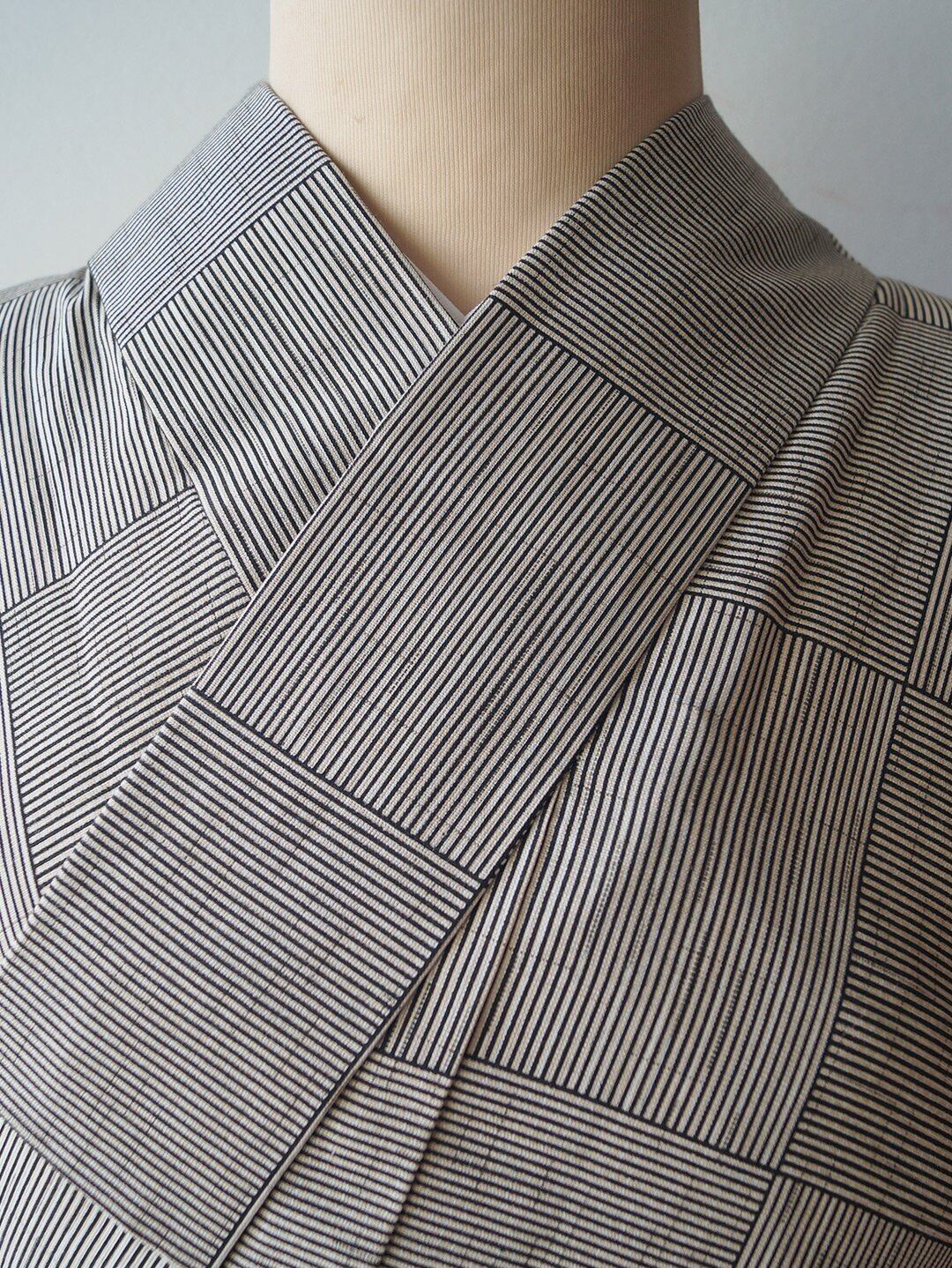 【浴衣】絹鼠色×黒紅色 変わり市松柄 浴衣