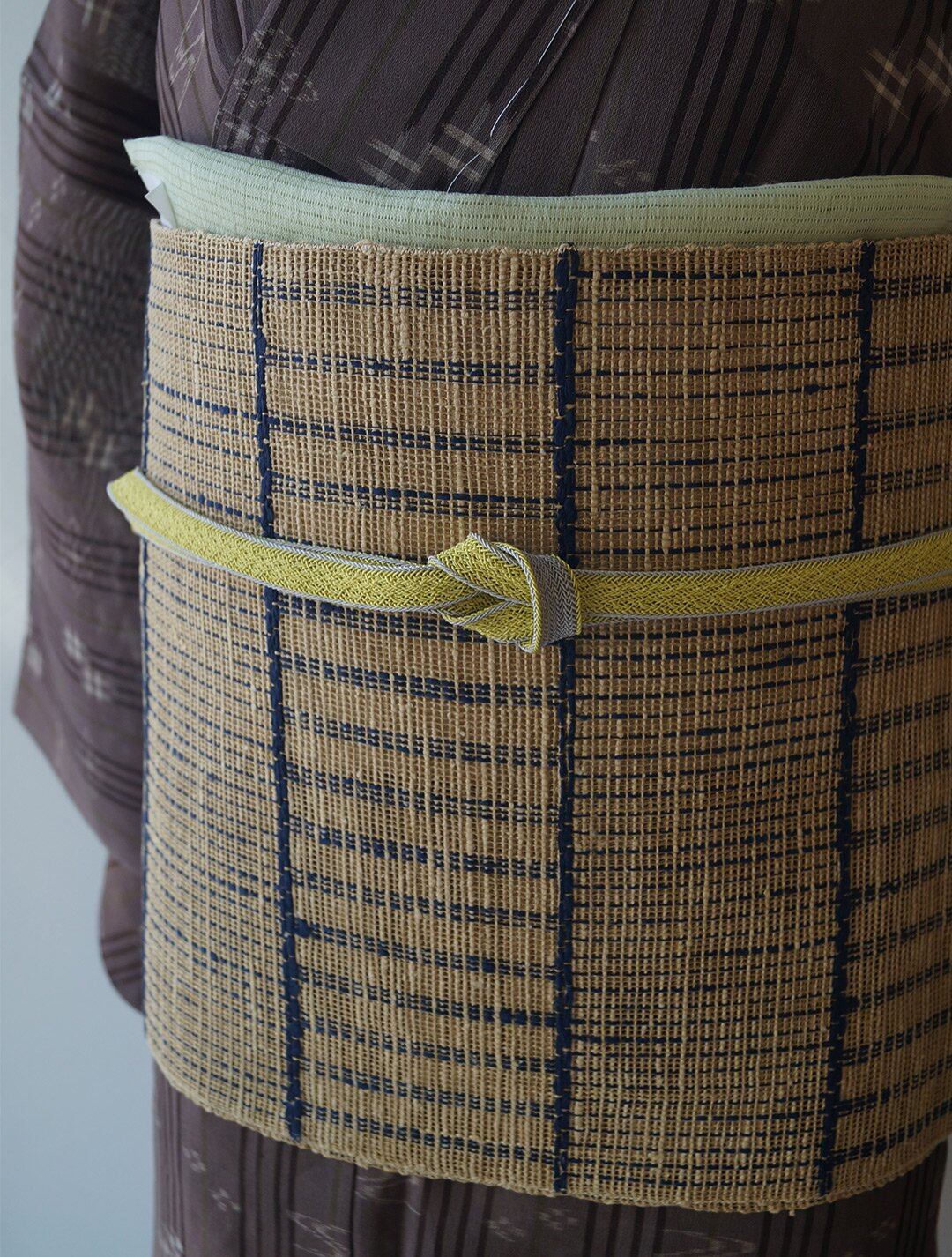 【夏なごや帯】自然布 飴色 横段 羅なごや帯