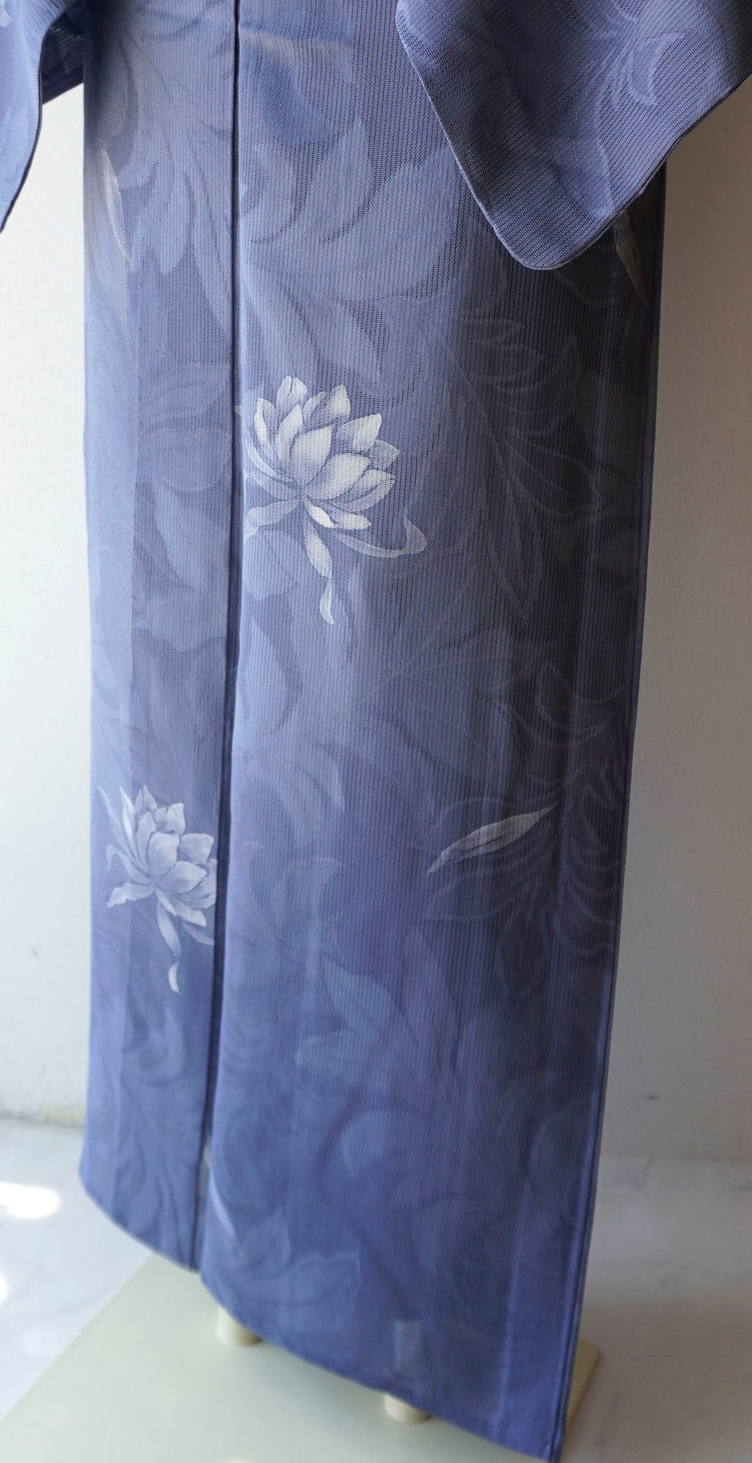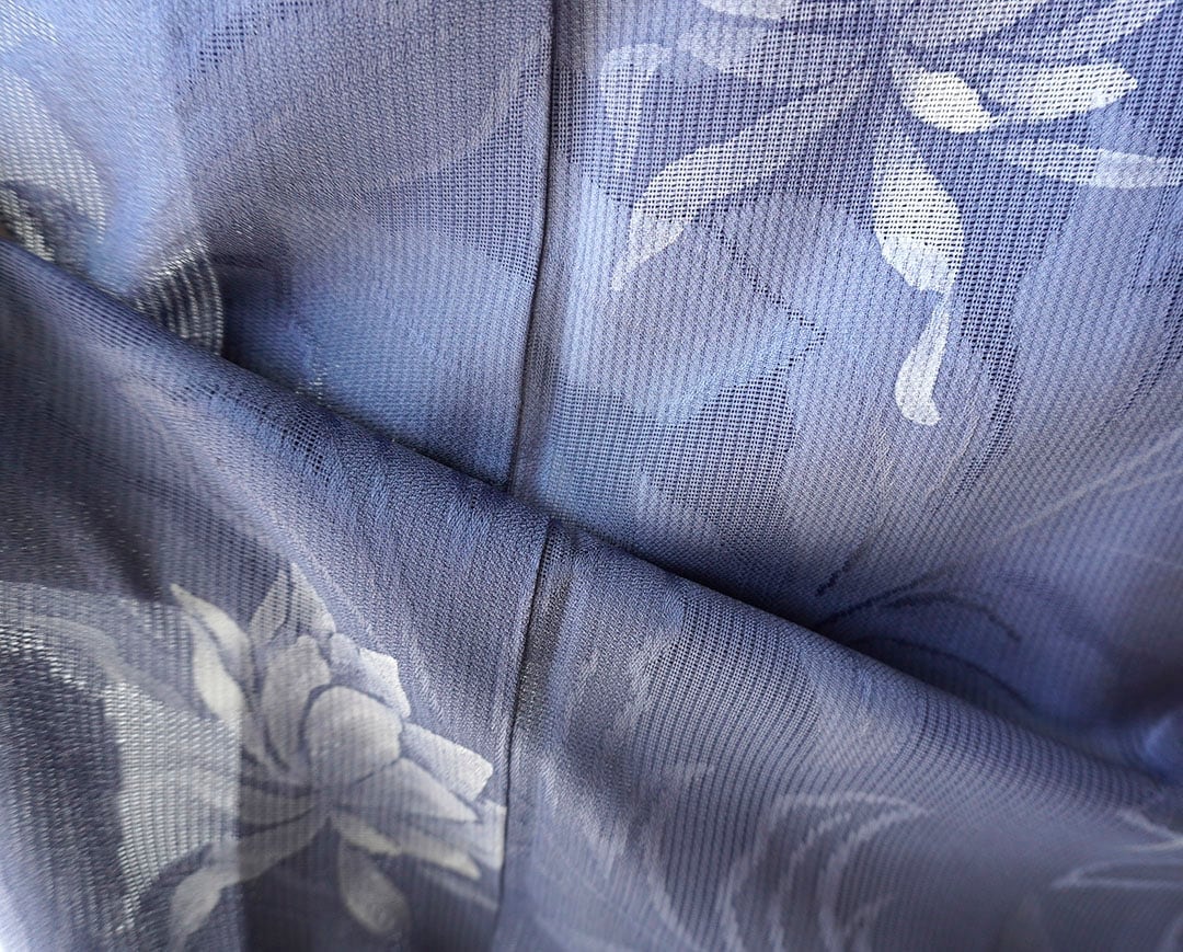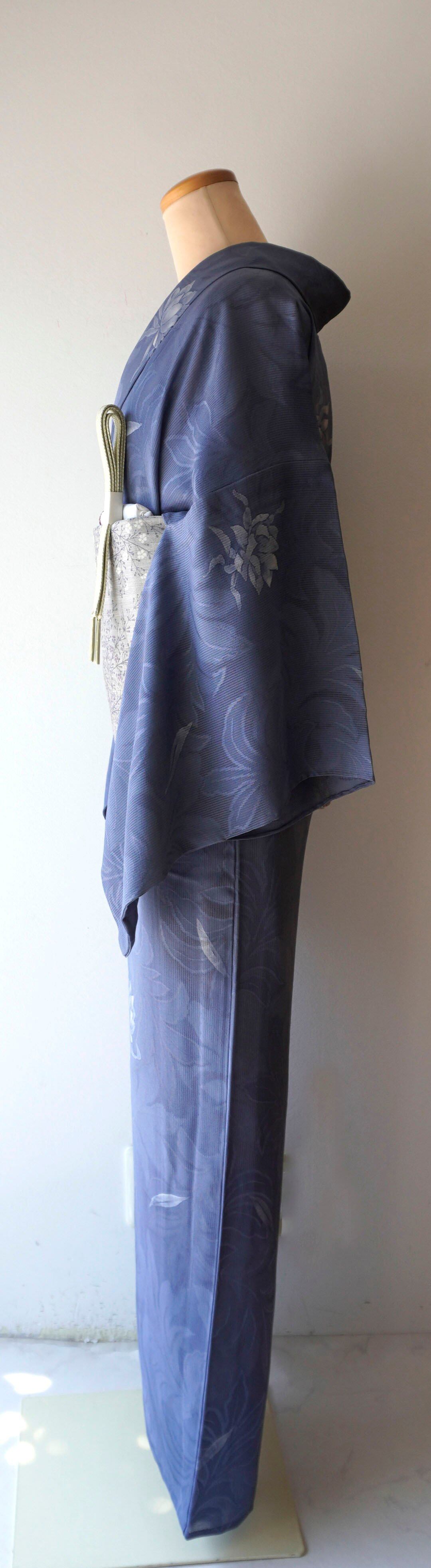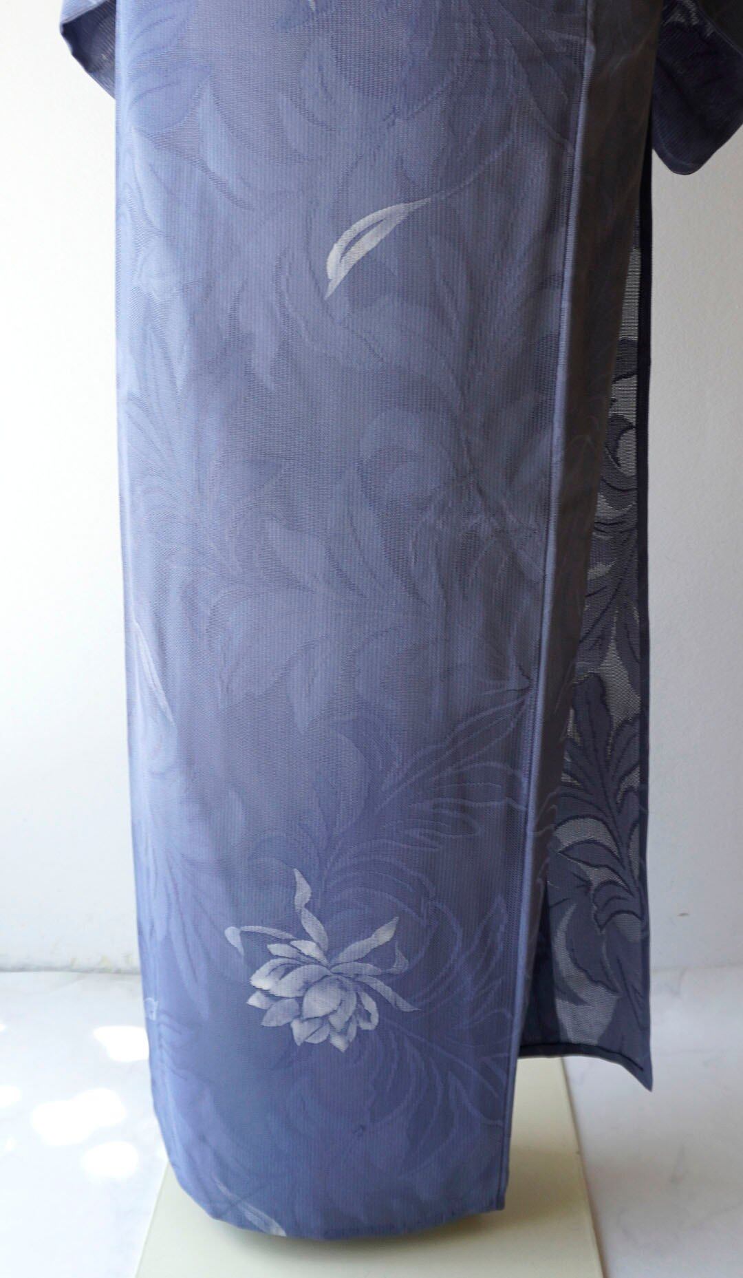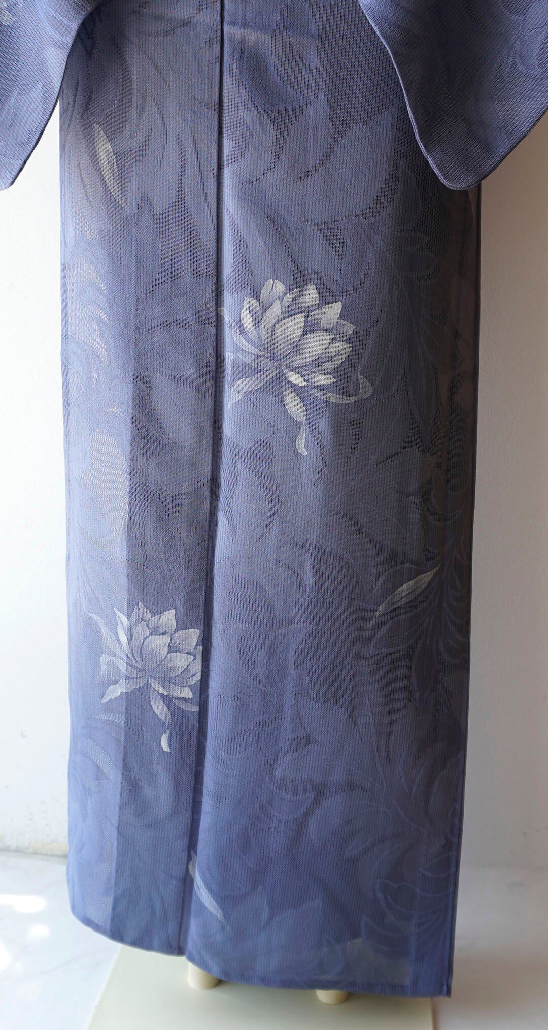 【夏・紗】紺鼠色 抽象植物文文 紋紗小紋