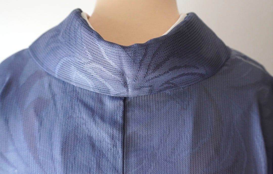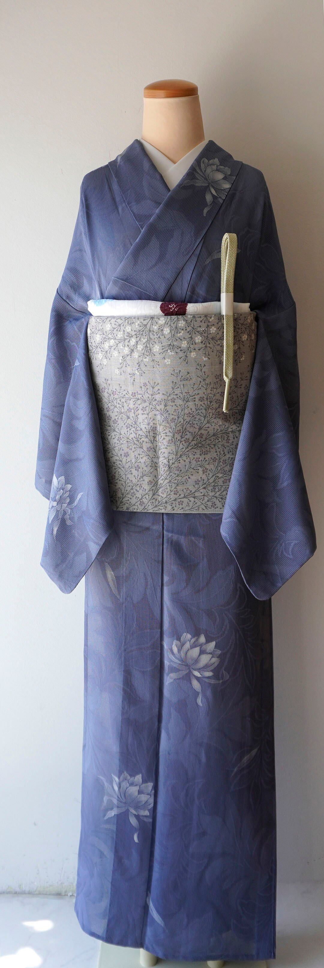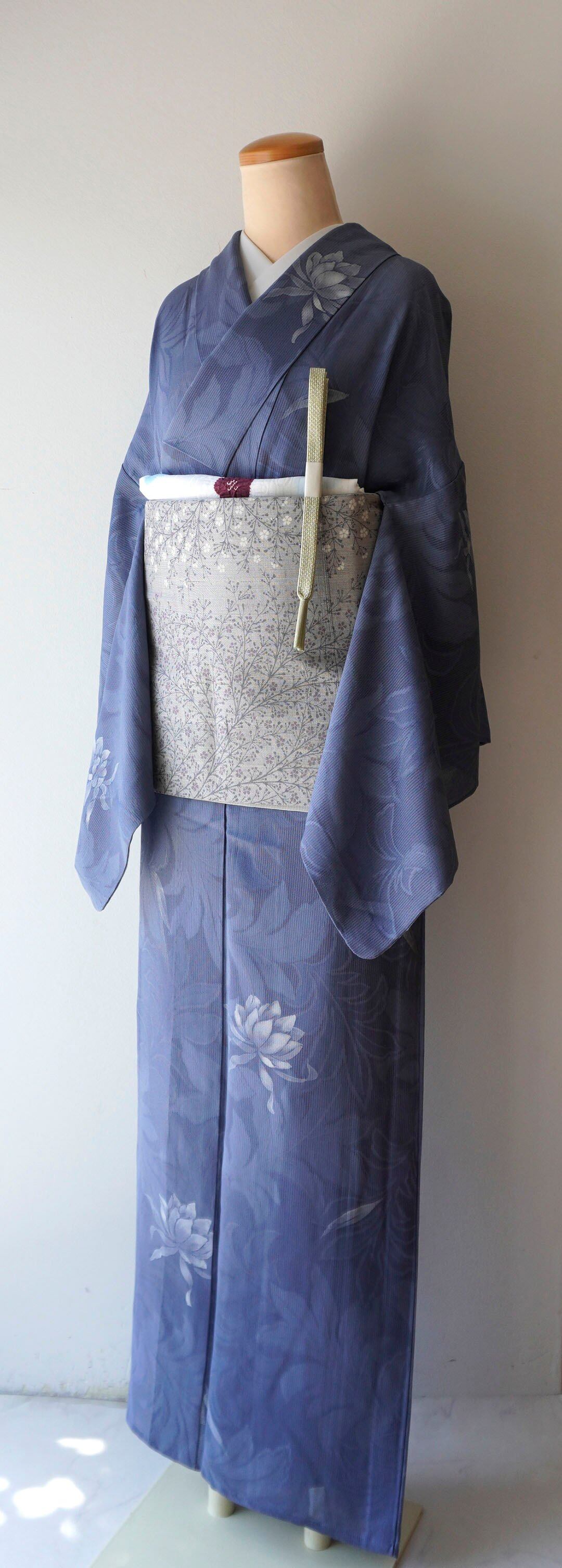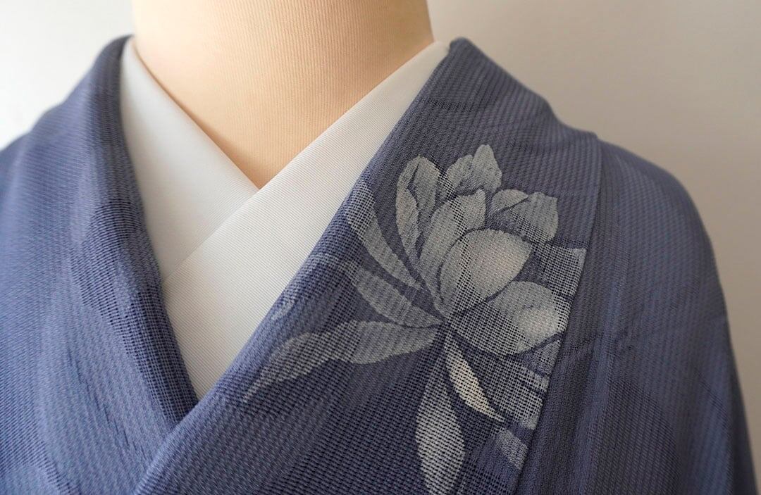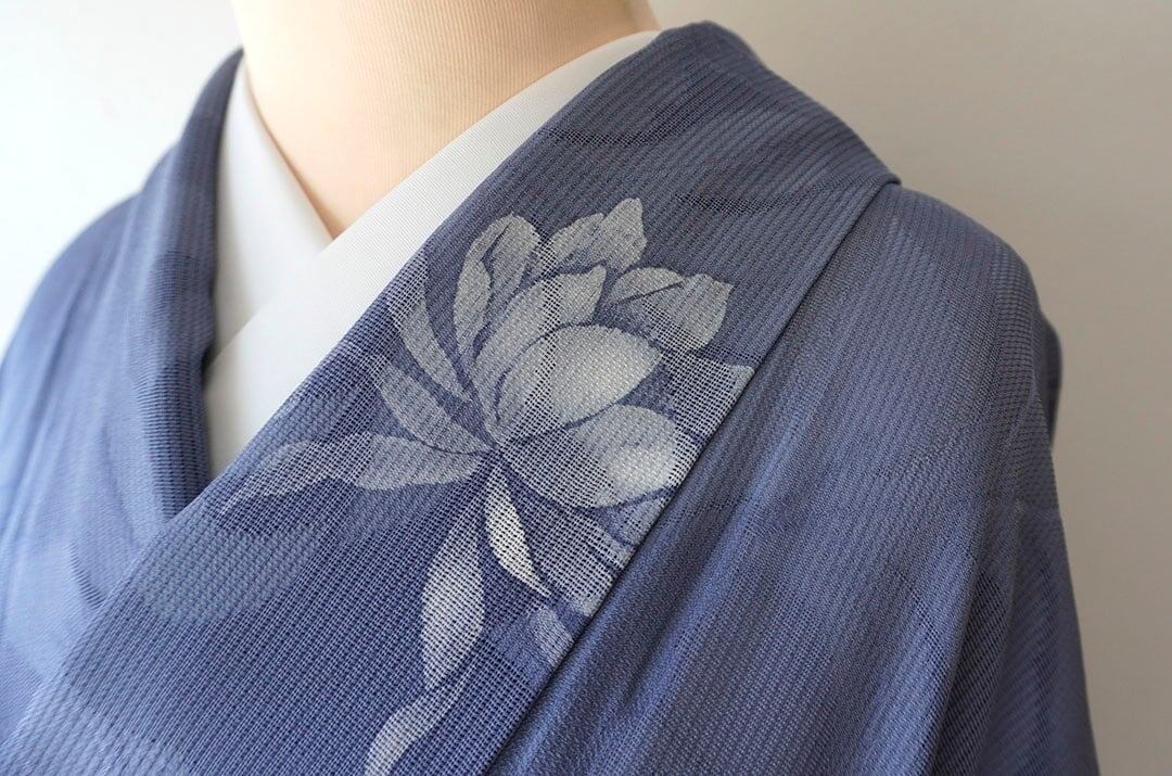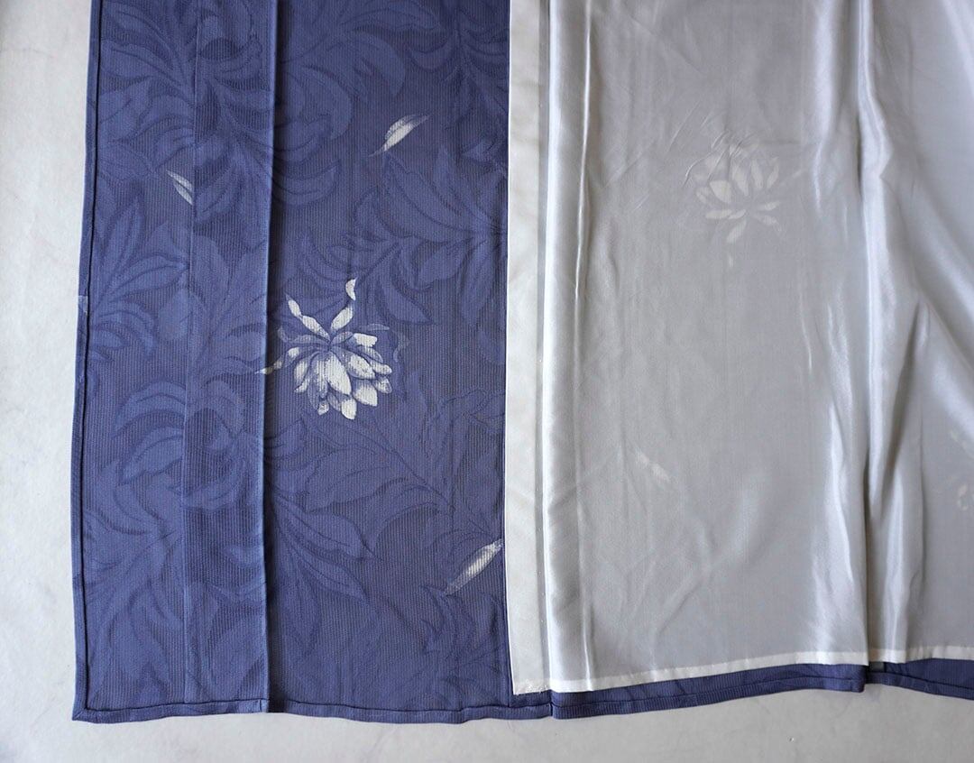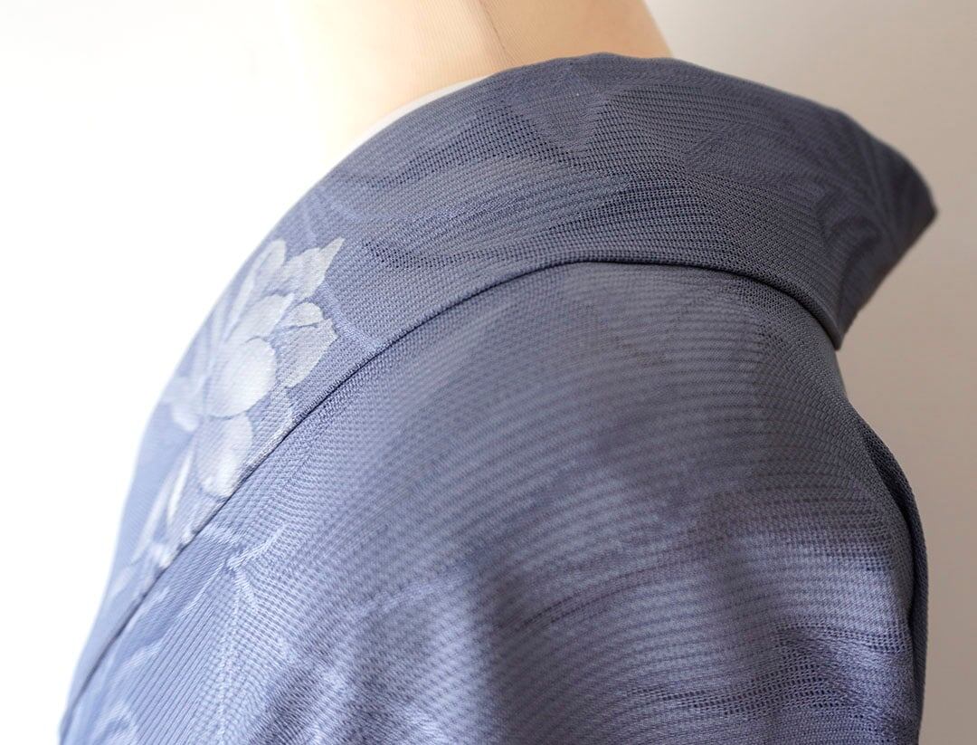 【夏・紗】紺鼠色 抽象植物文文 紋紗小紋