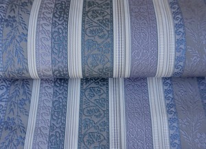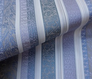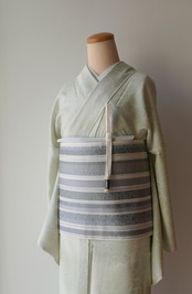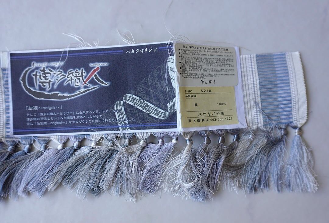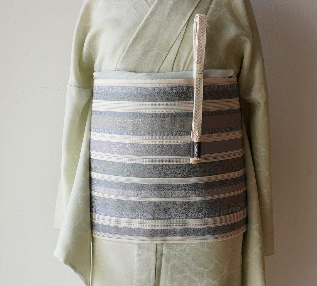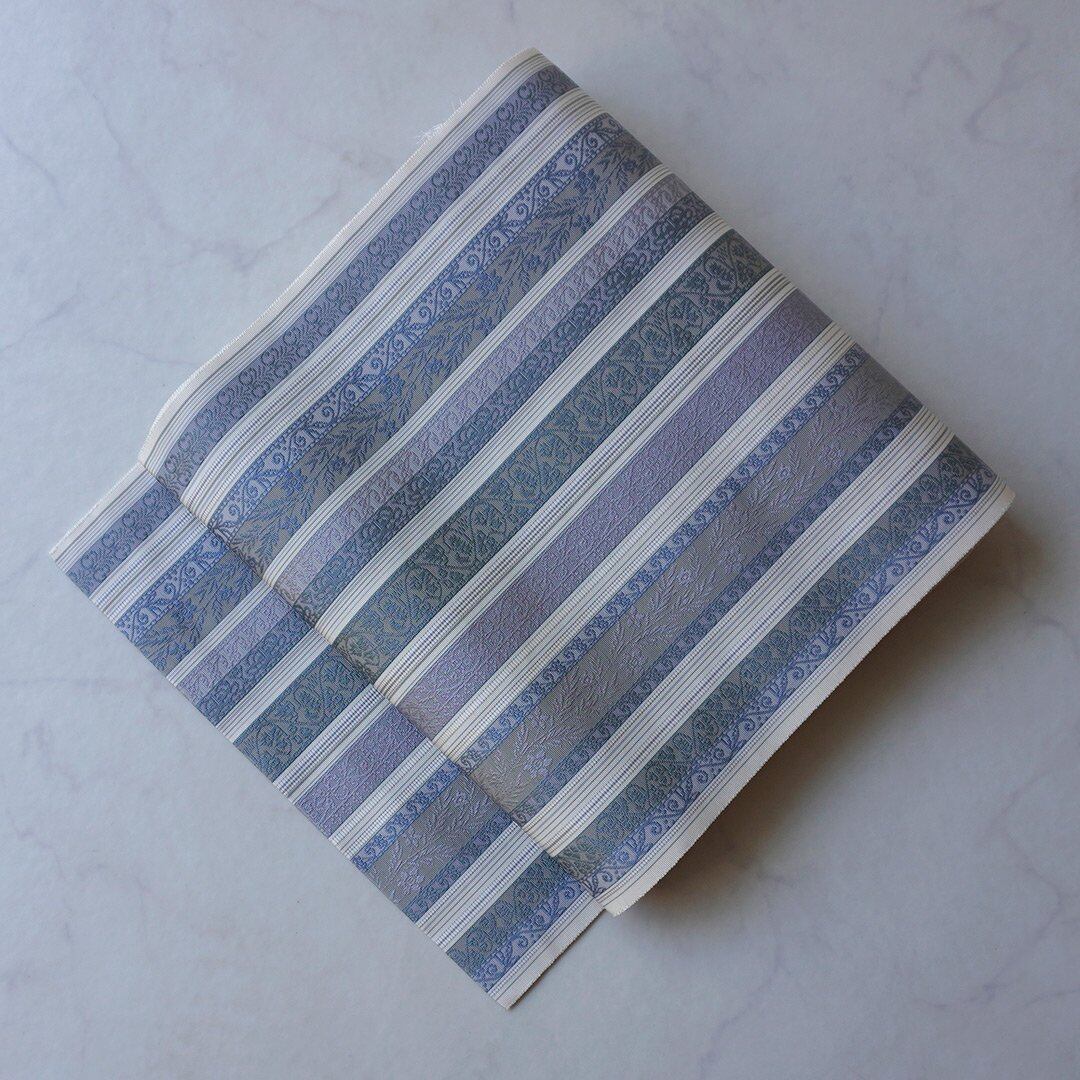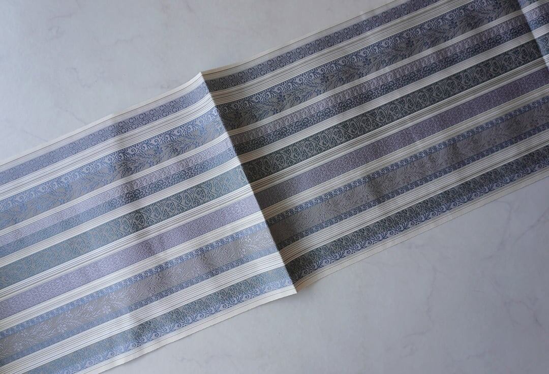 【なごや帯】黒木織物 生成り色地 花唐草縞文 博多八寸なごや帯