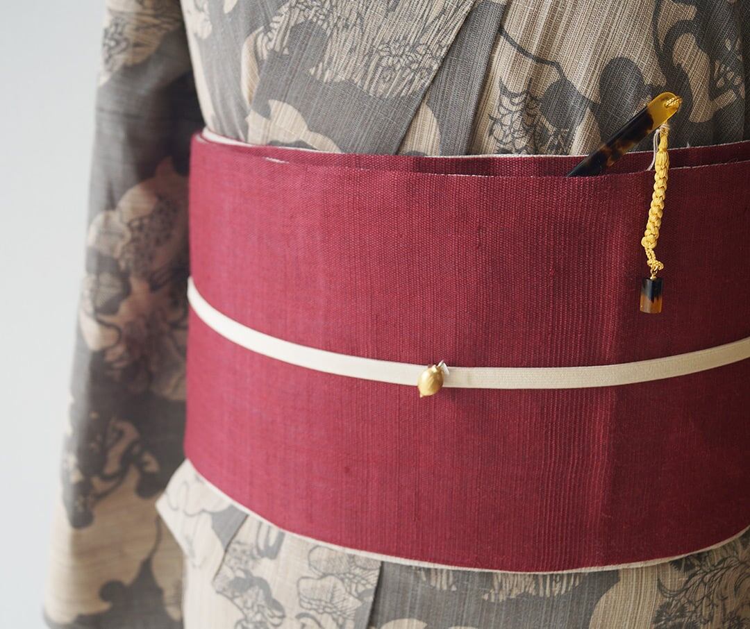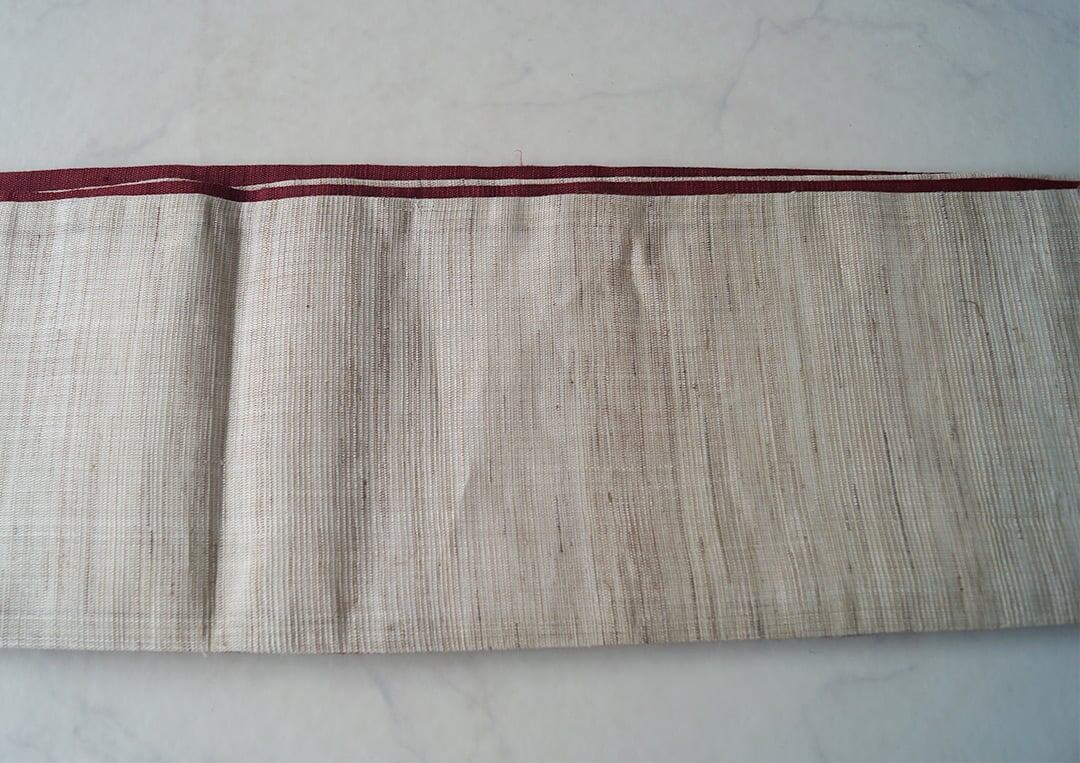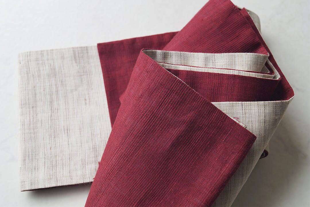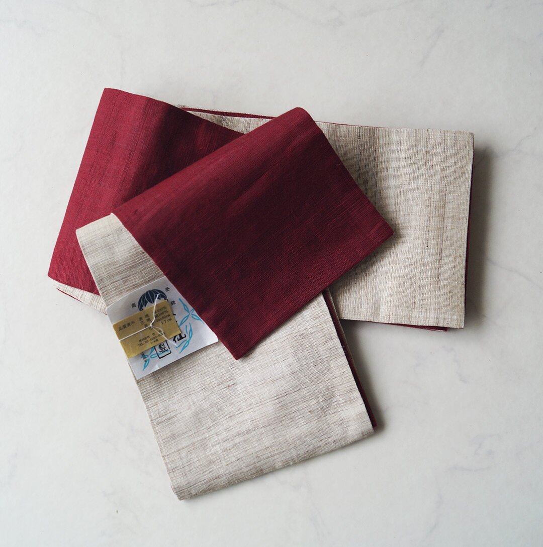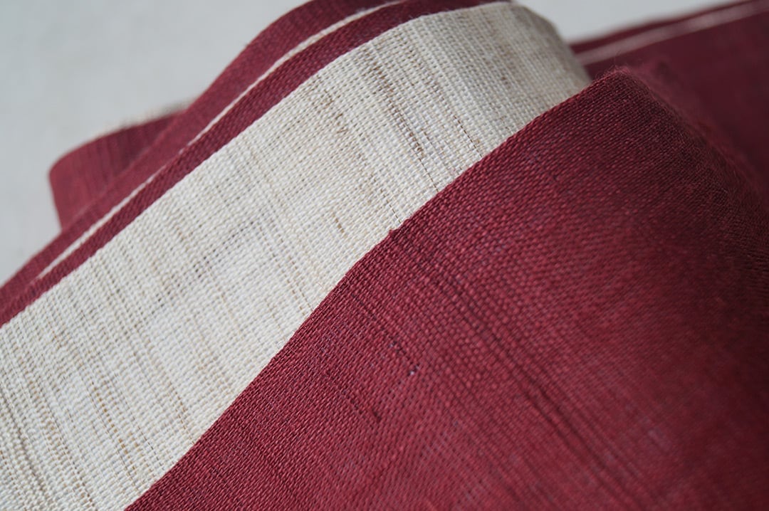 【竺仙・半幅帯】生成色×濃紅色 麻半幅帯