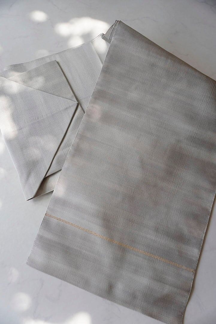 【なごや帯】薄梅鼠色 無地 綴れなごや帯