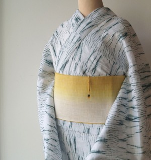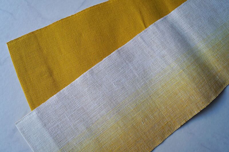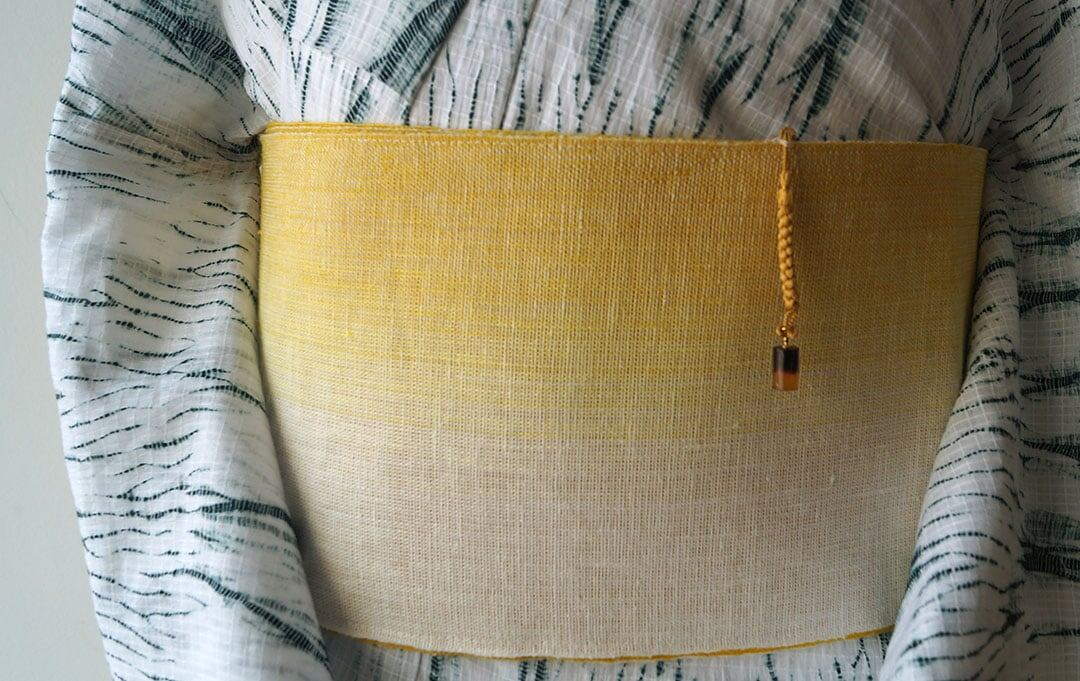 【三勝・半幅帯】染め麻 黄金色ぼかし 半幅帯