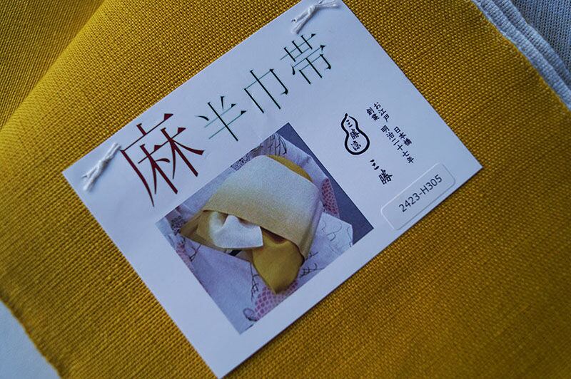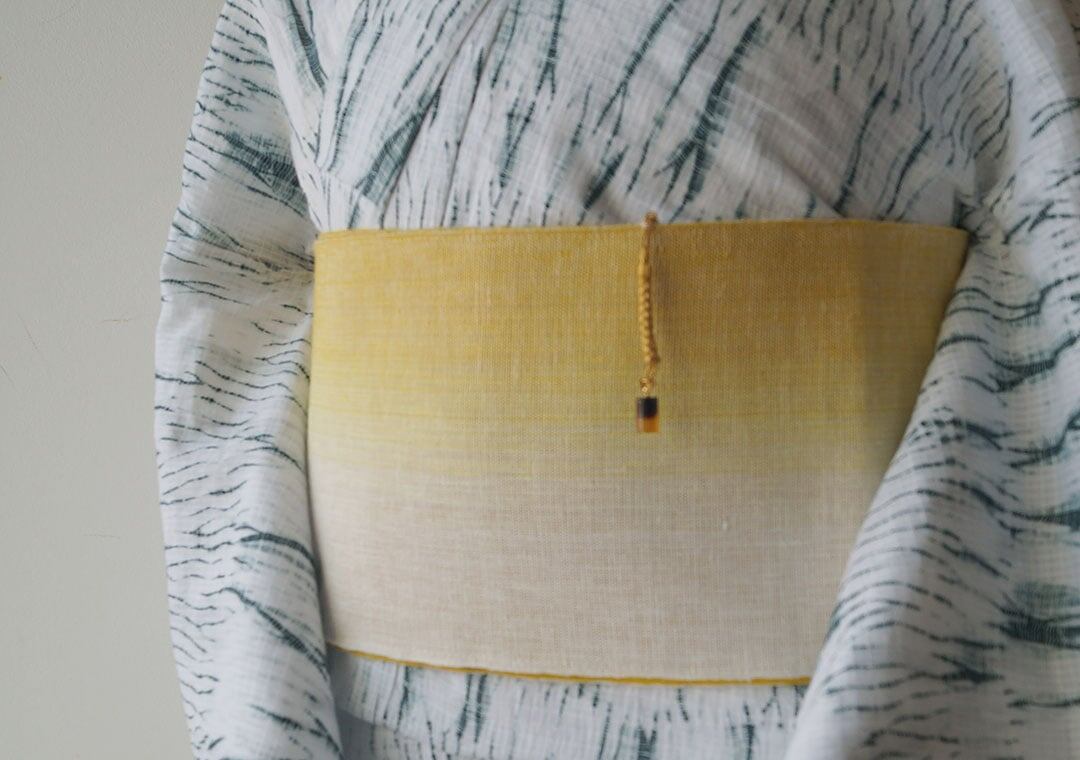 三勝さんの染め麻の半幅帯です。