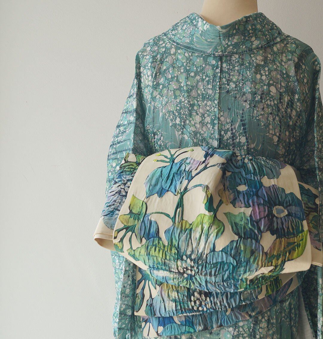 描かれた、ふくれ織りの袋帯です。