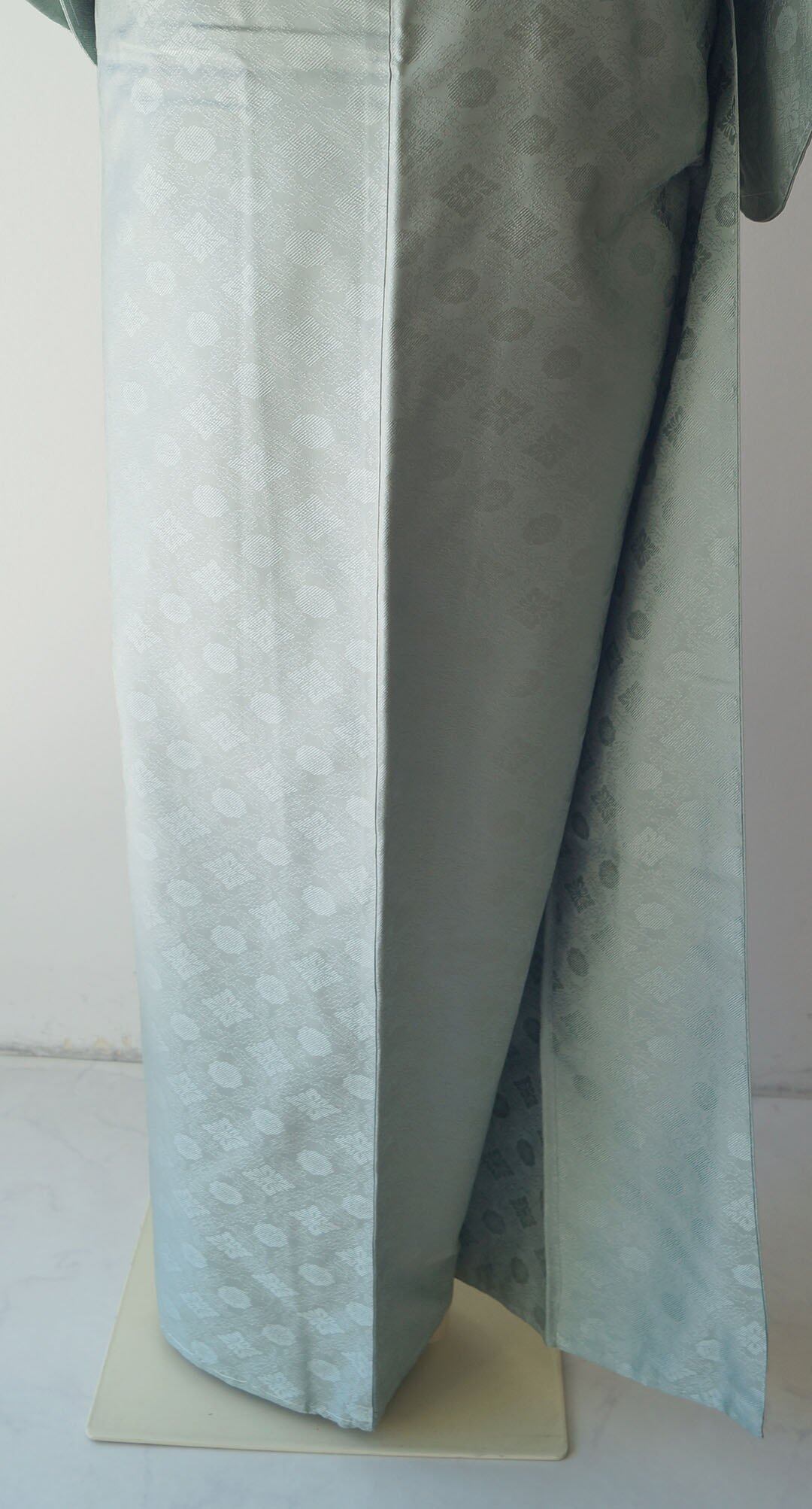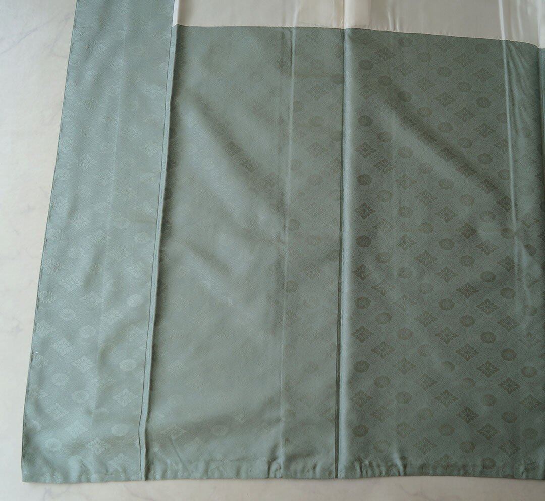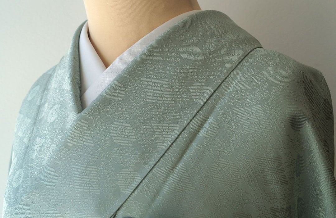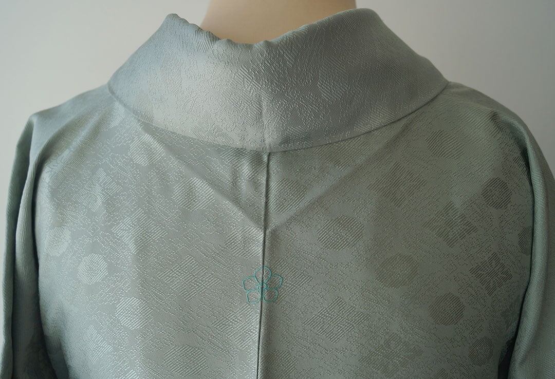 【袷】濃千草鼠色 花菱文 一つ紋 お召し