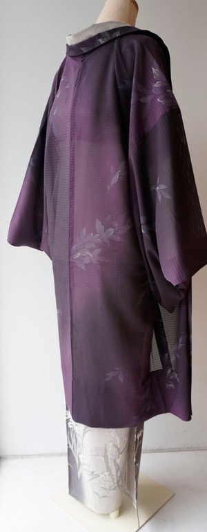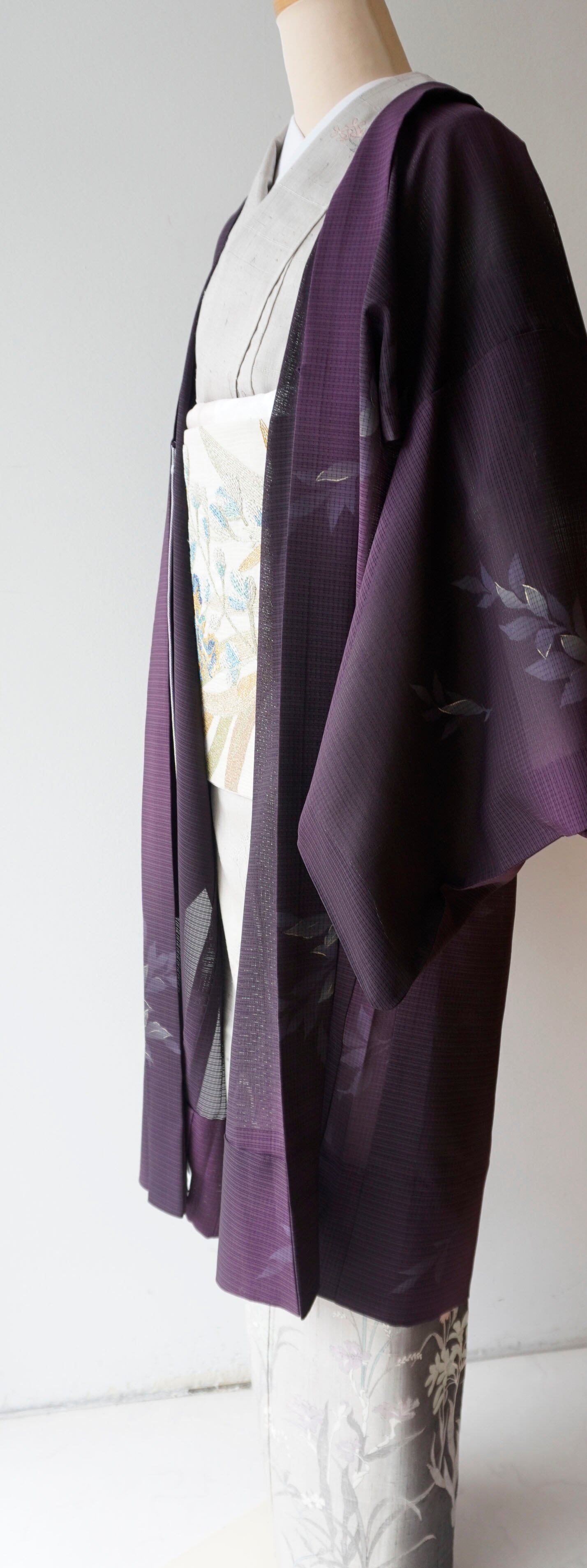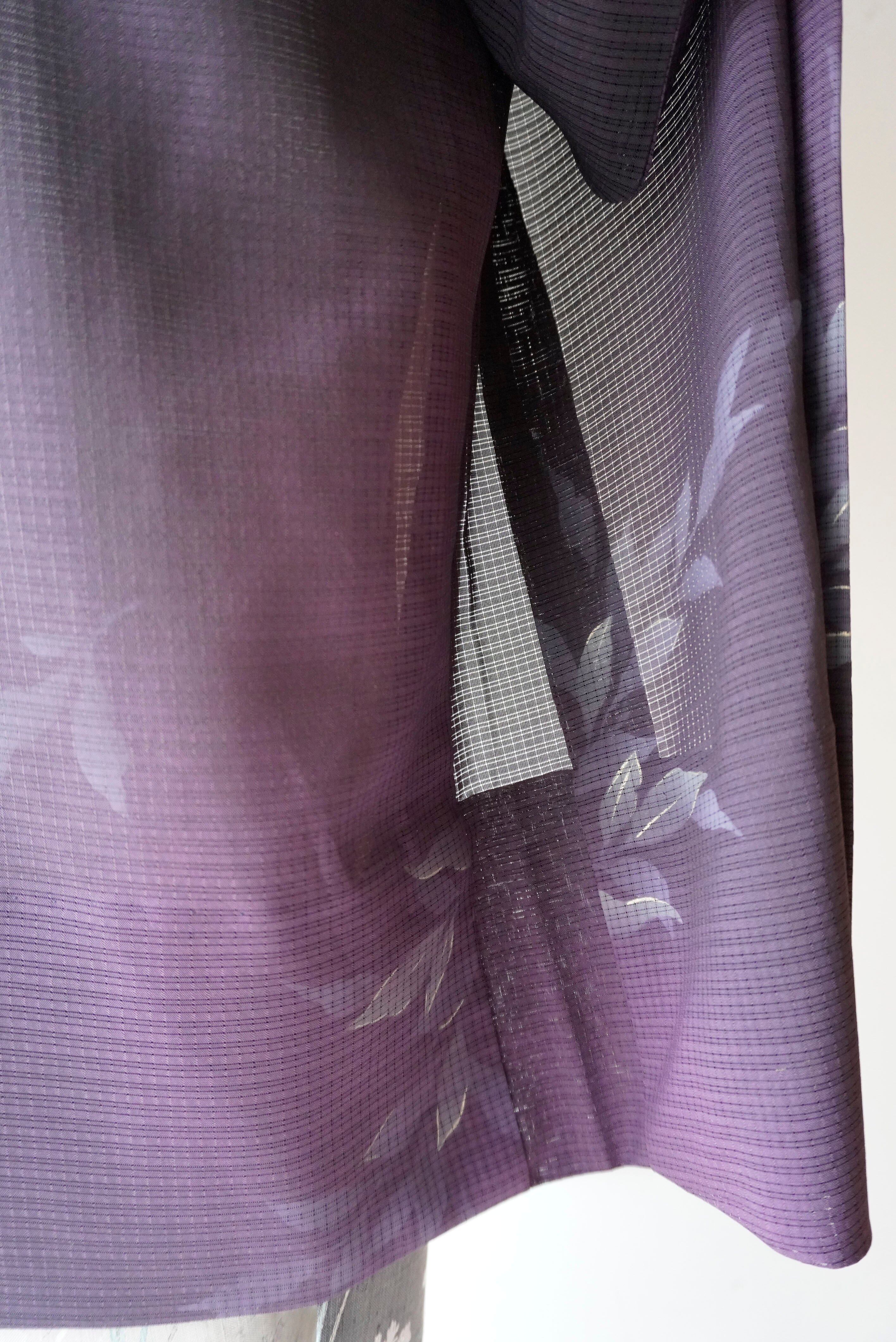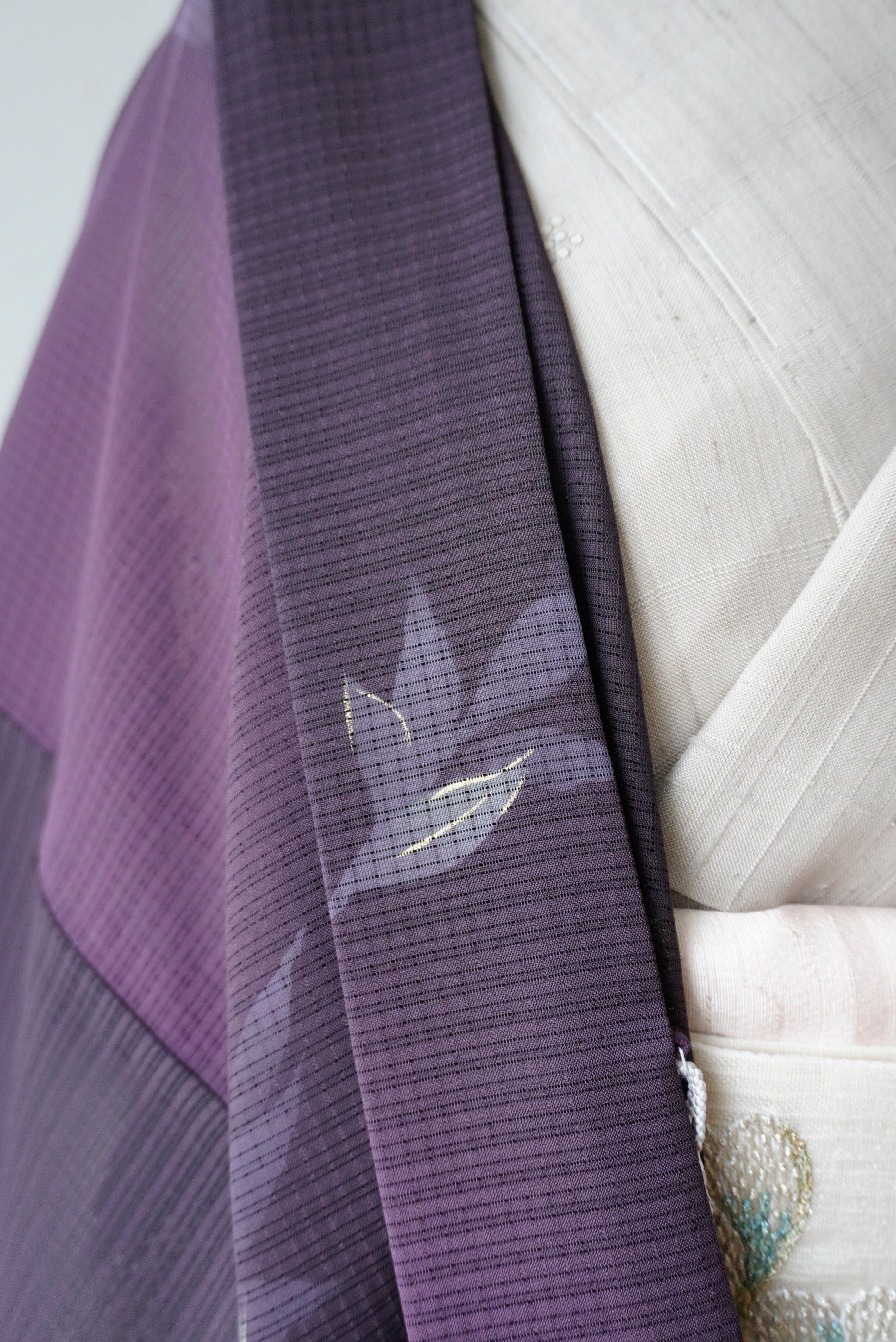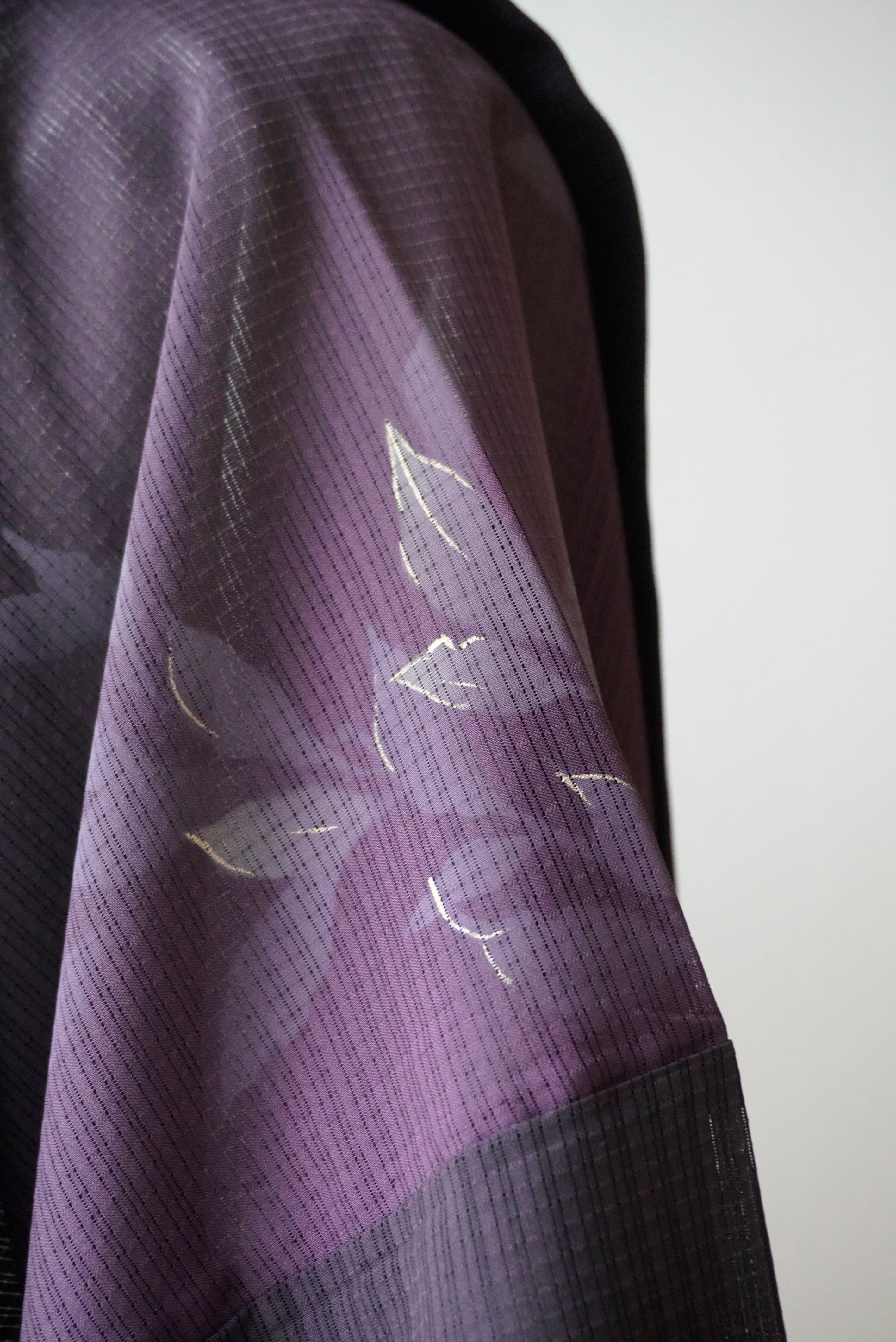 【絽羽織】紫濃淡暈かし 葉文変わり絽羽織 ガード加工済