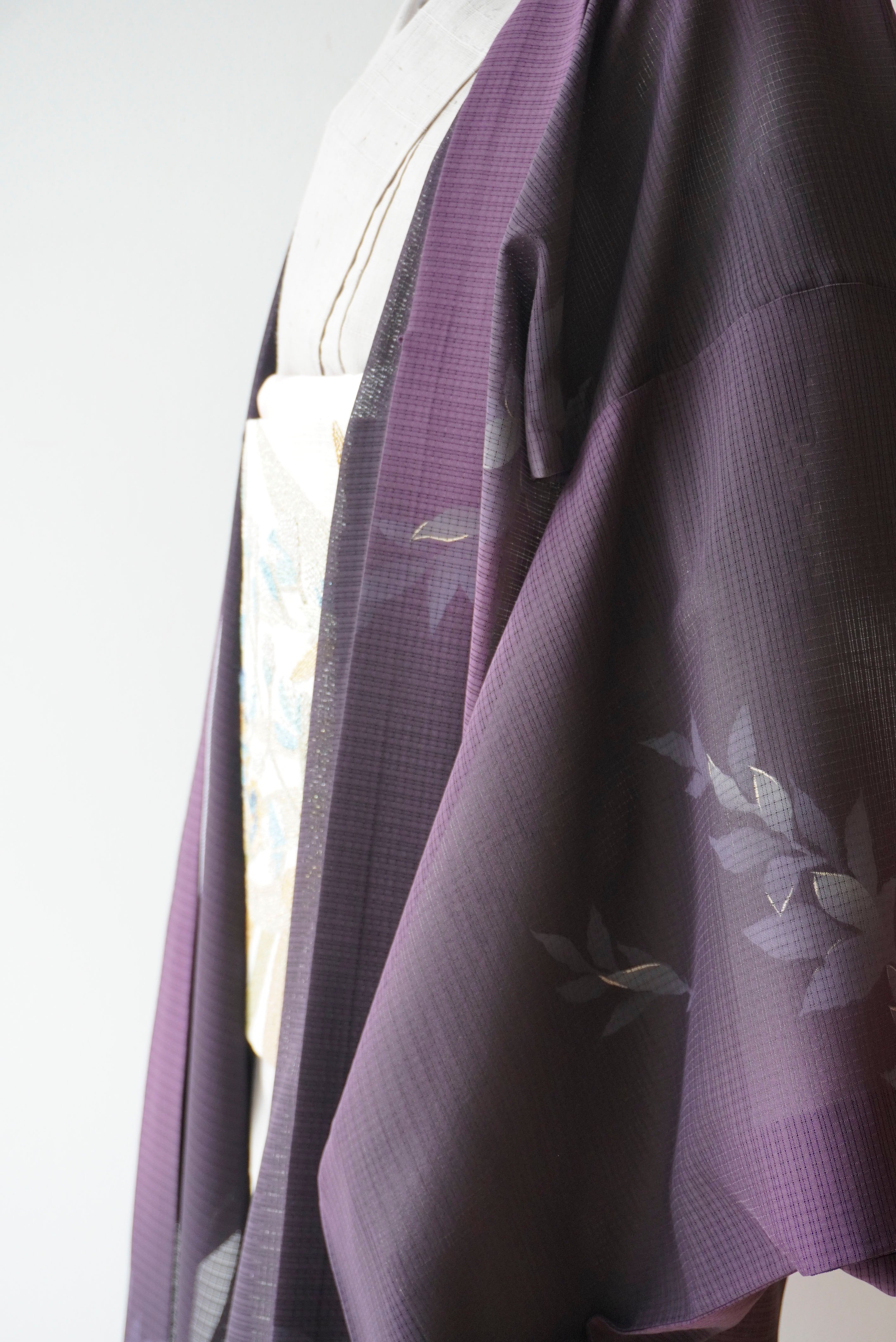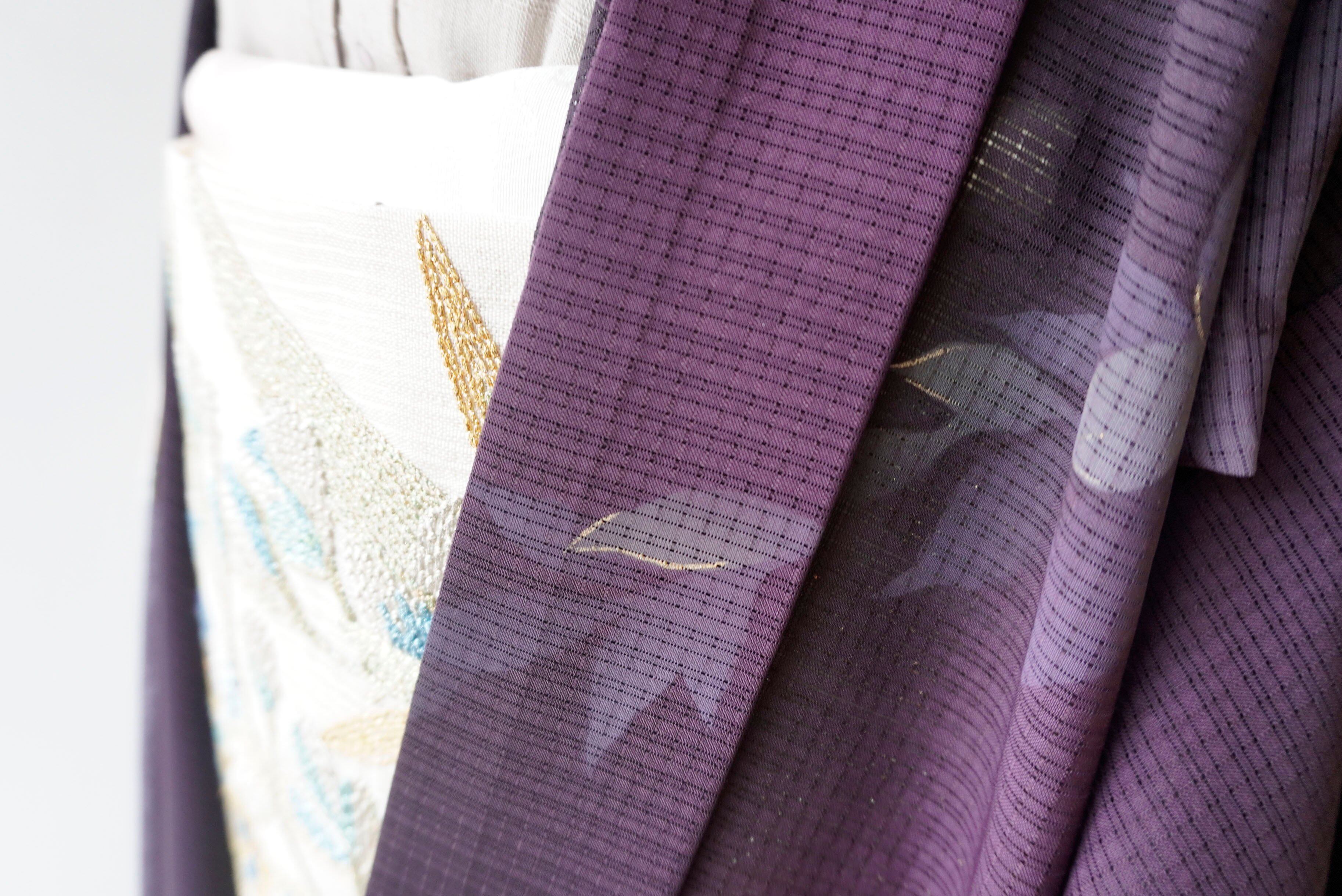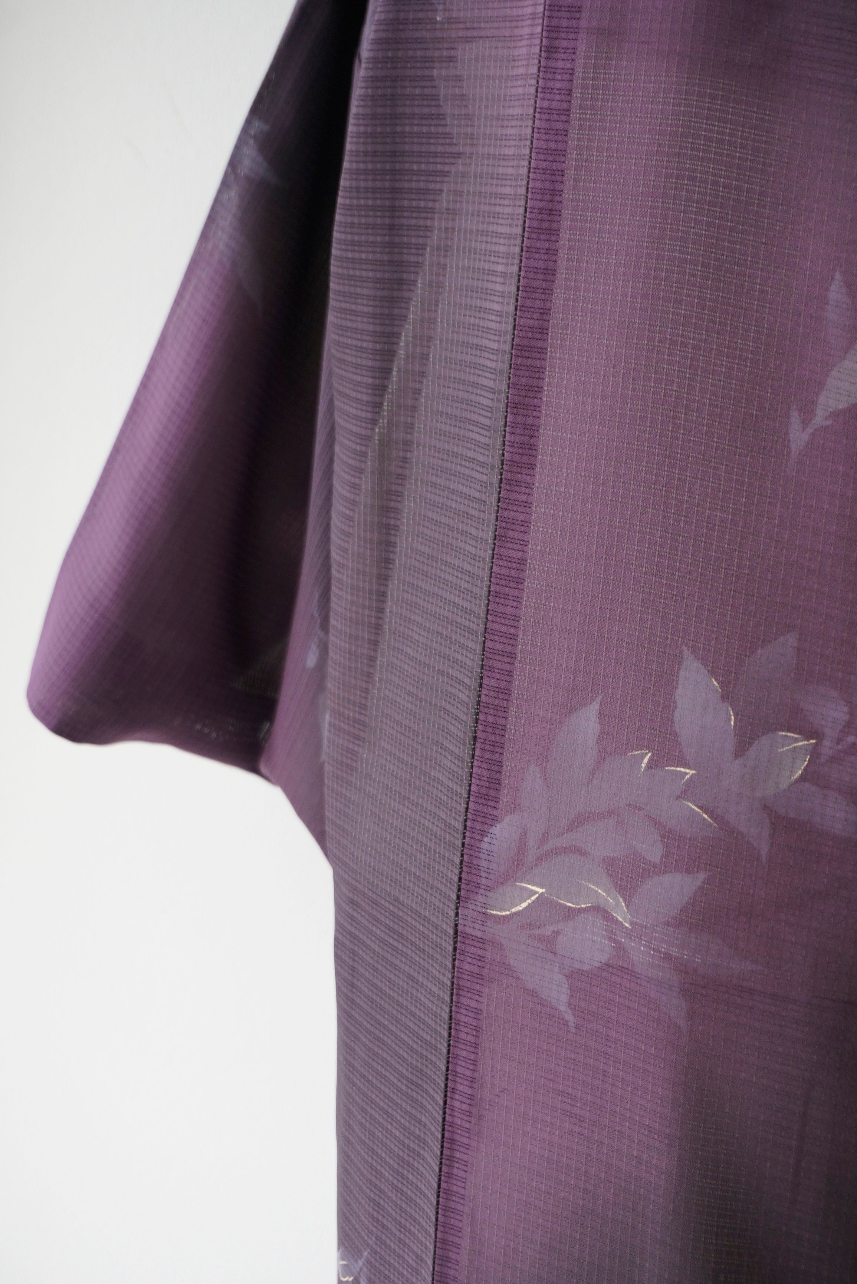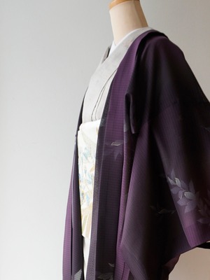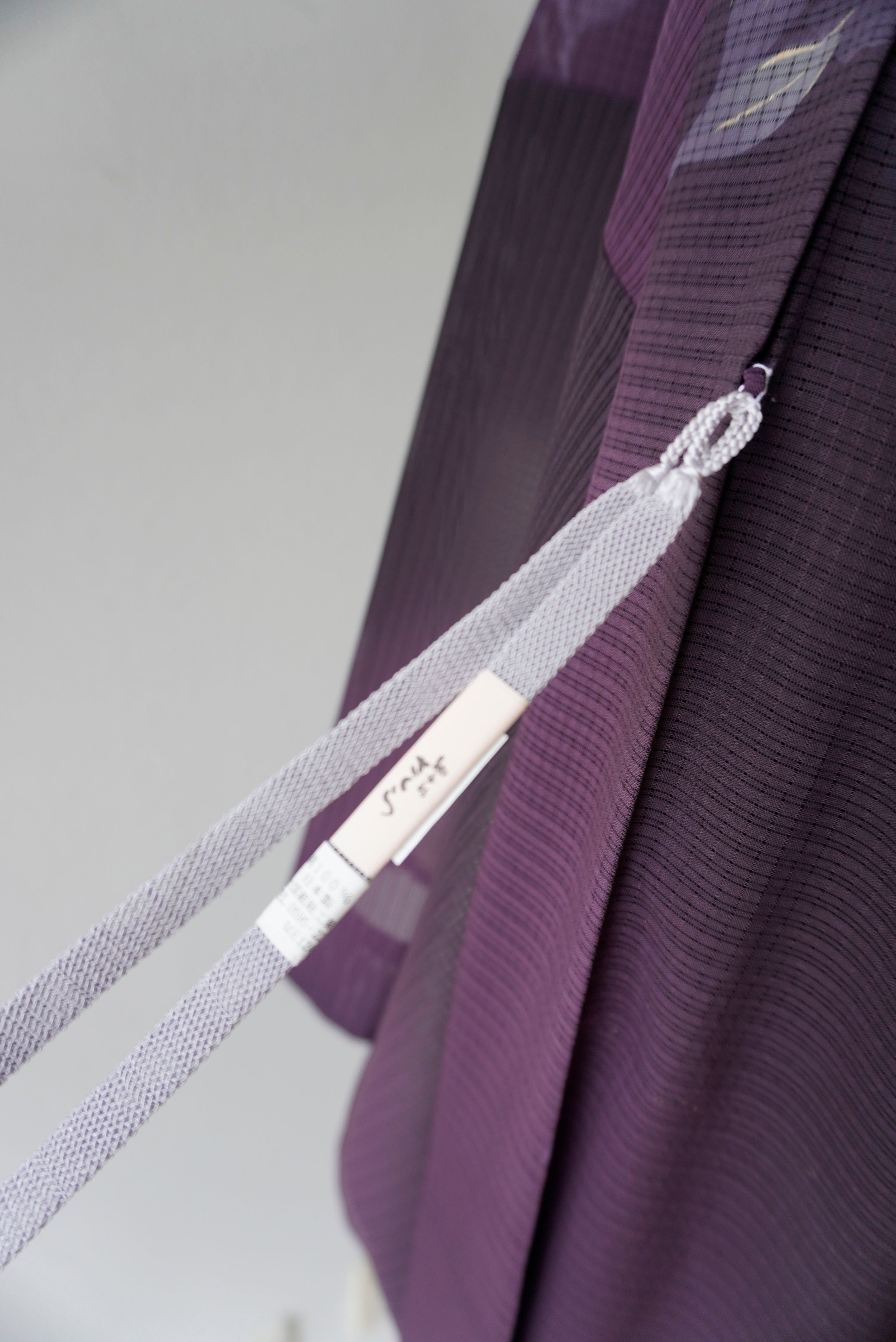 【絽羽織】紫濃淡暈かし 葉文変わり絽羽織 ガード加工済