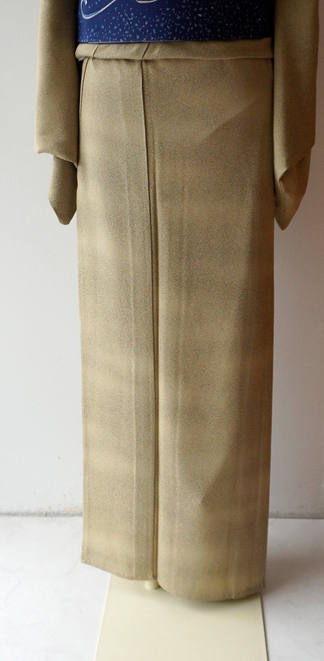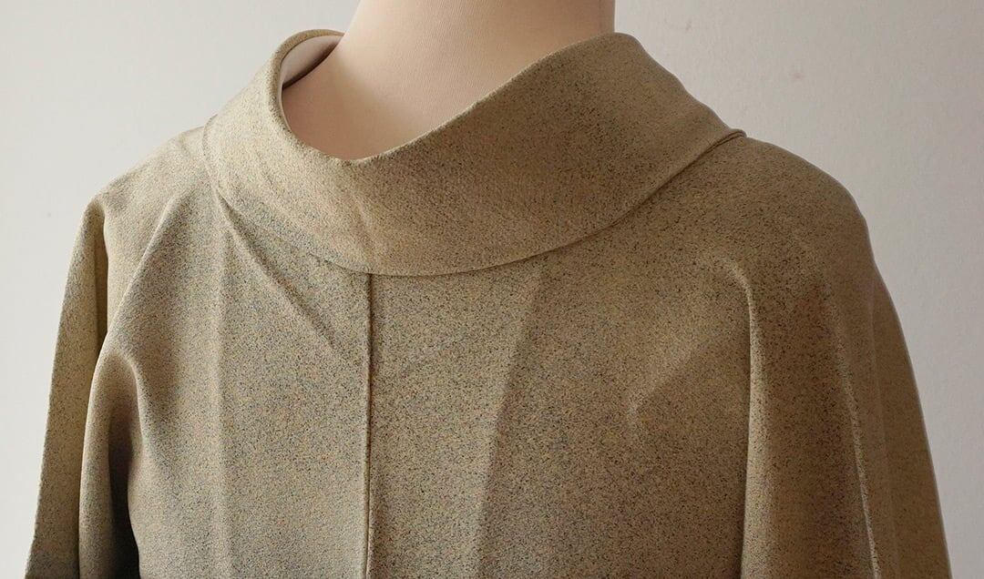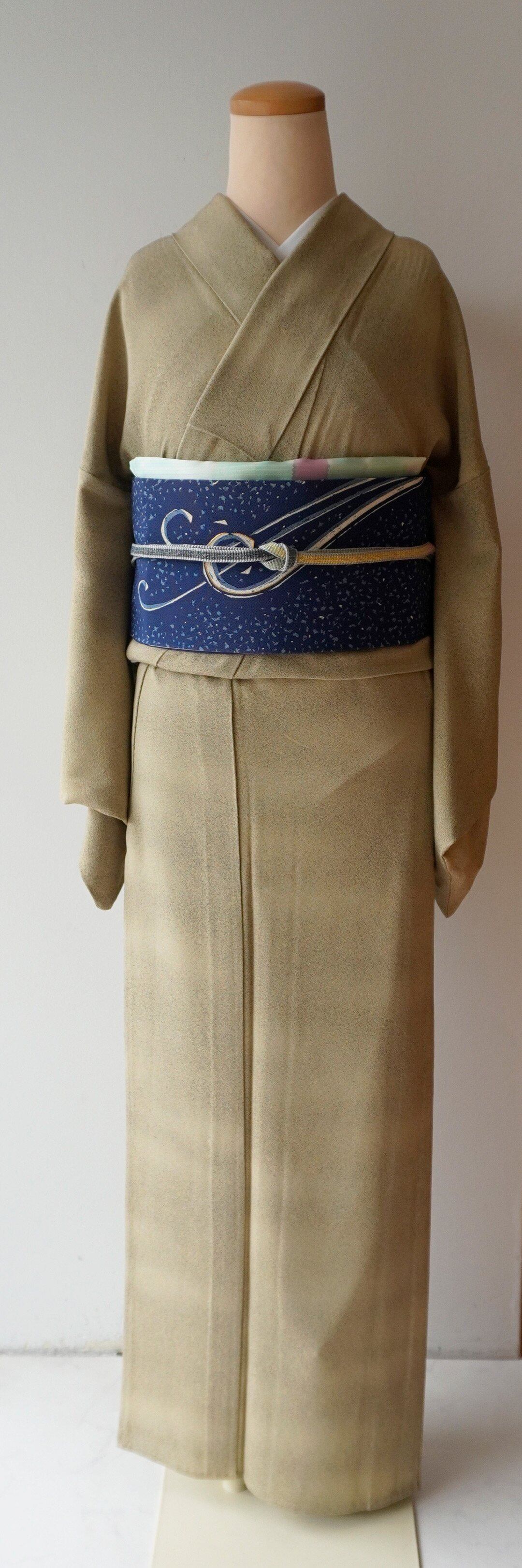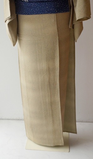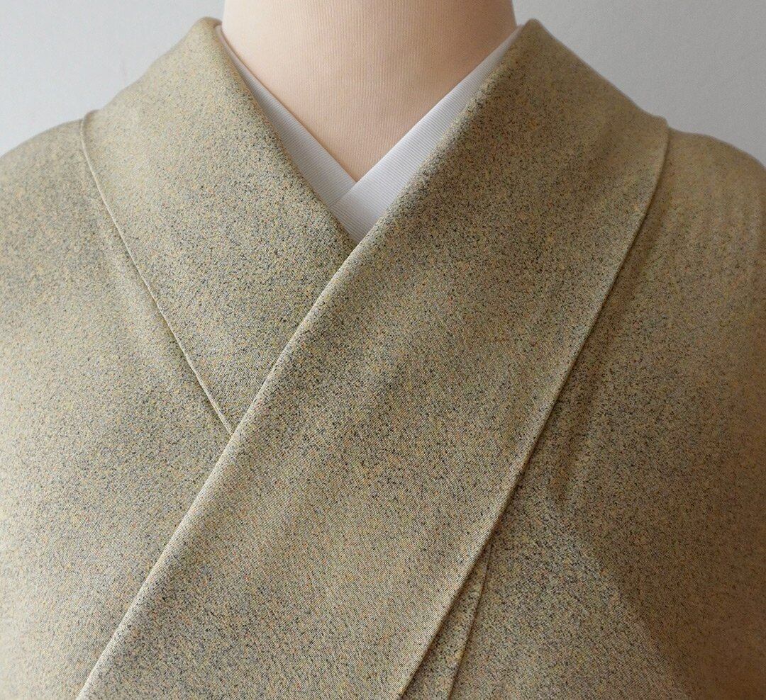 【単衣】柳茶地 糊流し染め 小紋
